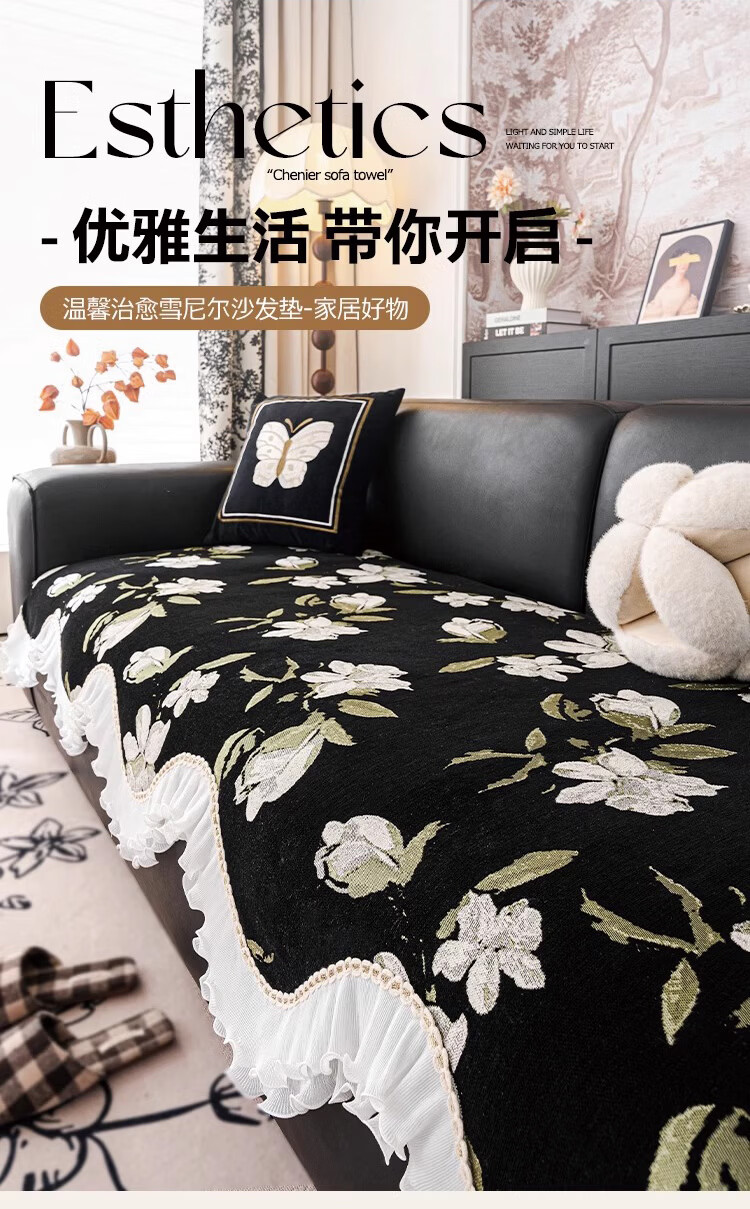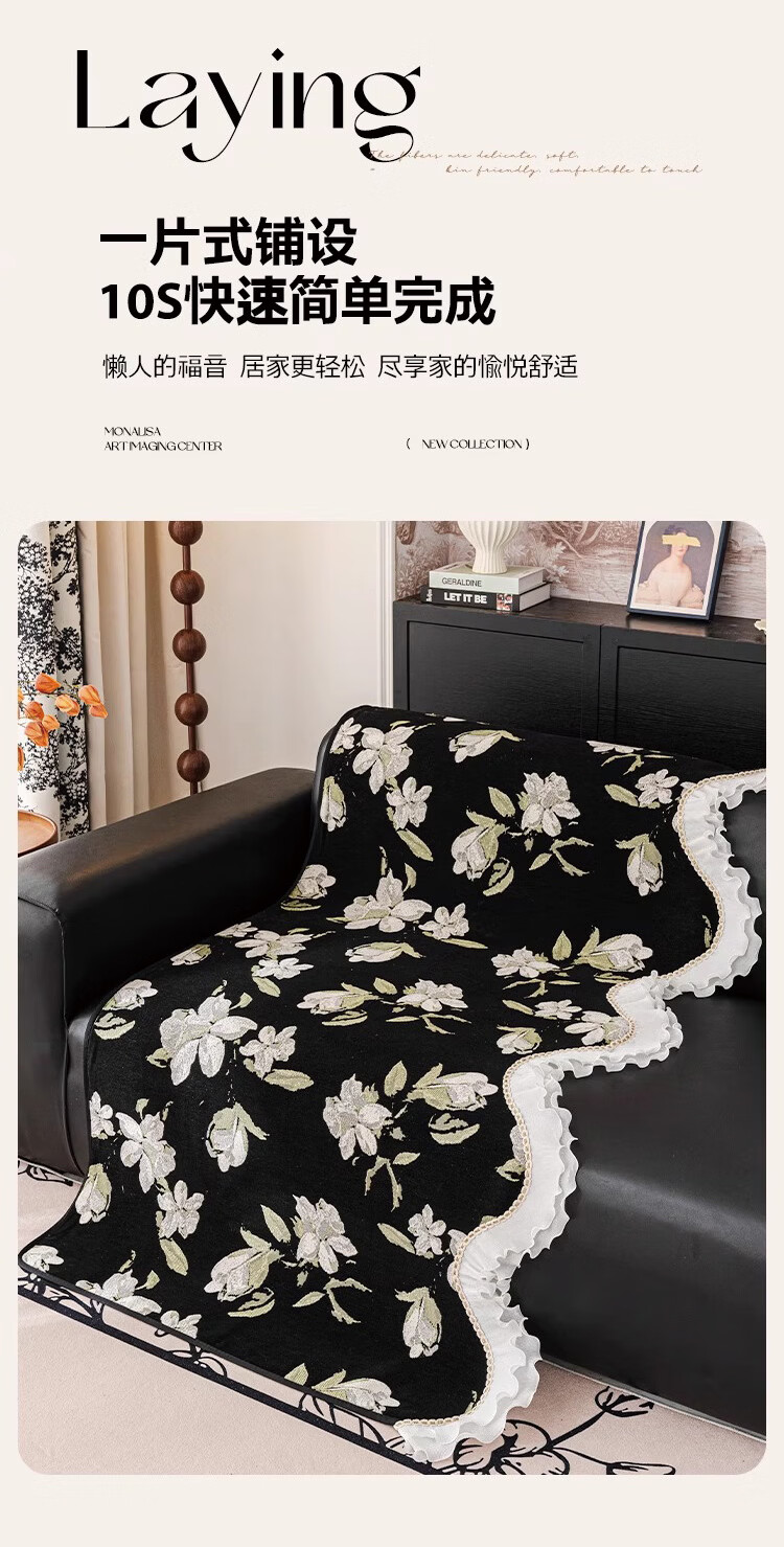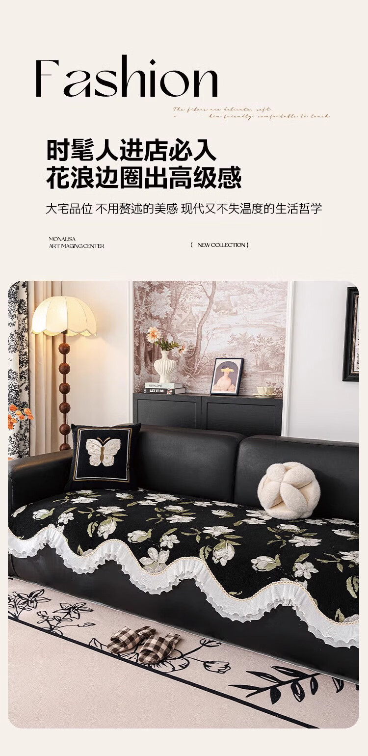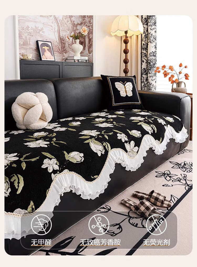 金拾美月复古花卉高级感异形沙发垫四季通用2026新款防滑沙发套罩盖布巾 异形恋桠-经典黑 70cm*70cm