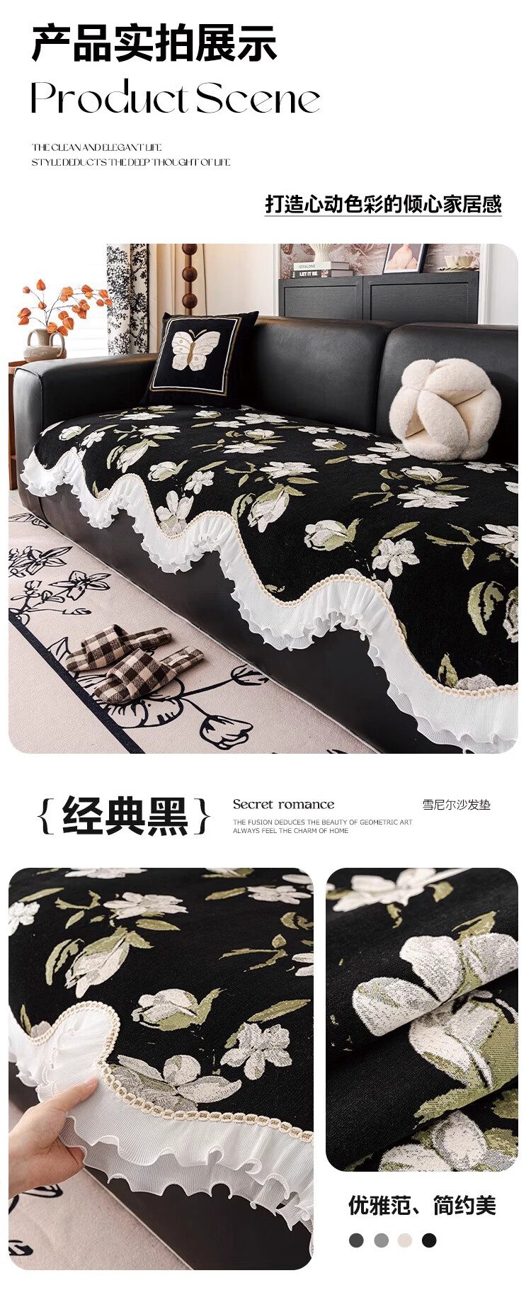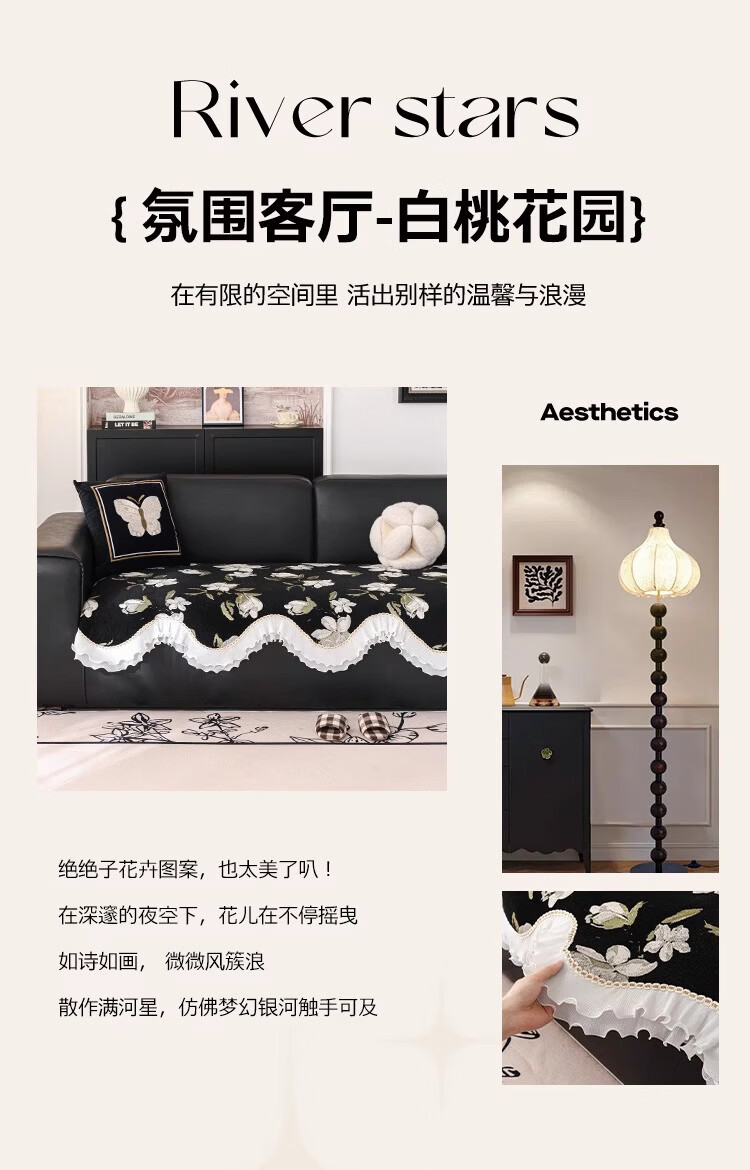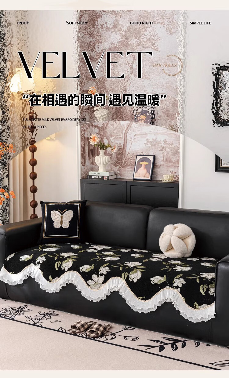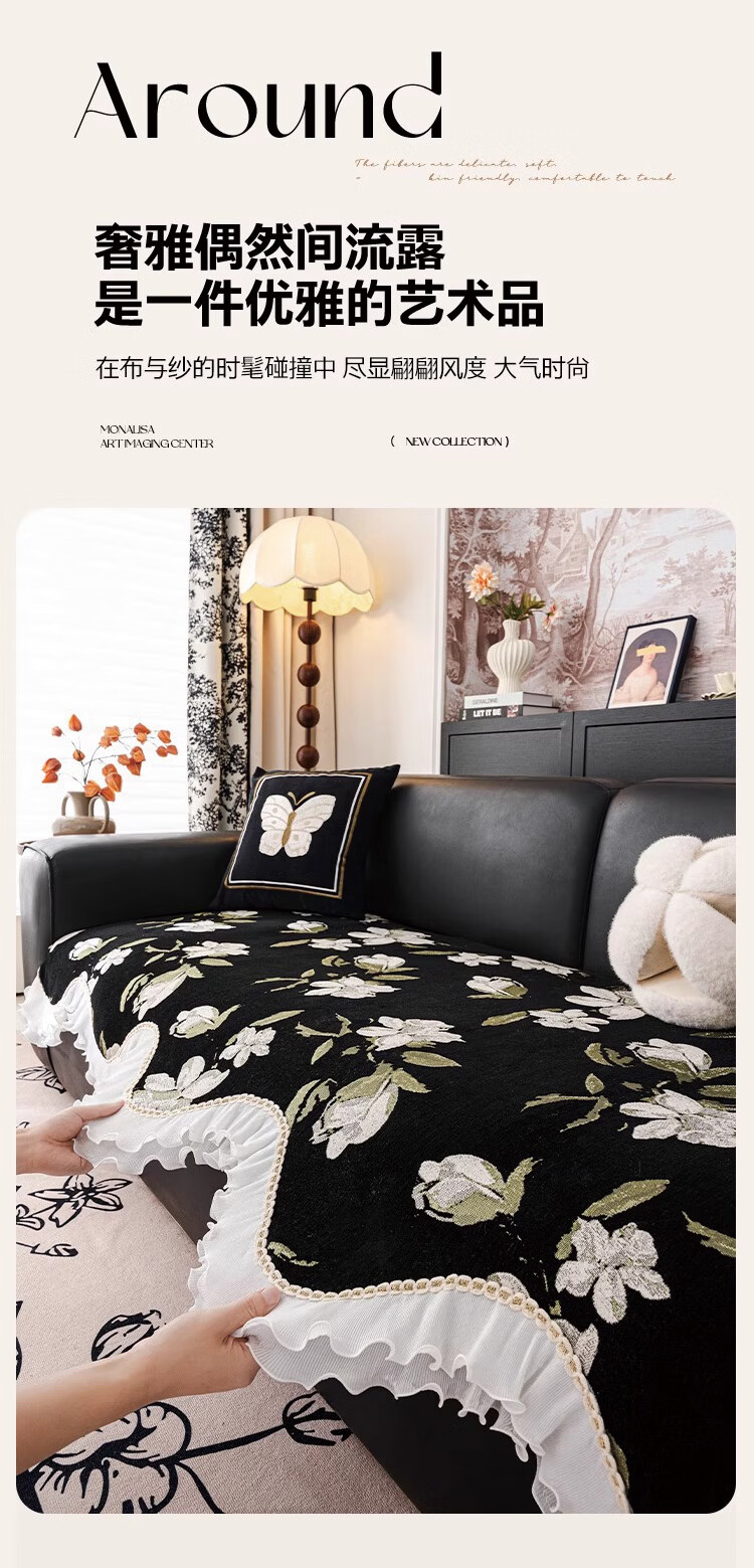 金拾美月复古花卉高级感异形沙发垫四季通用2026新款防滑沙发套罩盖布巾 异形恋桠-经典黑 70cm*70cm