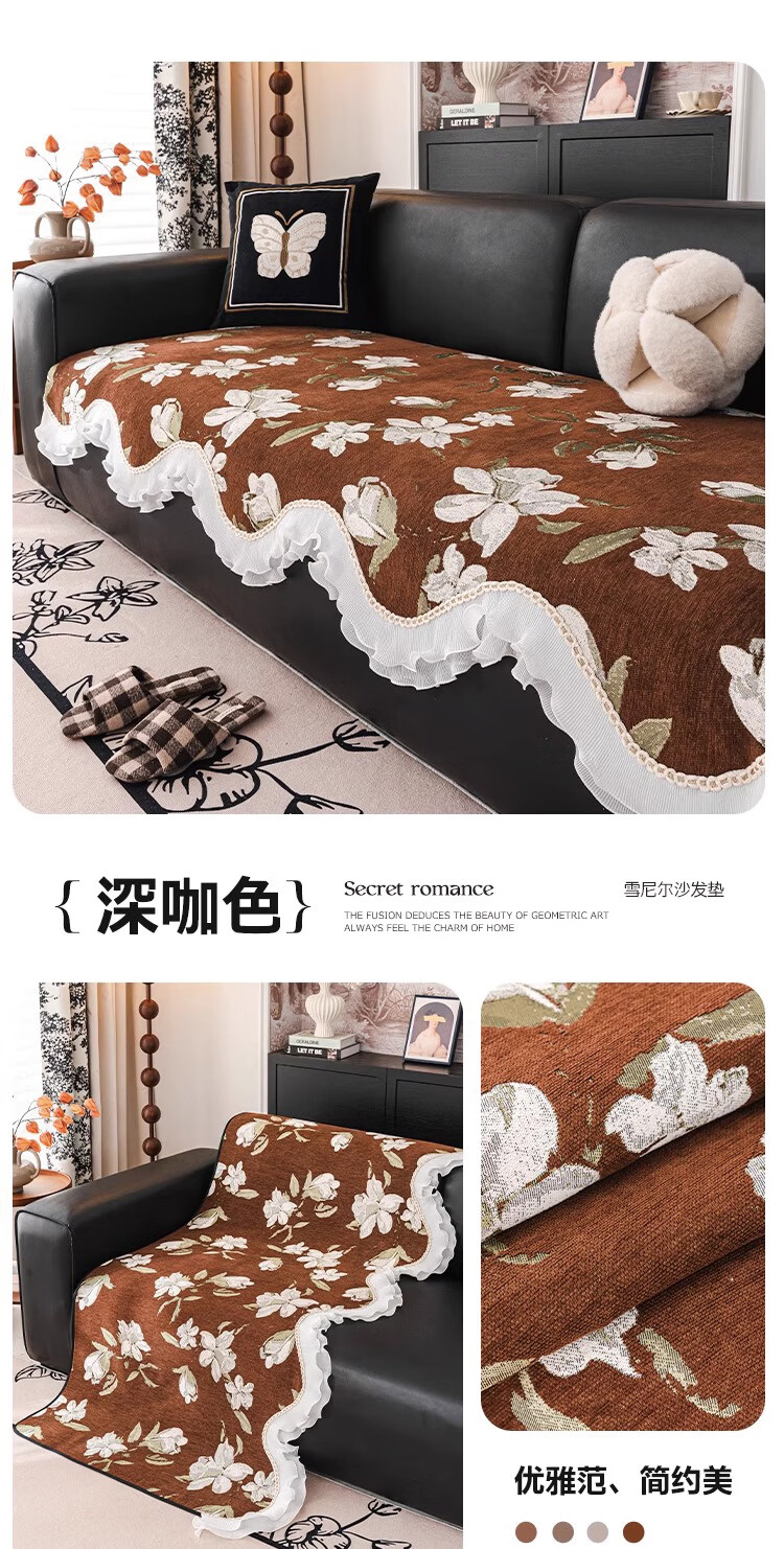 无印良品真皮沙发专用垫雪尼尔四季通用沙发垫2026新款耐磨高级感防滑坐垫 晚颜-咖色 【不伤皮面不磨损皮沙发】 90*90cm (加大加宽扶手靠背)