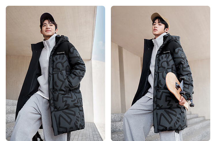 波司登冬季羽绒服男女同款情侣装中长款连帽90绒商场同款外套