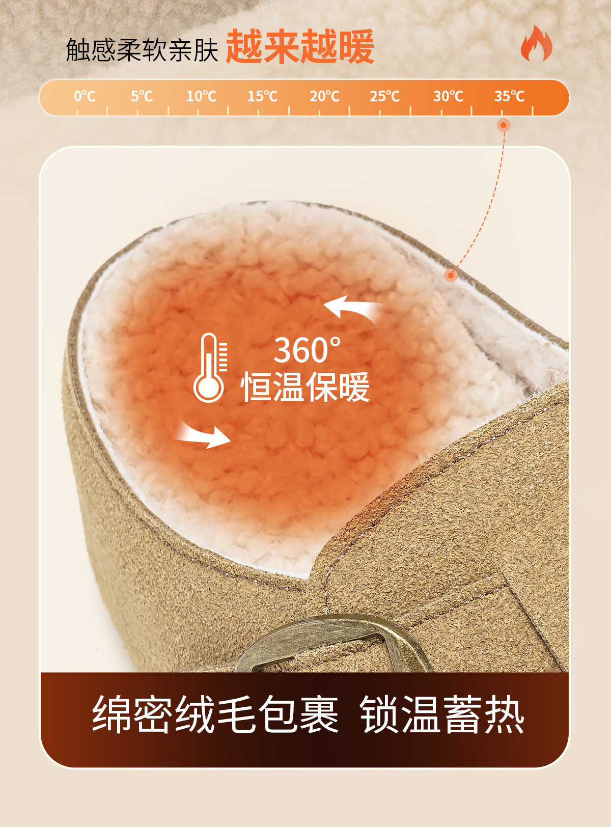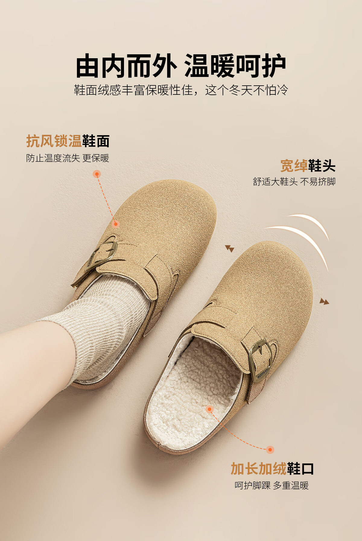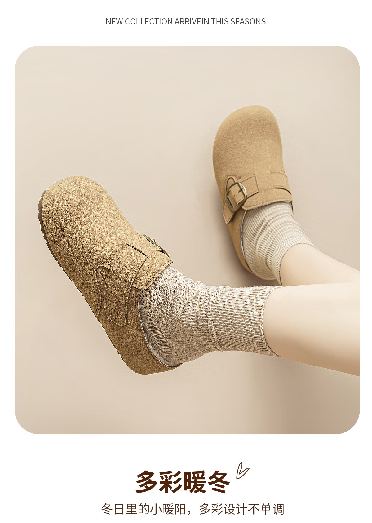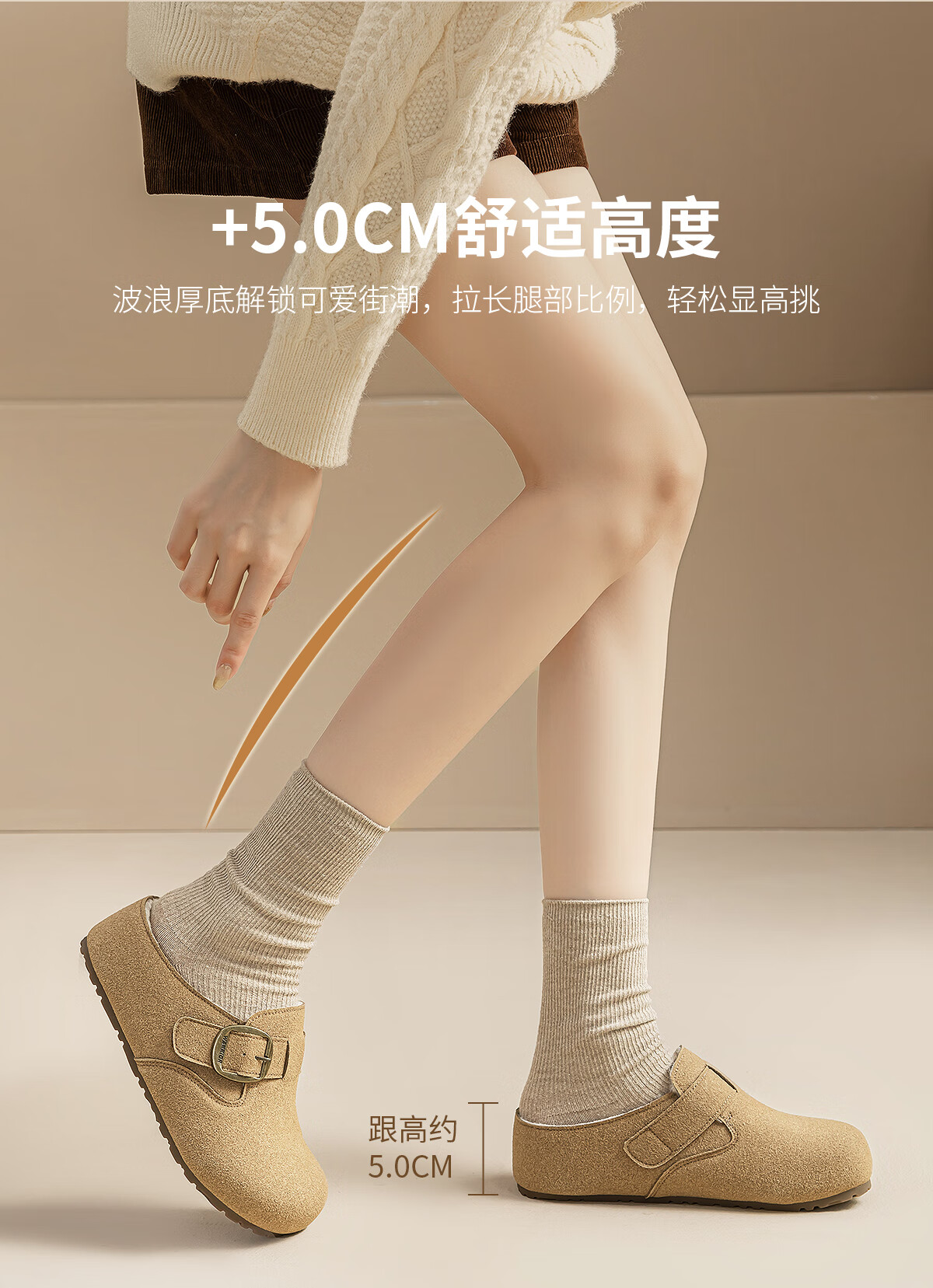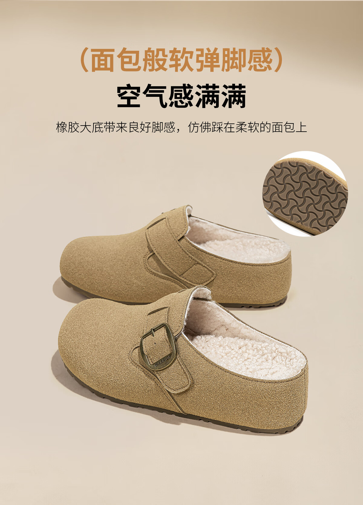 回力厚底勃肯鞋女鞋2025冬季新款加绒保暖舒适增高百搭通勤休闲单鞋女 卡其色 35