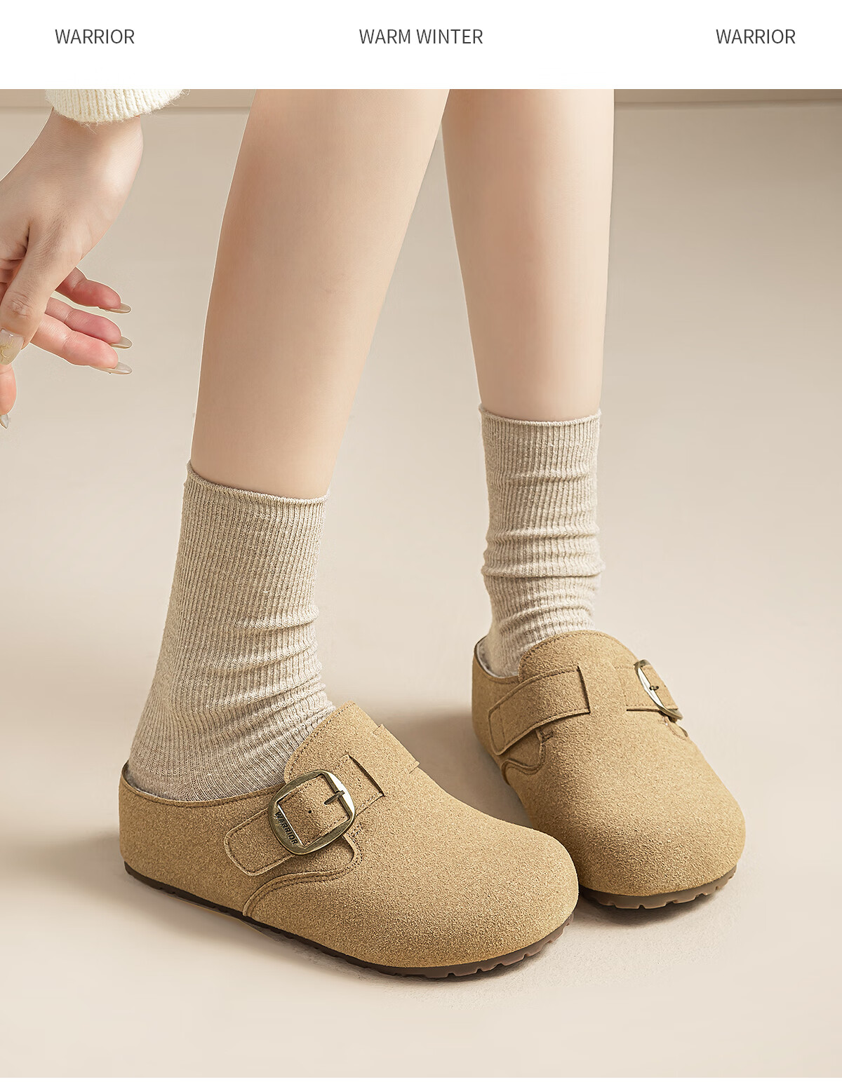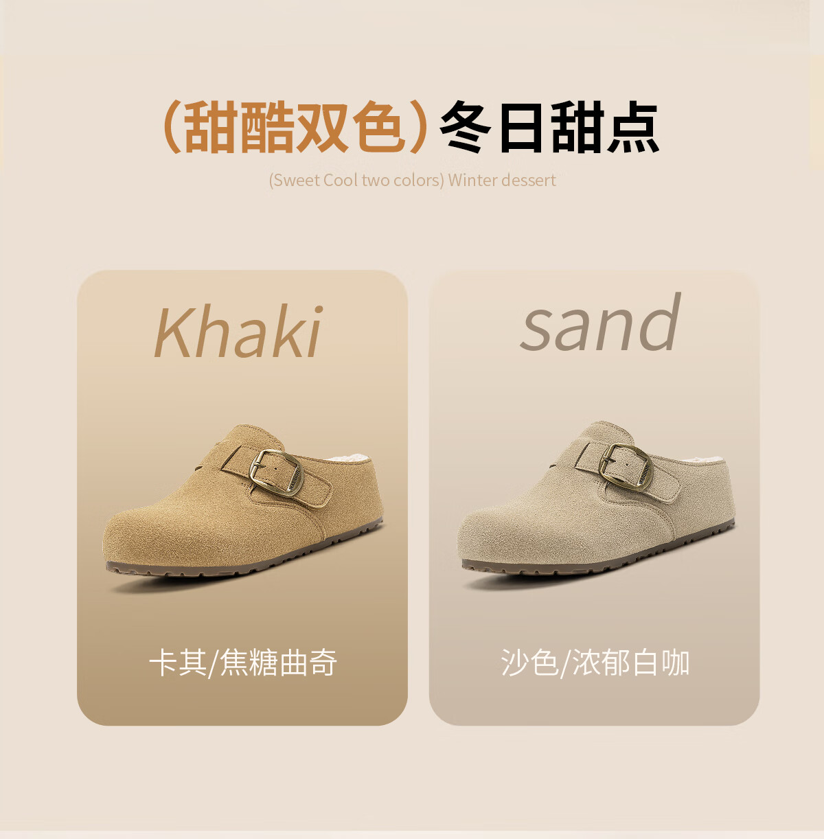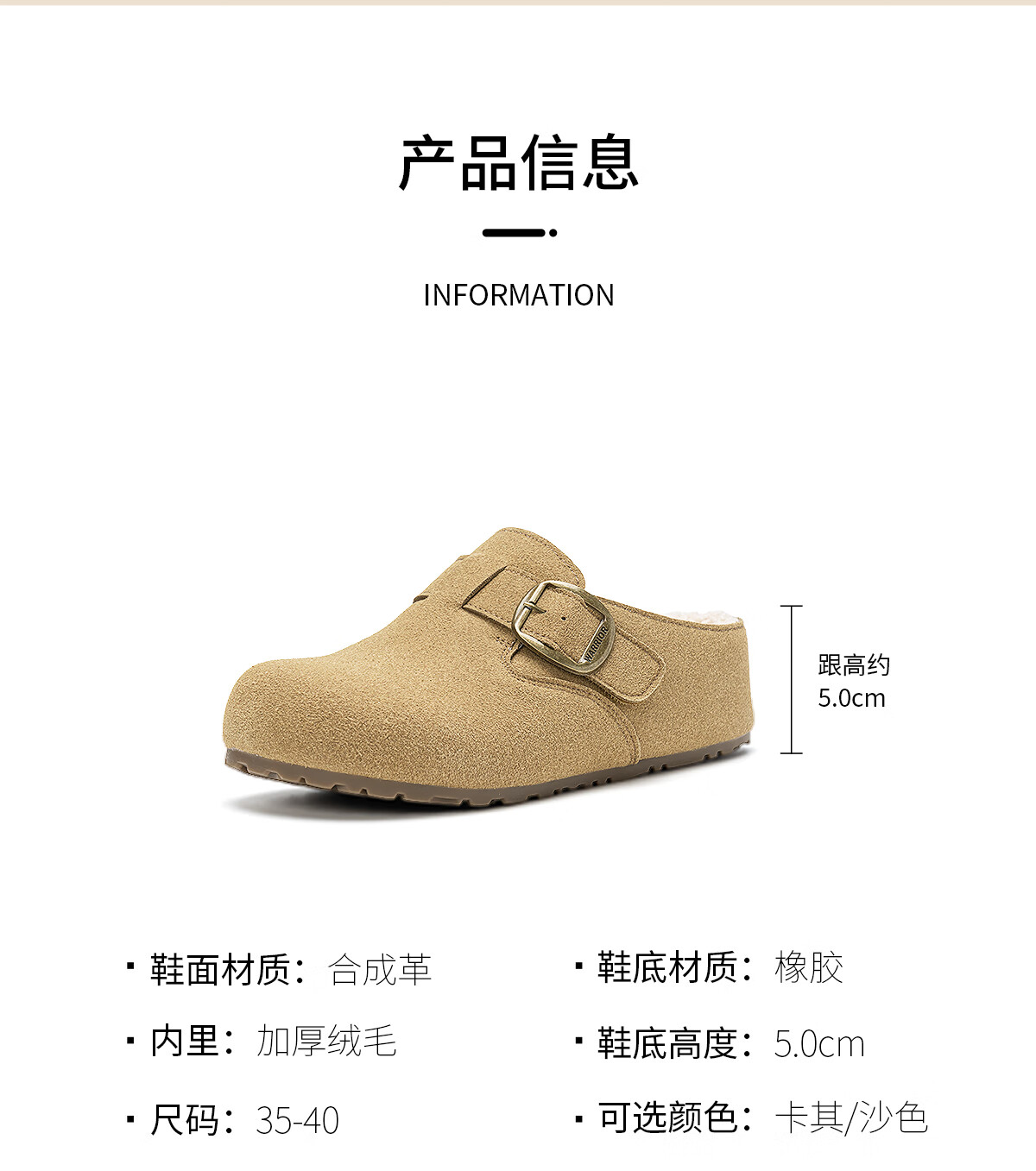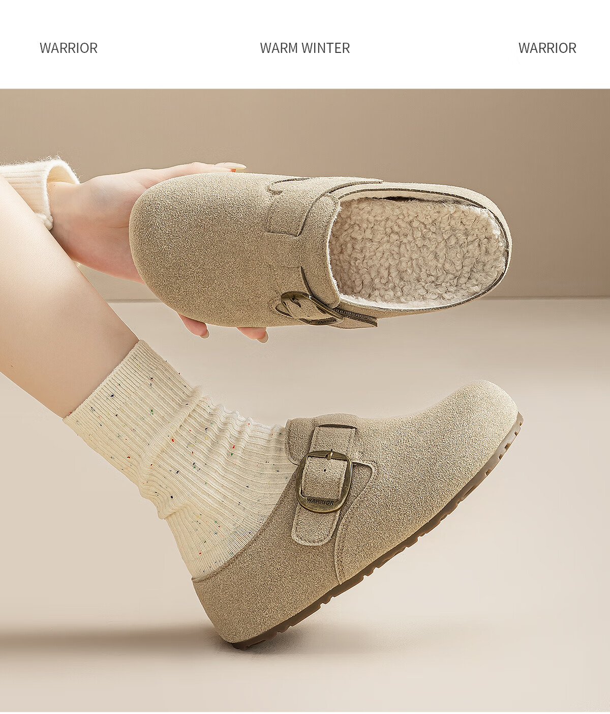 回力厚底勃肯鞋女鞋2025冬季新款加绒保暖舒适增高百搭通勤休闲单鞋女 卡其色 35