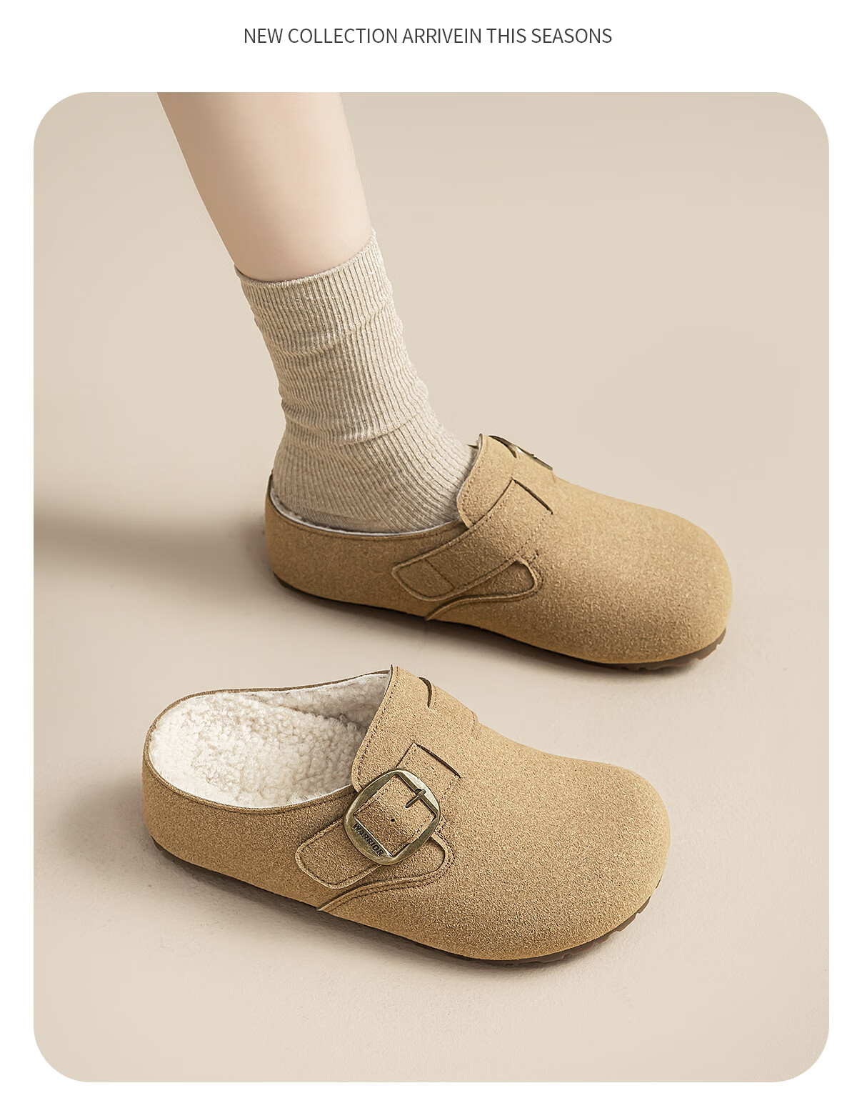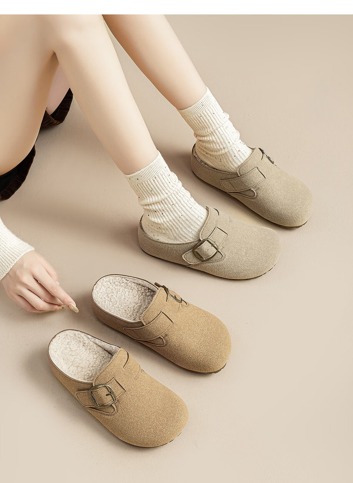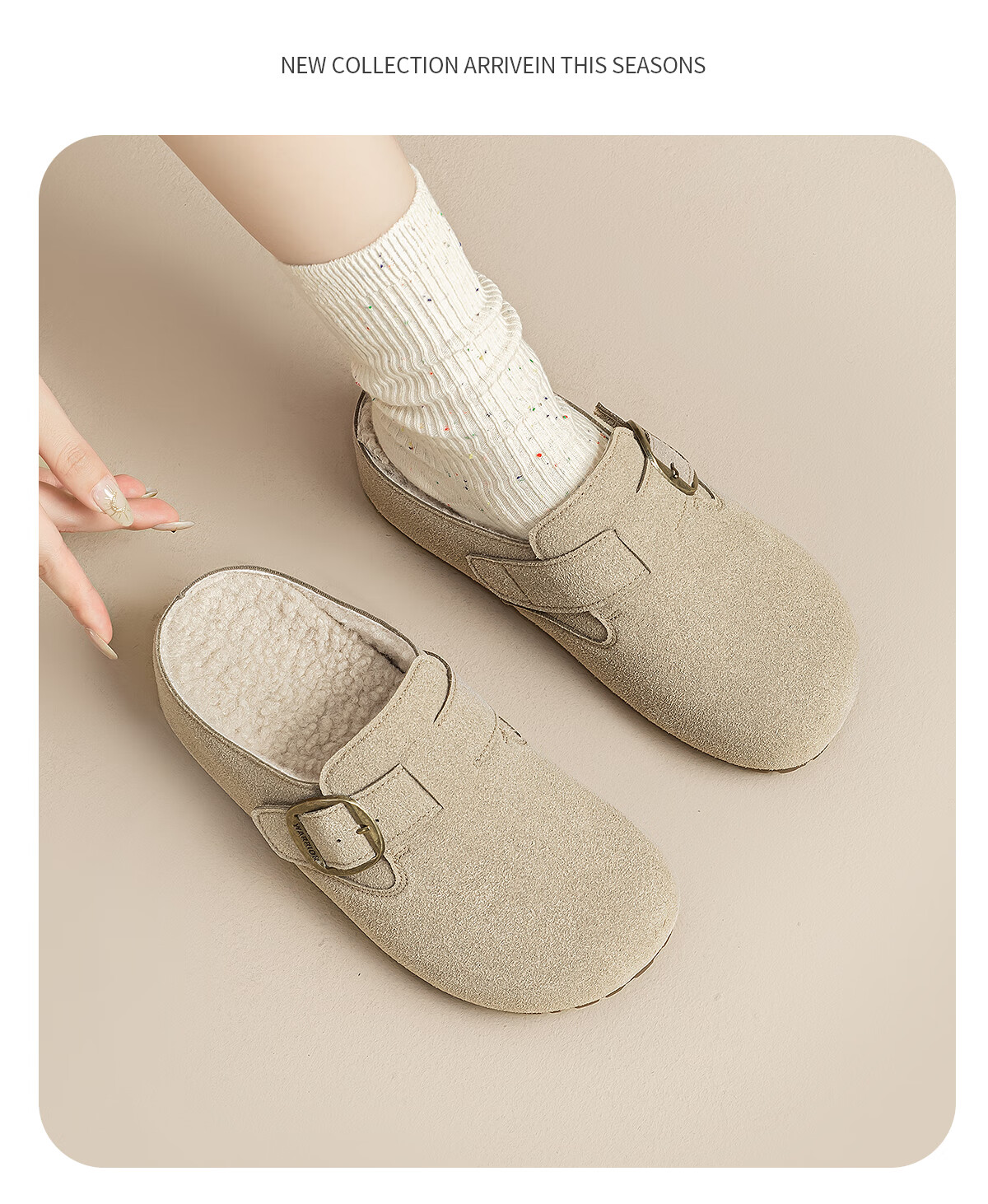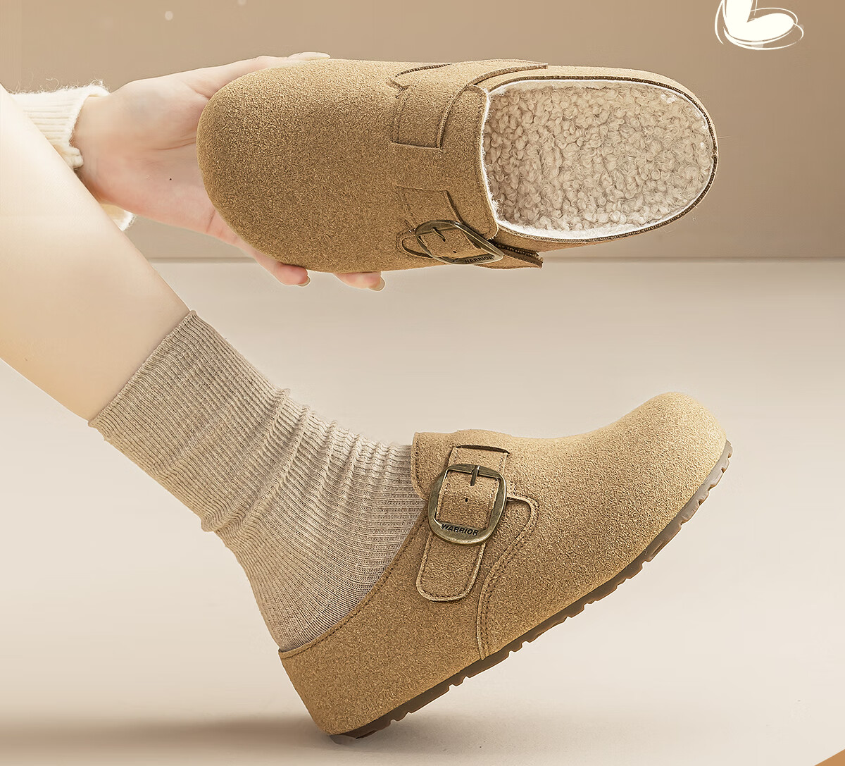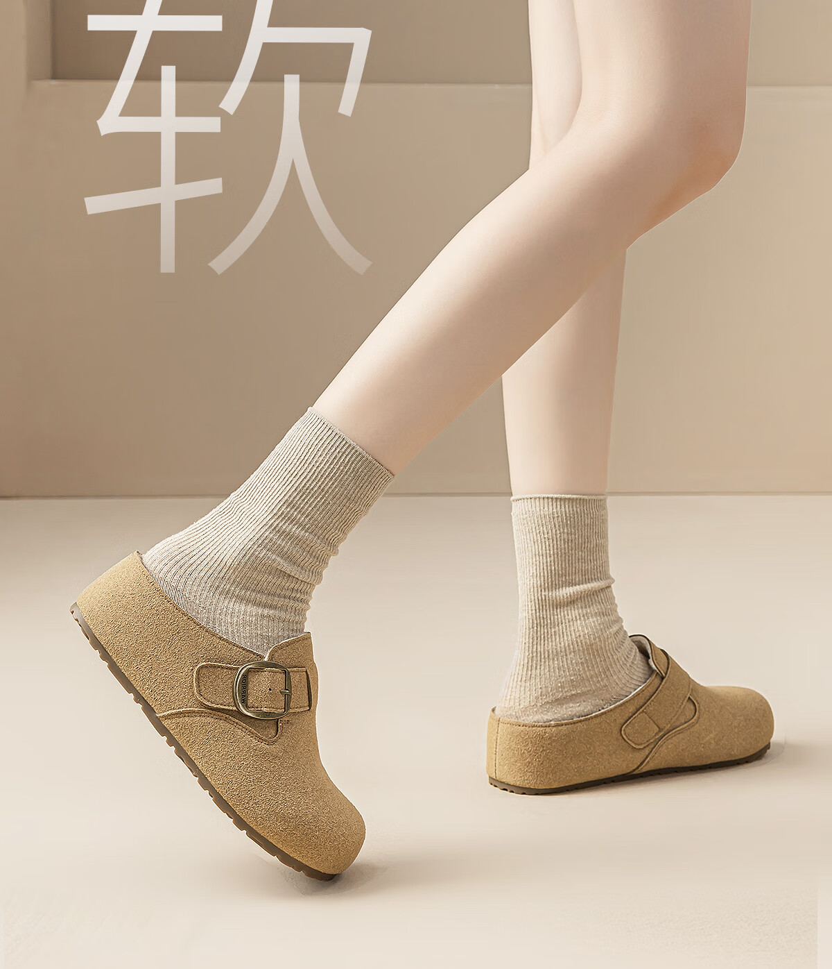 回力厚底勃肯鞋女鞋2025冬季新款加绒保暖舒适增高百搭通勤休闲单鞋女 卡其色 35
