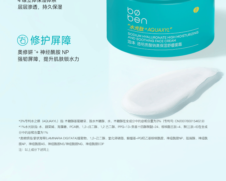 泊本高保湿面霜滋润舒缓敏感肌修护屏障长效保湿补水日晚霜 50g【送15g,试用不喜可退】