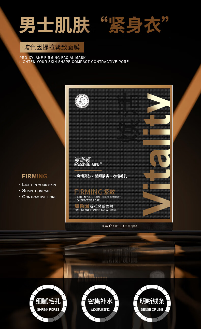 波斯顿男士面膜玻色因补水保湿紧致提拉淡纹熬夜护肤面膜 5盒(共30片)