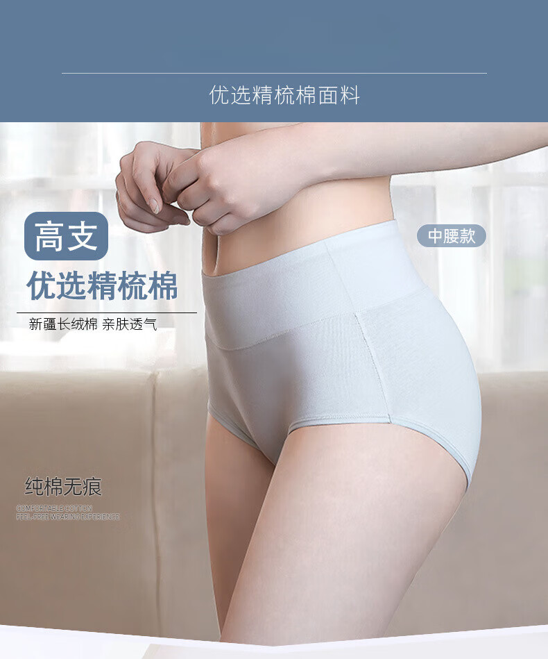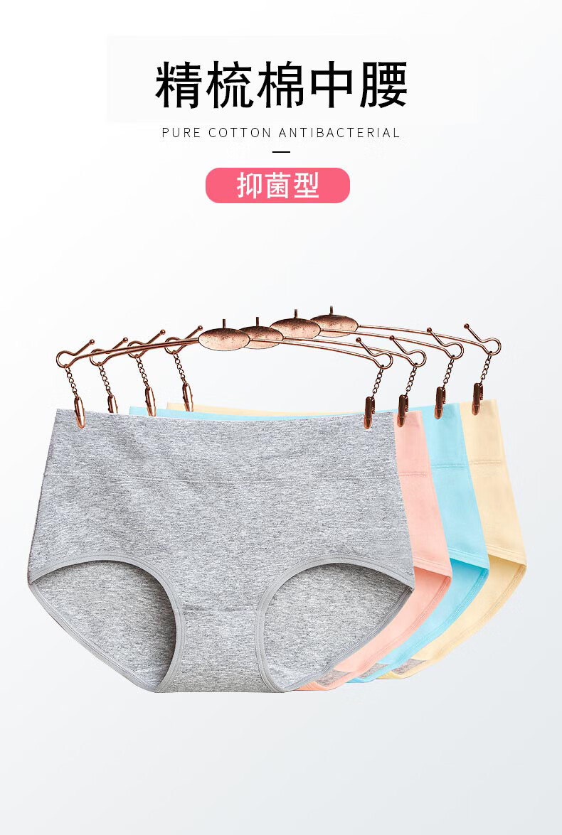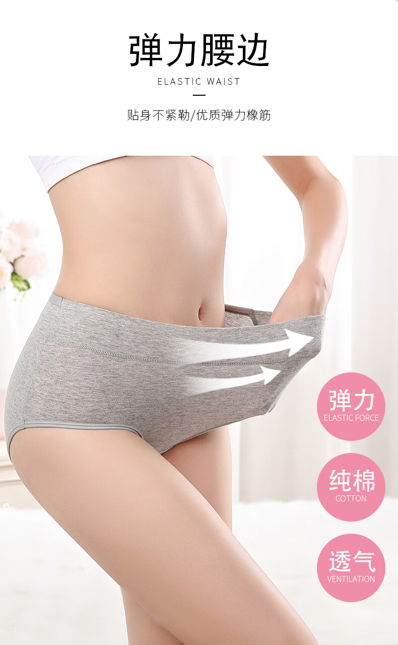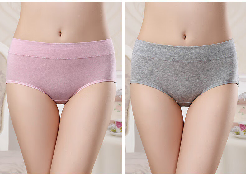 【优选好物】大码女士内裤女裆纯色中腰收腹提臀透气妈妈三角短裤 灰色 1条 M