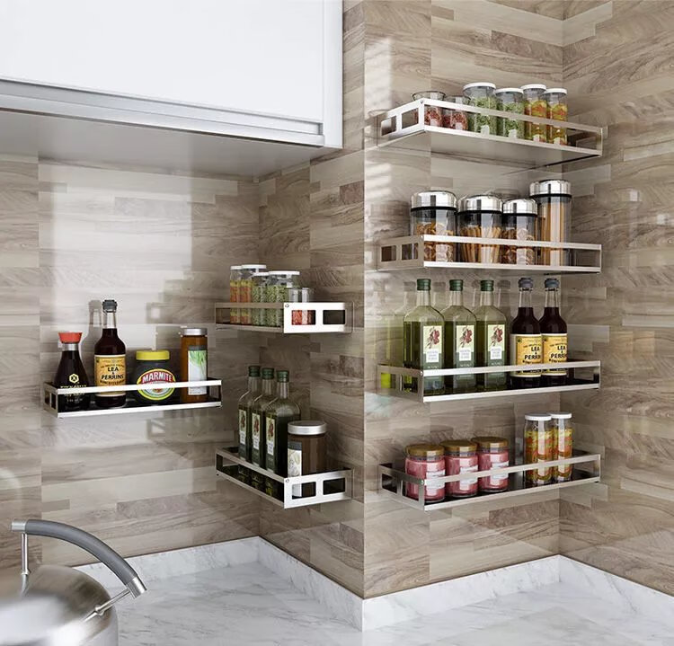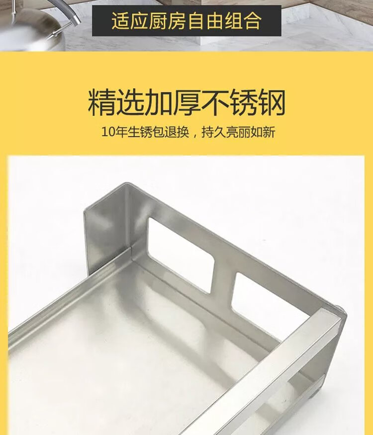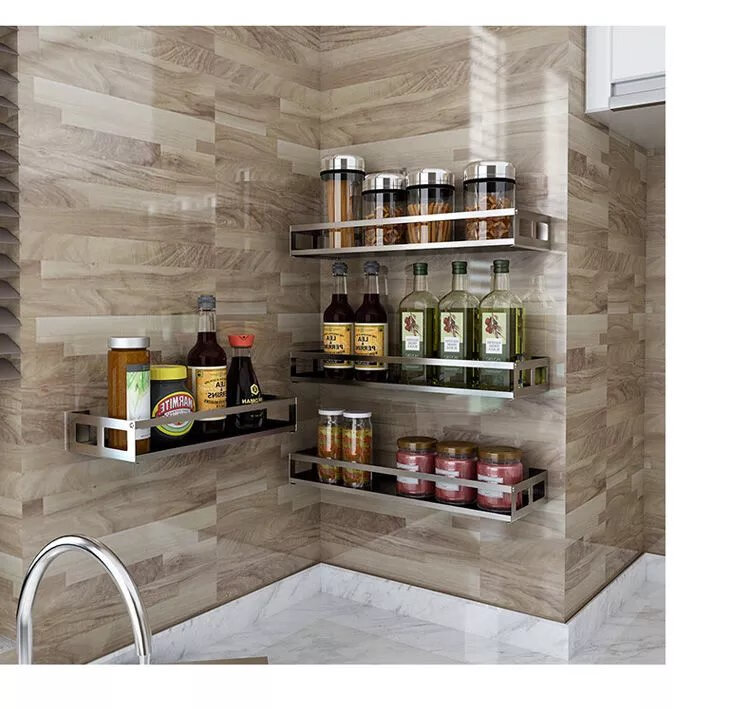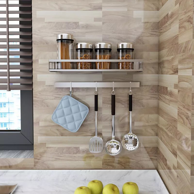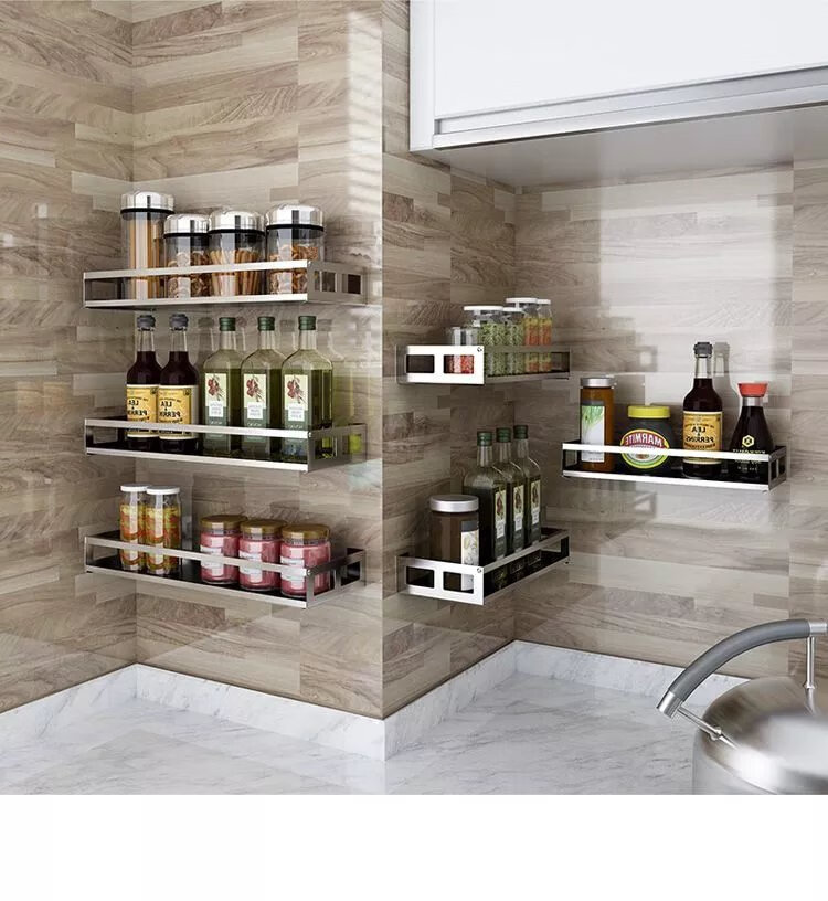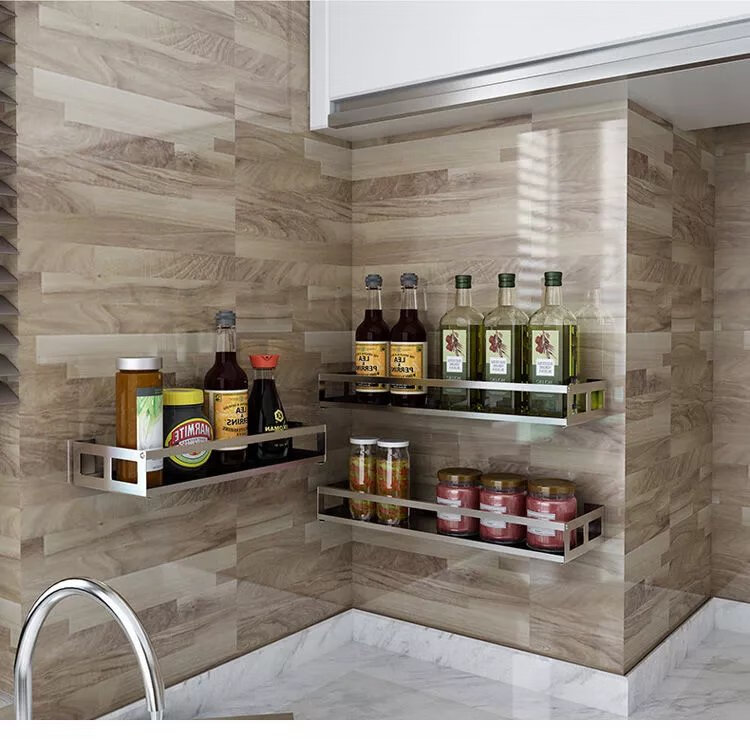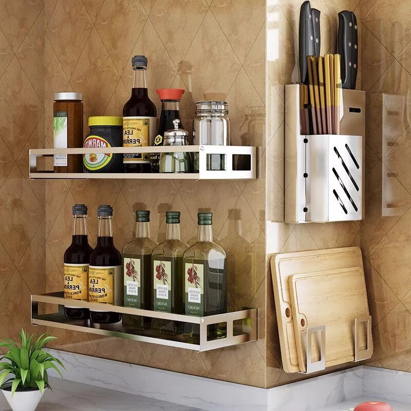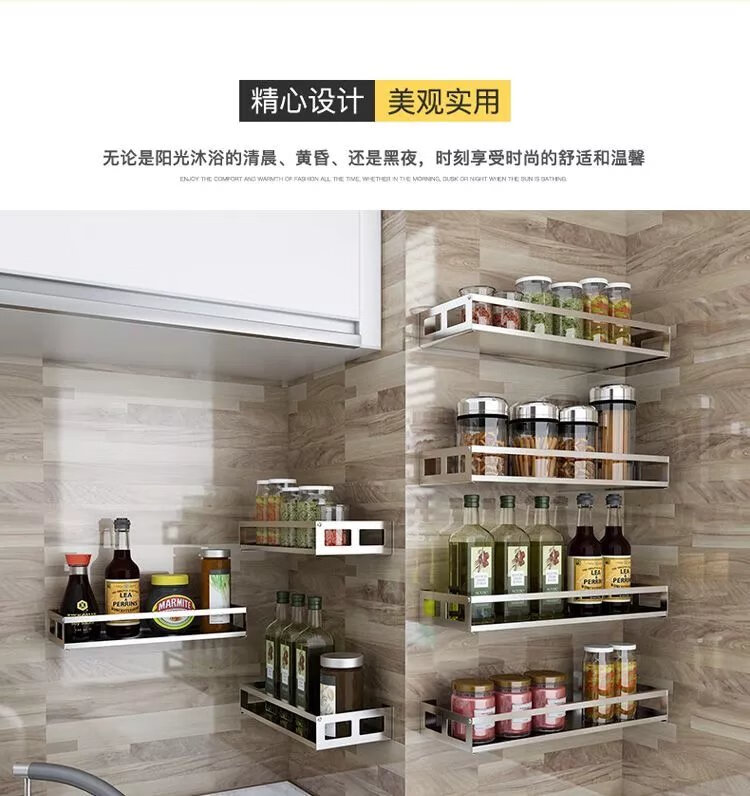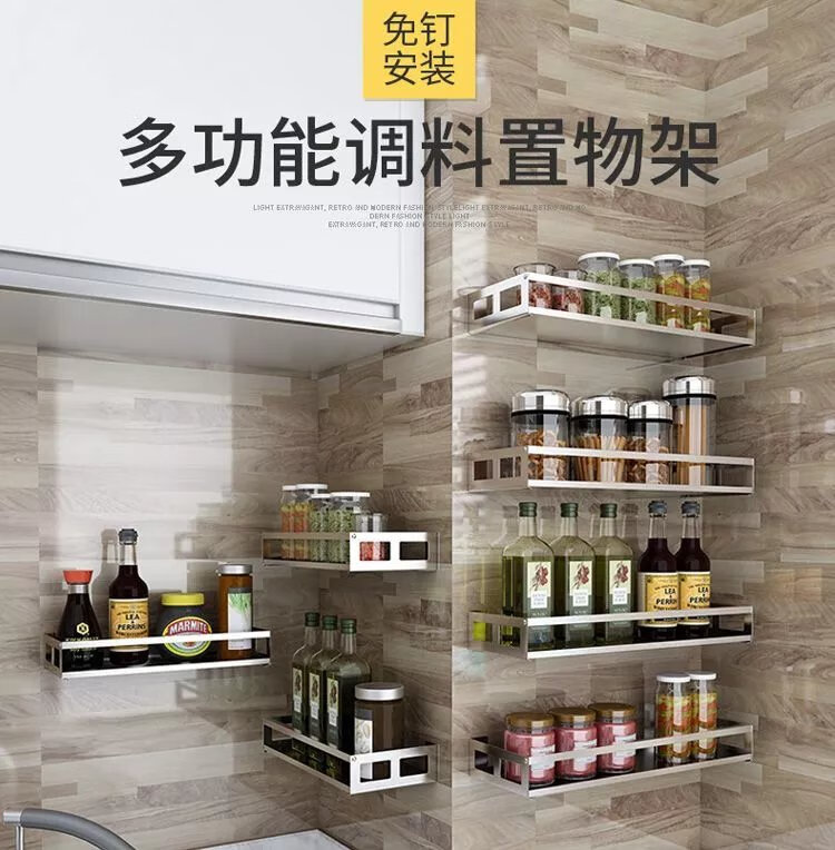 【精选】厨房调料置物架不锈钢调料架壁挂式免打孔调味品油盐酱醋 刀架 【免打孔】+免钉胶