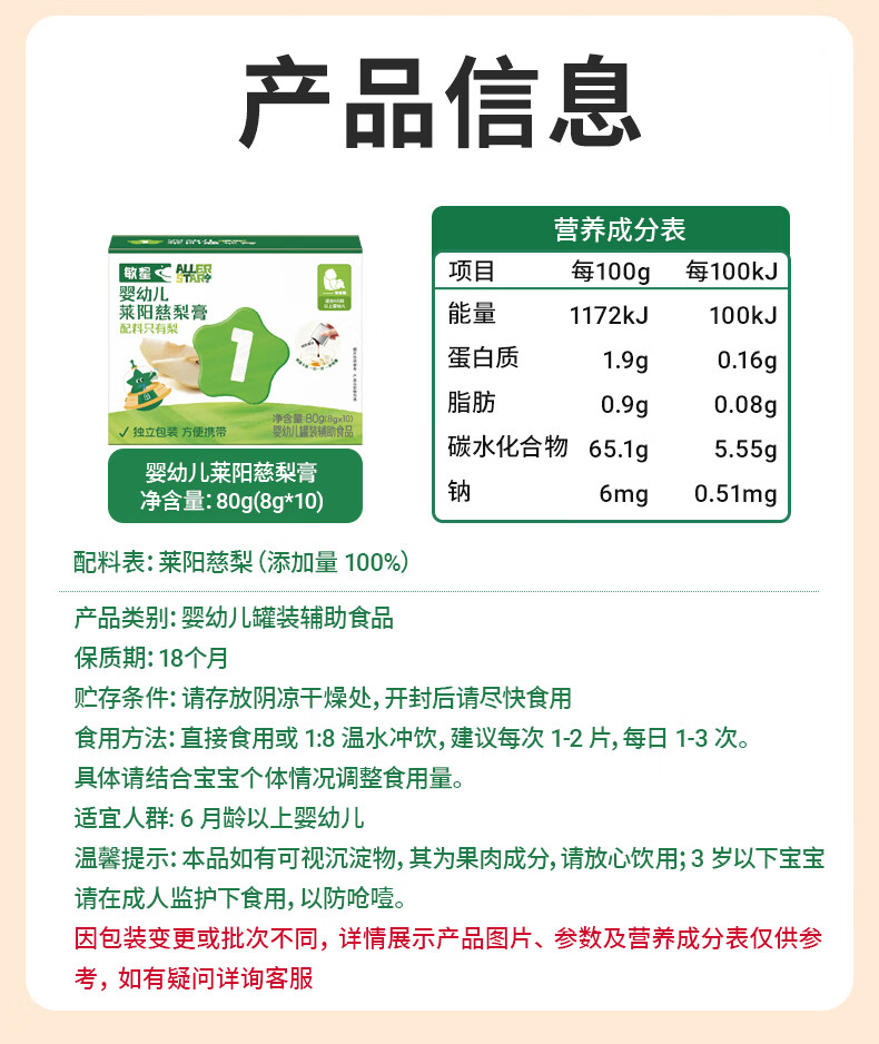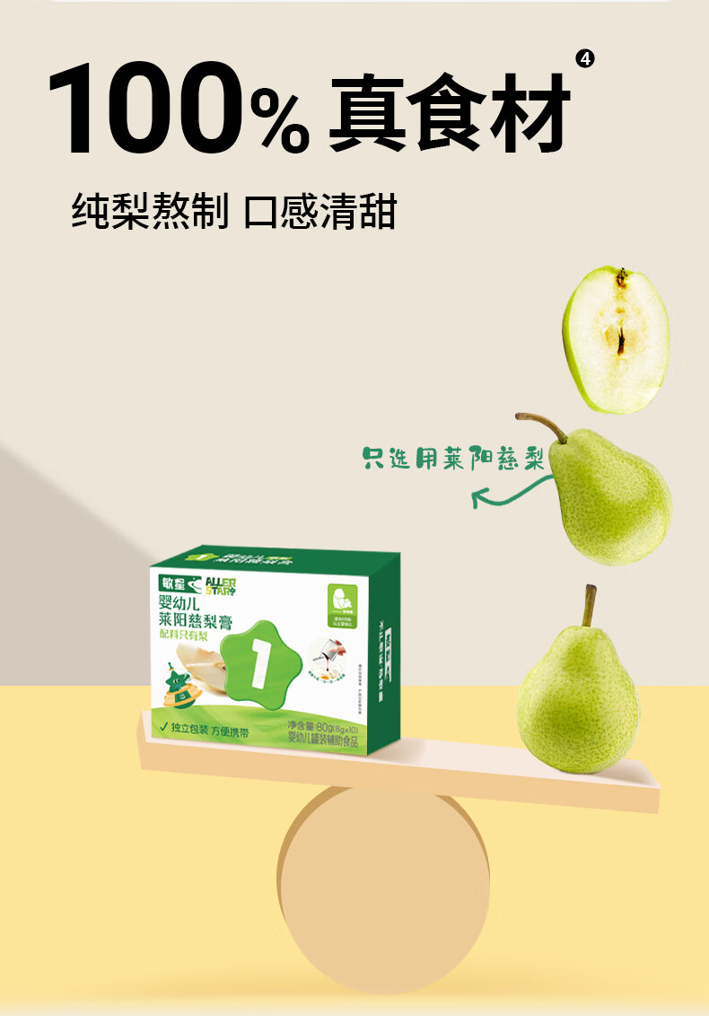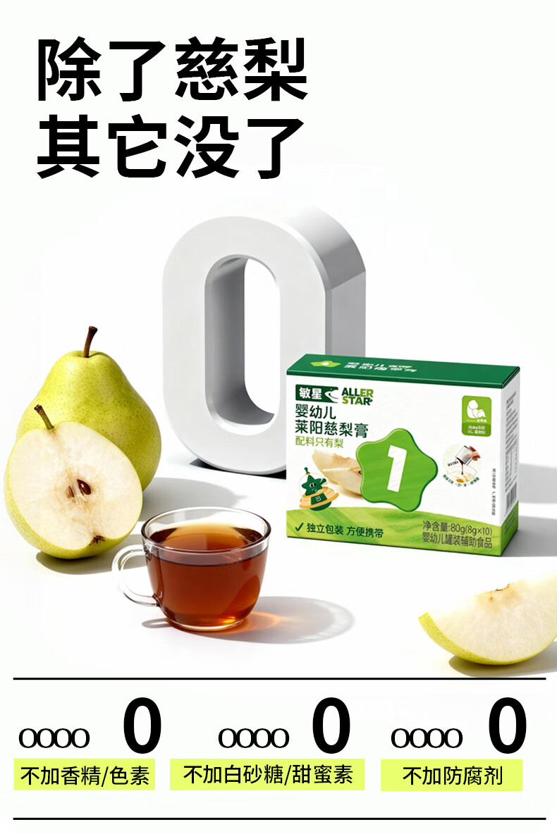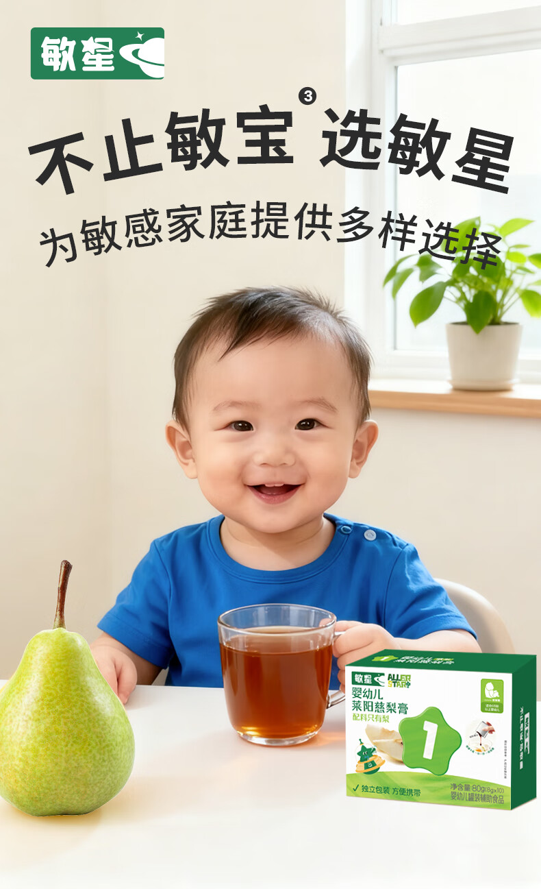 敏星婴幼儿莱阳慈梨纯梨膏6月+敏宝饮品不添加蜂蜜糖儿童泡水独立便携 婴幼儿莱阳慈梨膏1盒 80g*1盒