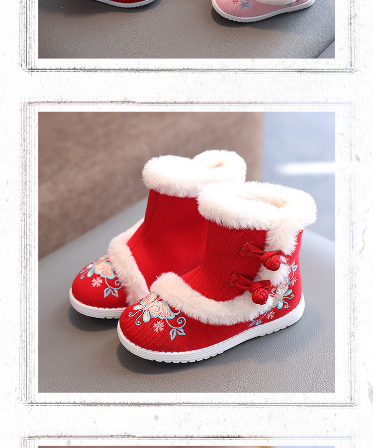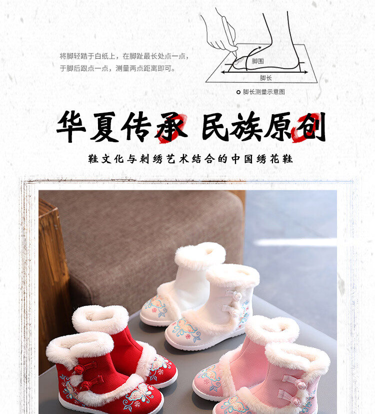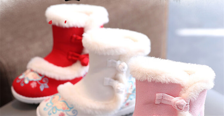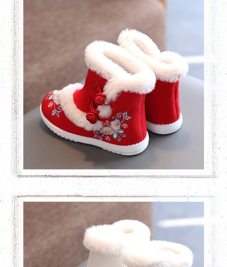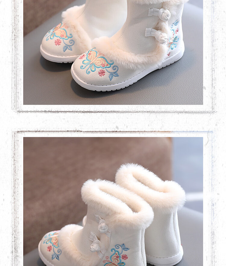 【厂家直供】冬季女童汉服鞋子老北京布鞋古风儿童绣花鞋加绒短靴 白色A5163 36 码/内长22.3cm