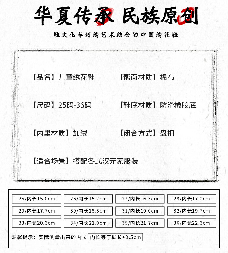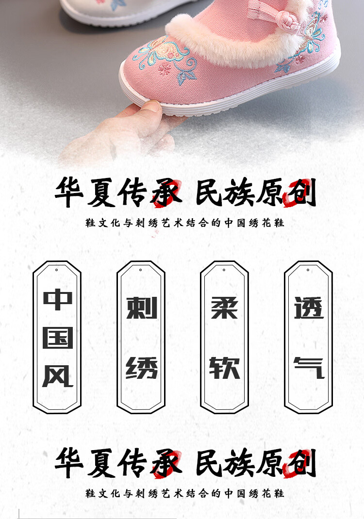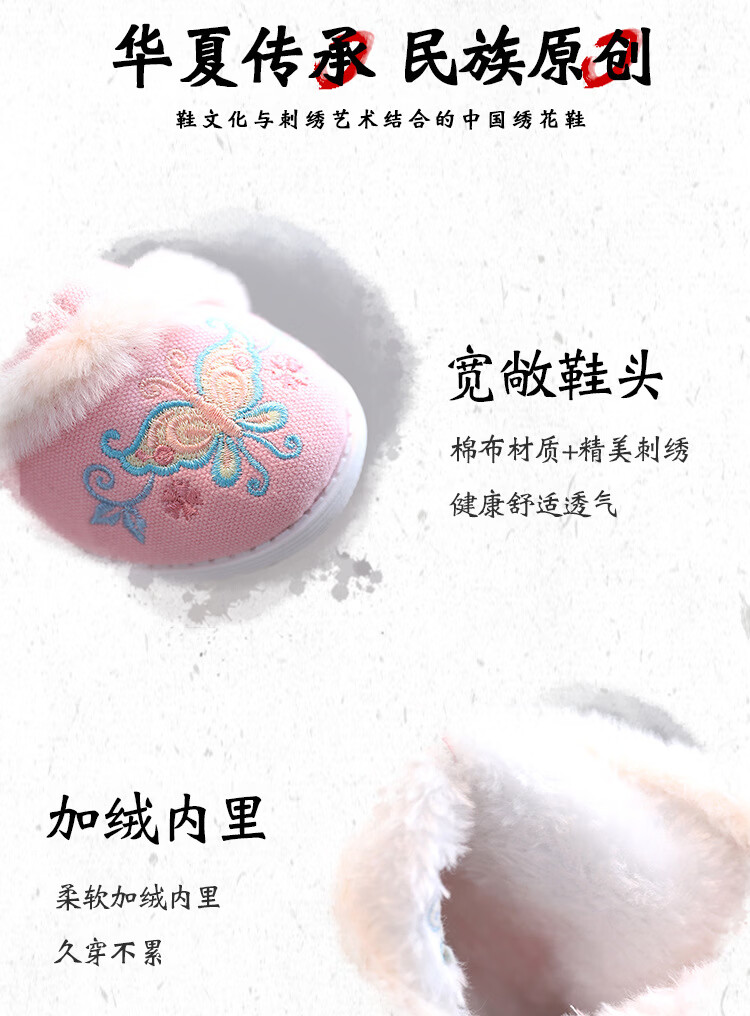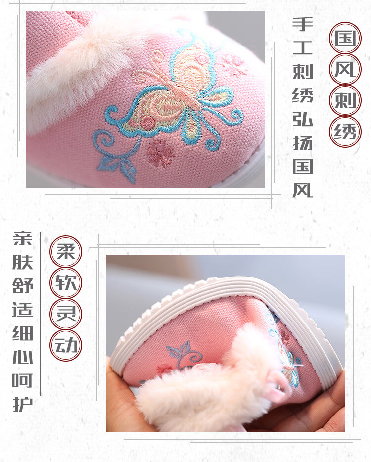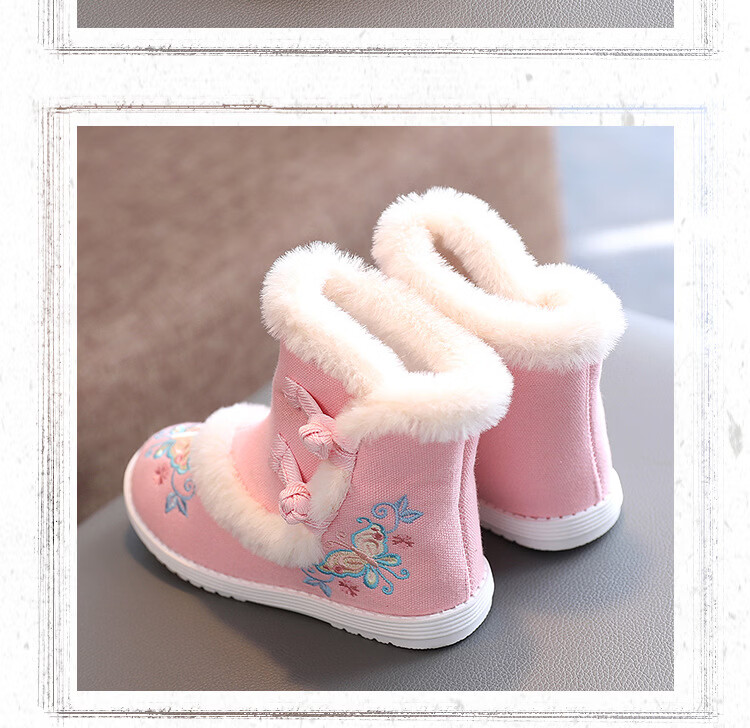 【厂家直供】冬季女童汉服鞋子老北京布鞋古风儿童绣花鞋加绒短靴 白色A5163 36 码/内长22.3cm
