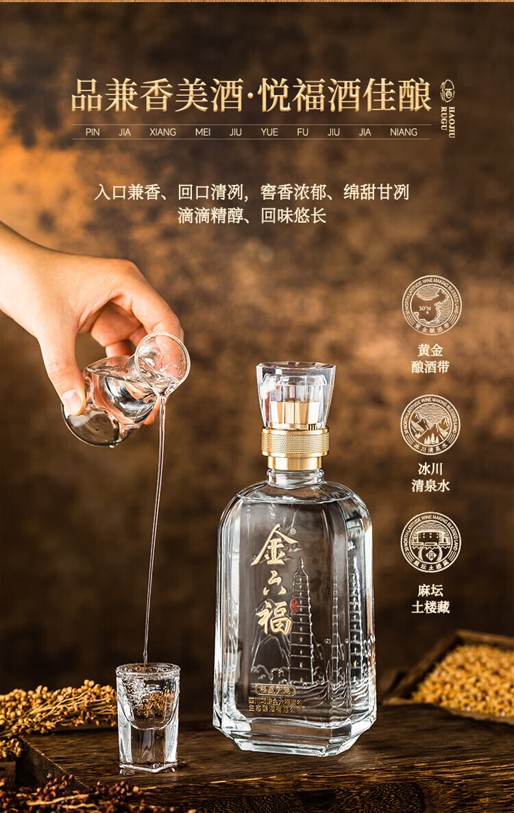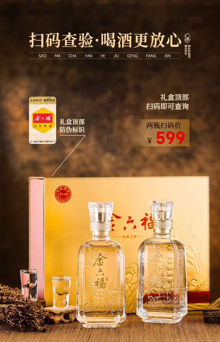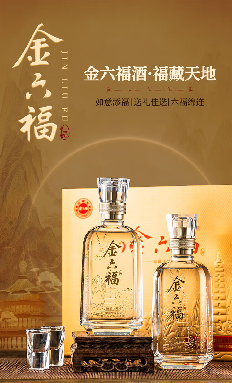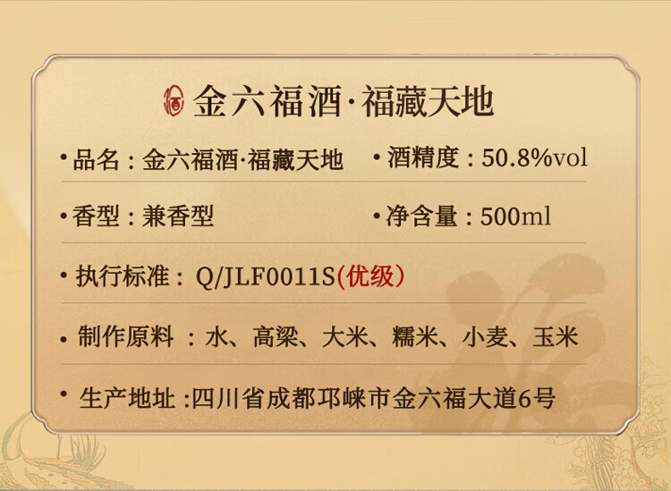 金六福白酒礼盒 50.8度 兼香型白酒 年货礼盒 送礼白酒 50.8度 500mL 2瓶 福藏天地礼盒