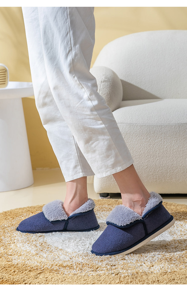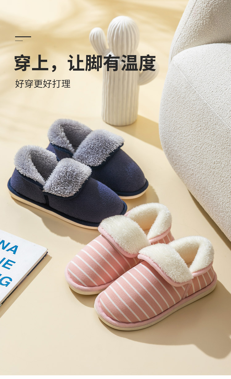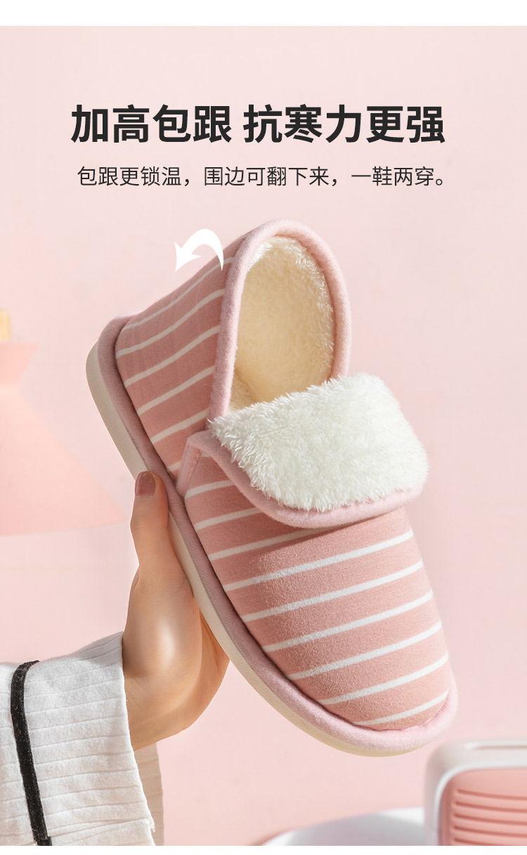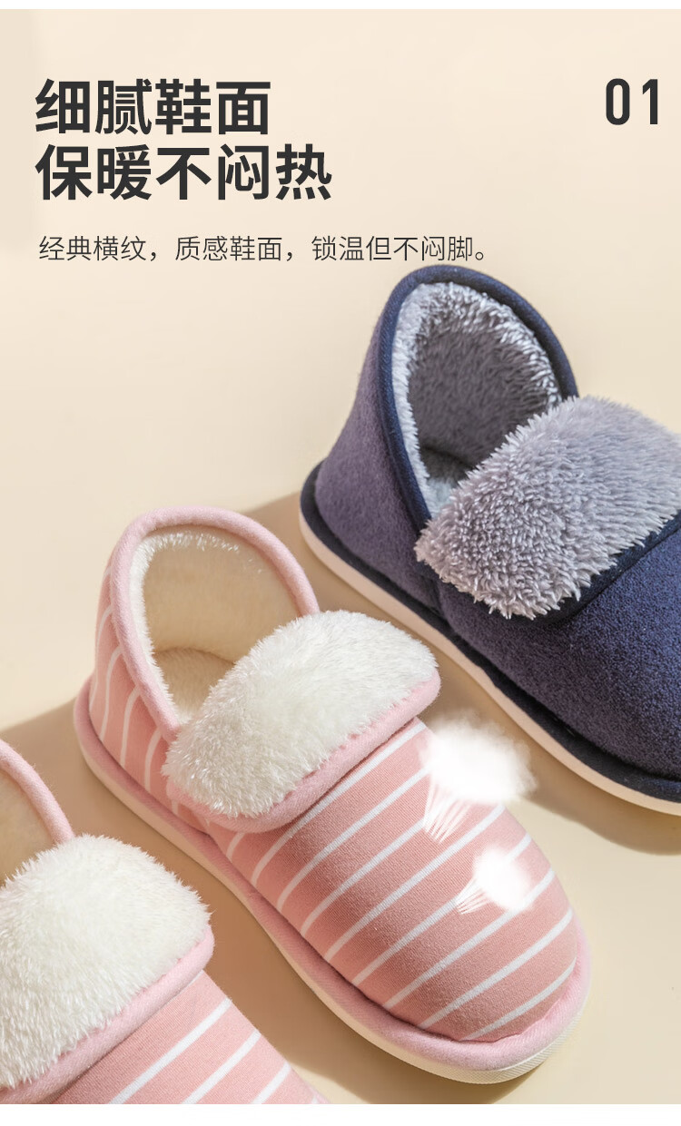 京东京造居家加厚鞋底【可翻盖】毛绒冬季保暖包跟棉拖鞋男士藏青42-43