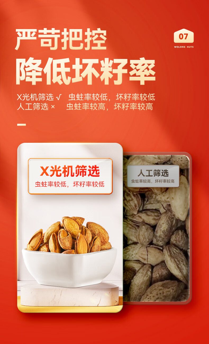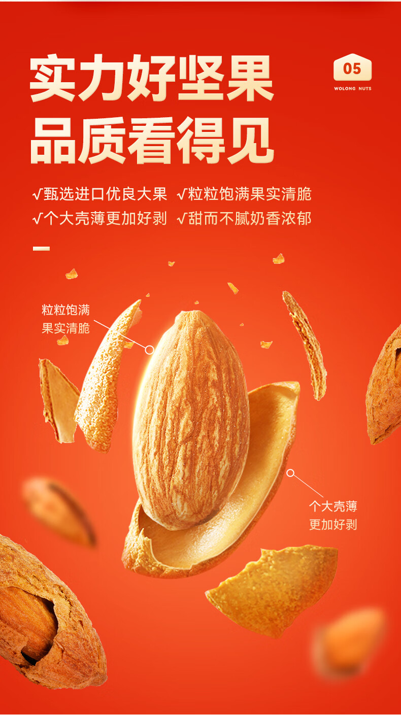 沃隆 每日坚果炒货混合坚果果仁果干核桃扁桃仁腰果零食大礼包 【5种纯坚果仁】500g