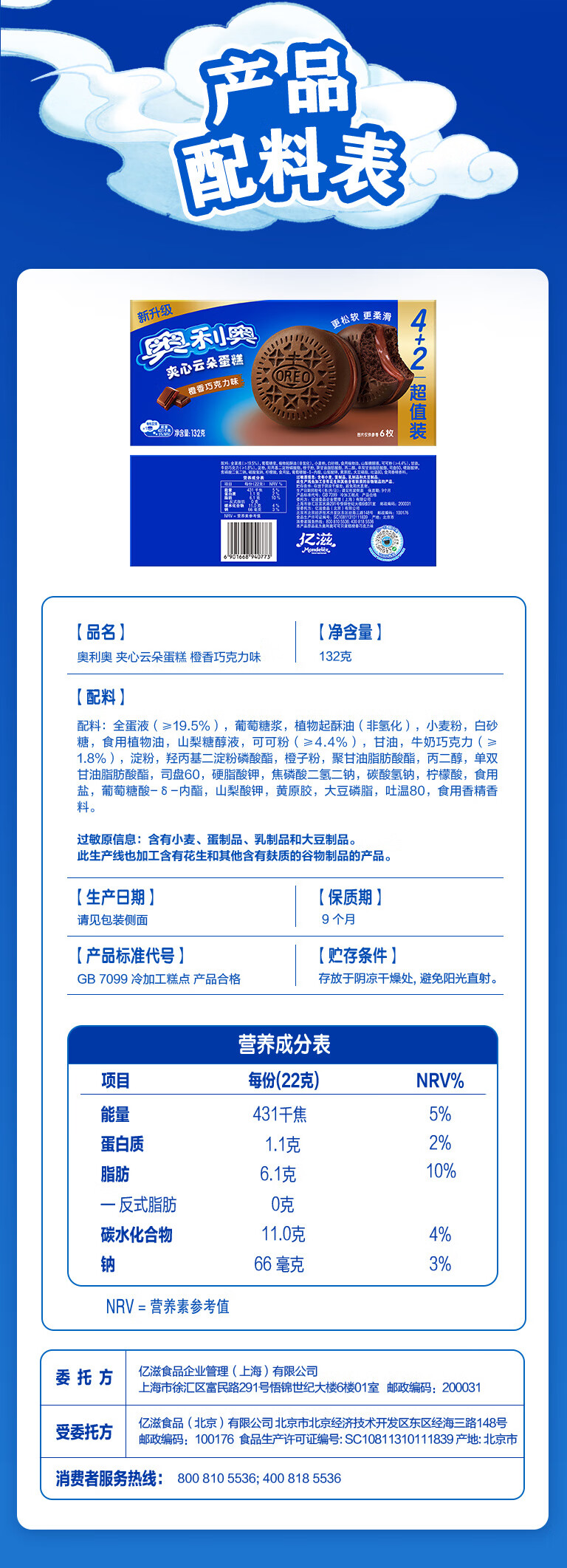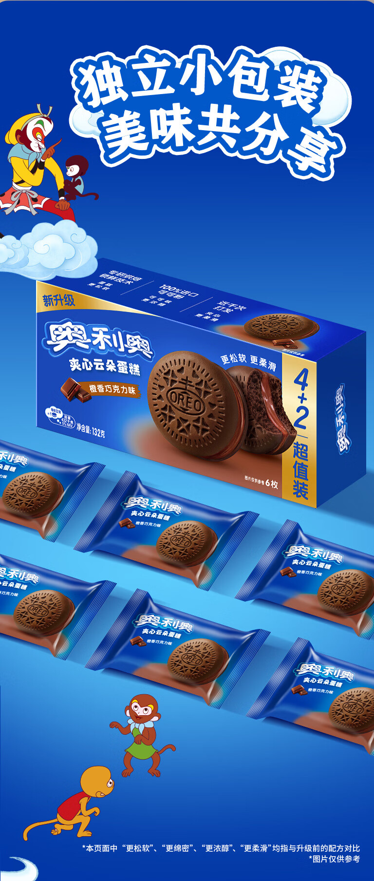 奥利奥(Oreo)夹心云朵蛋糕橙香巧克力味6枚132g 糕点休闲零食 早餐下午茶