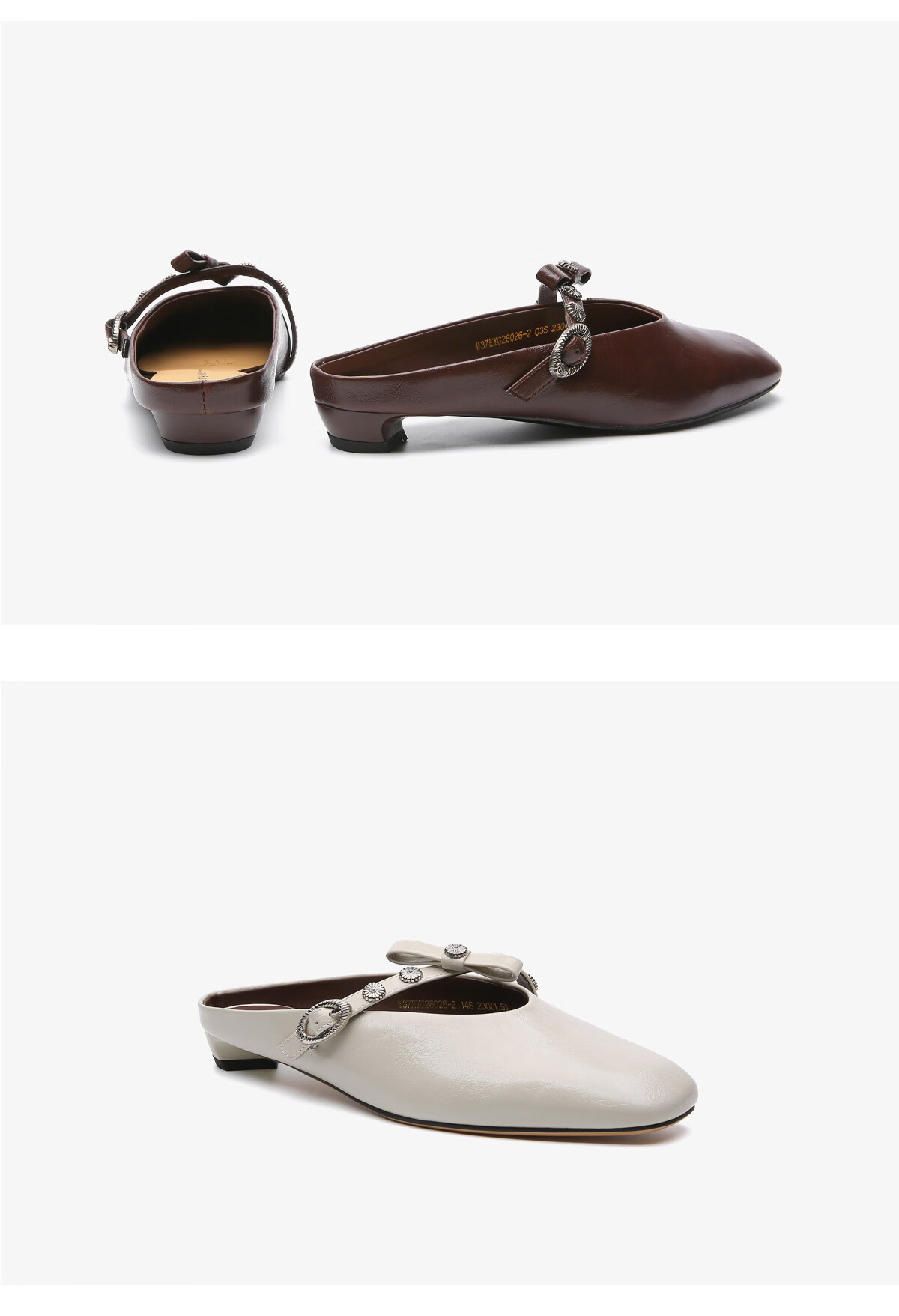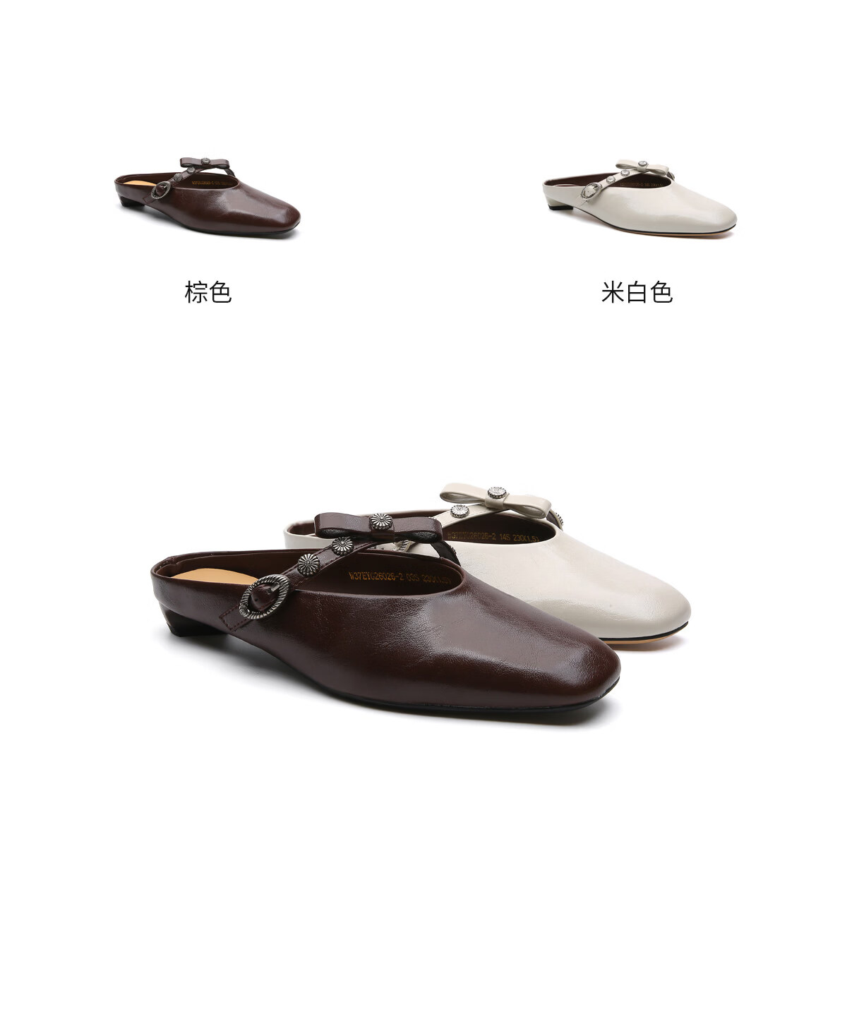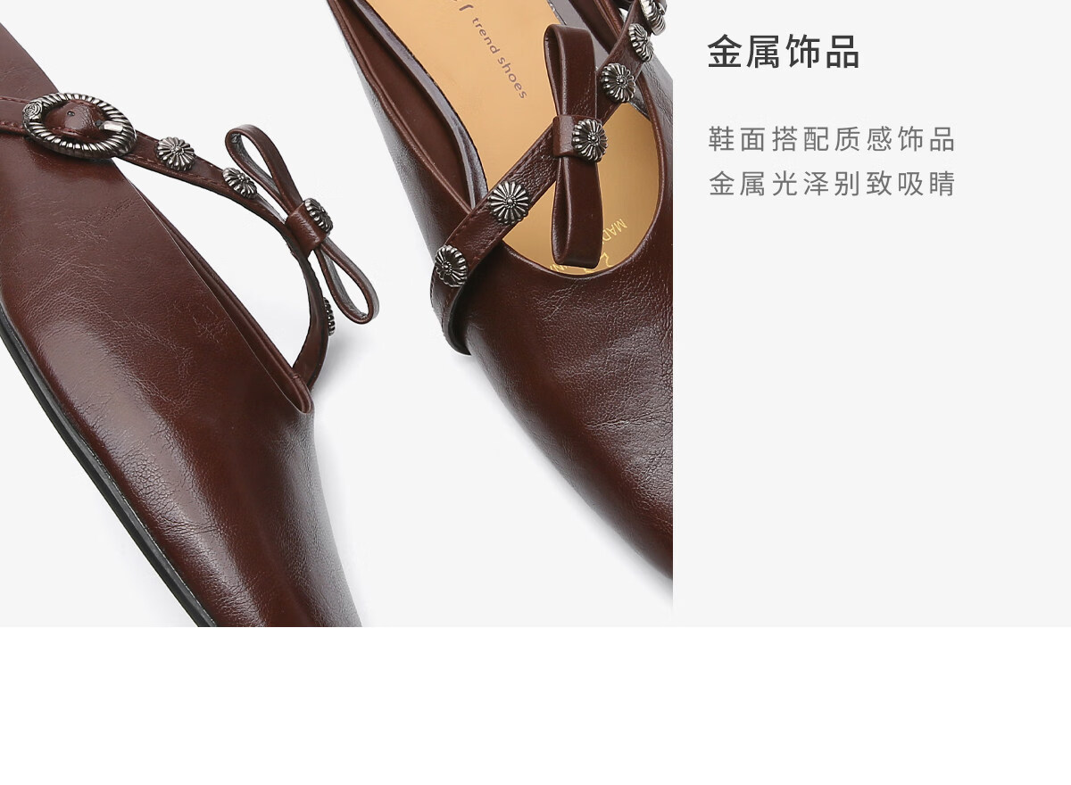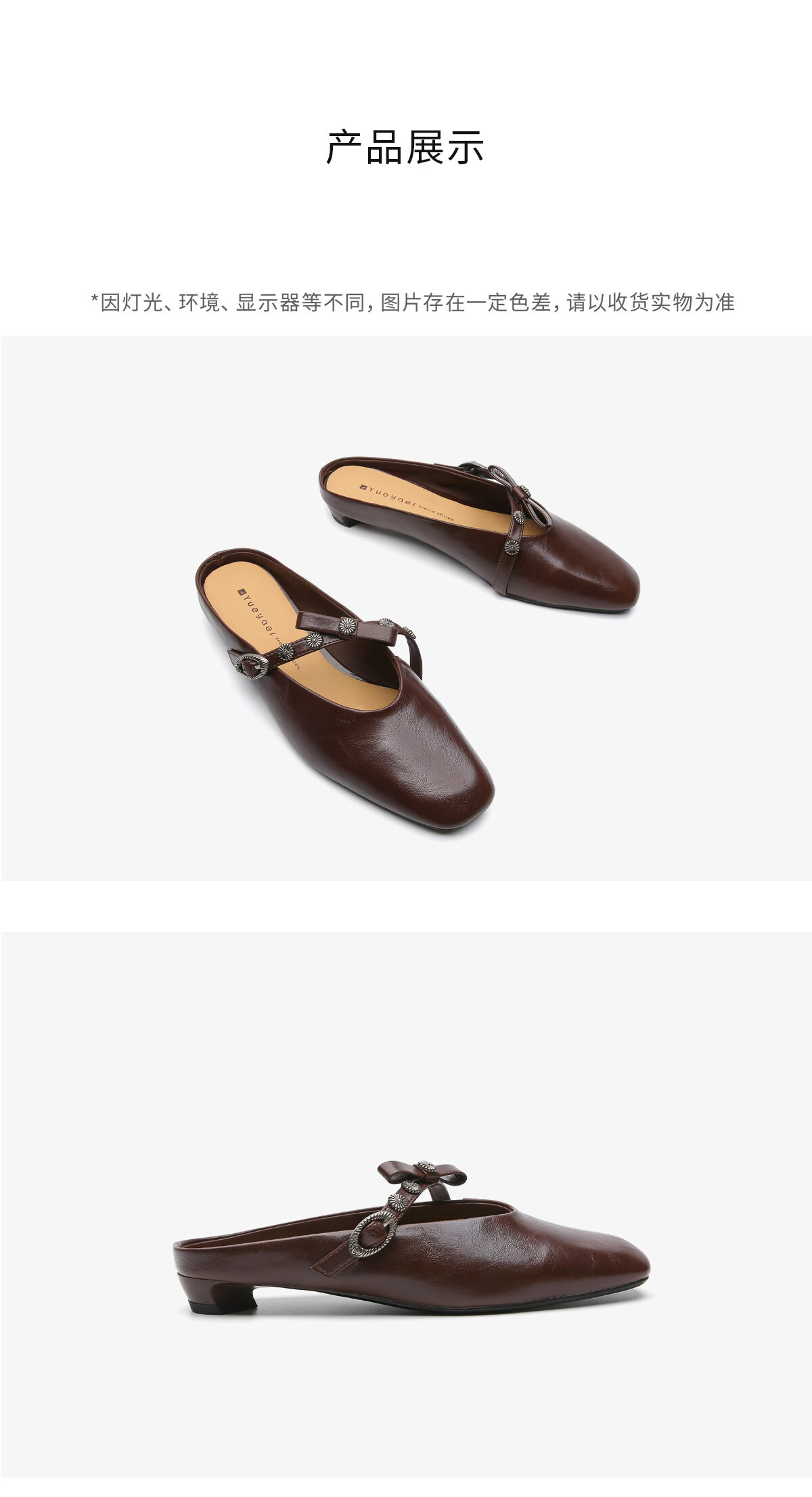 月芽儿法式穆勒鞋女2026新款春季蝴蝶结猫跟包头半拖玛丽珍凉单鞋 棕色03S 34