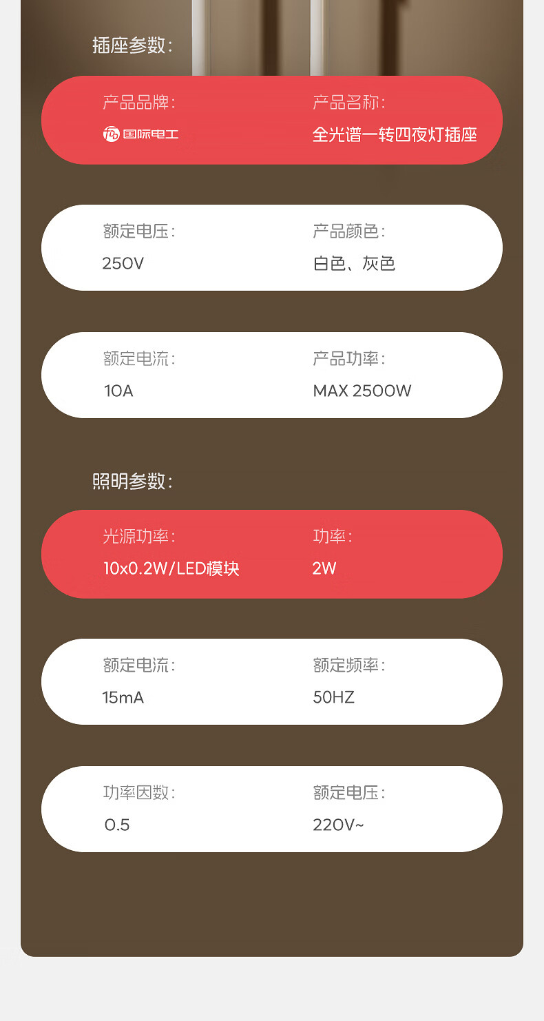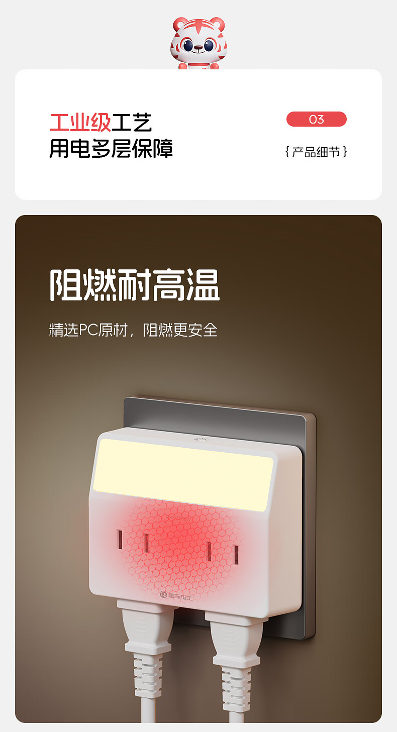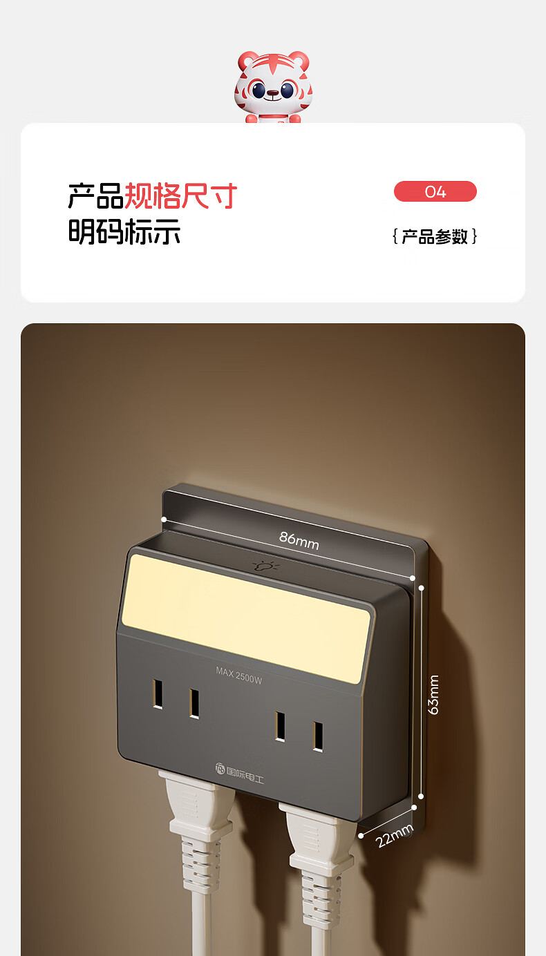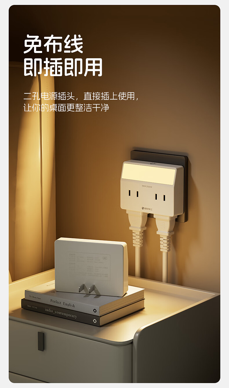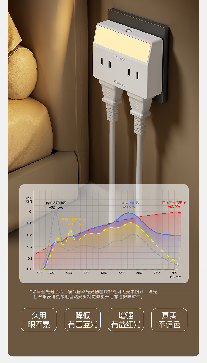 国际电工直插拓展无线插座转换器一转四卧室床头全光谱触摸小夜灯扩展插排 【灰色触摸款】一转四夜灯插座