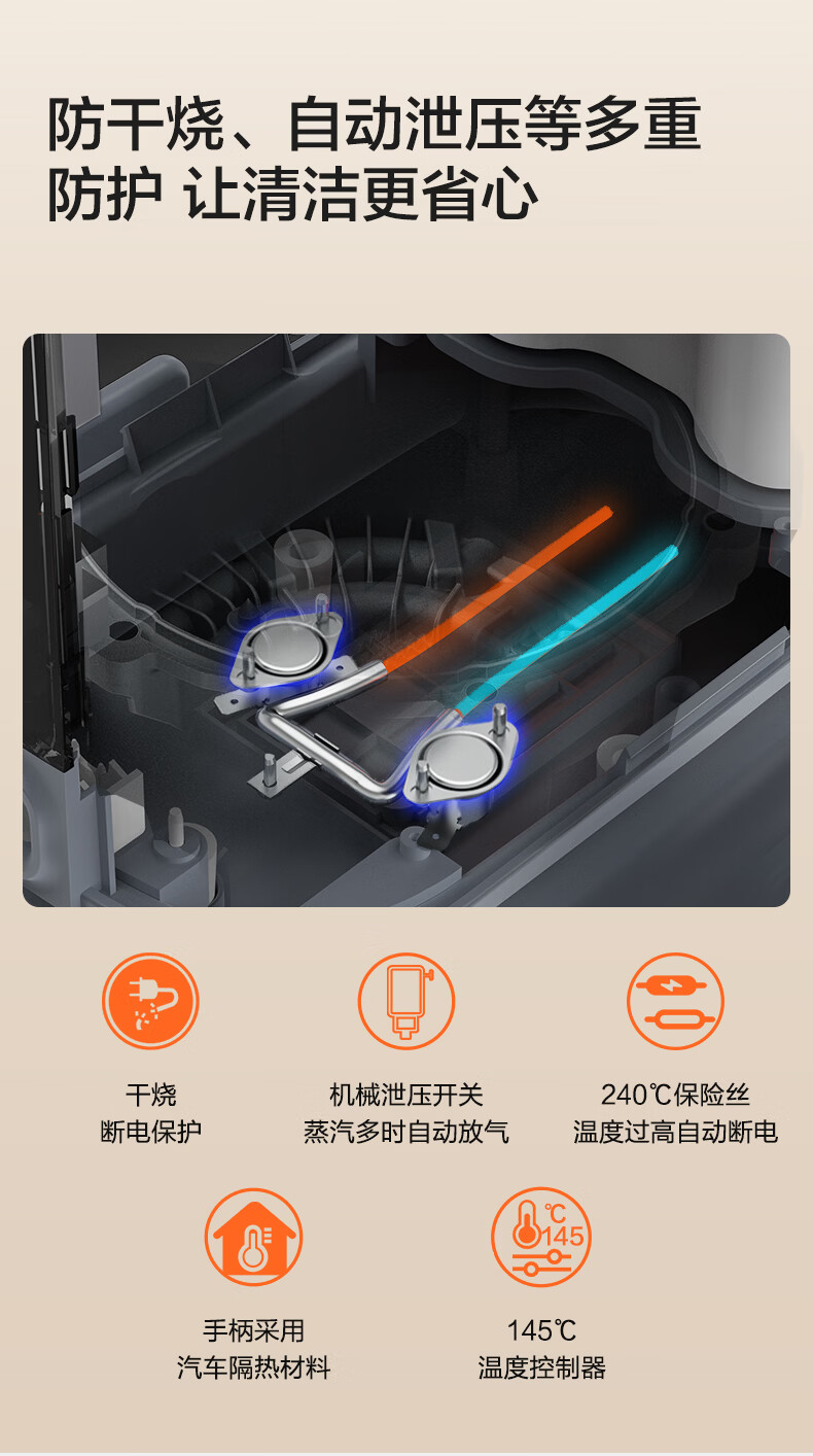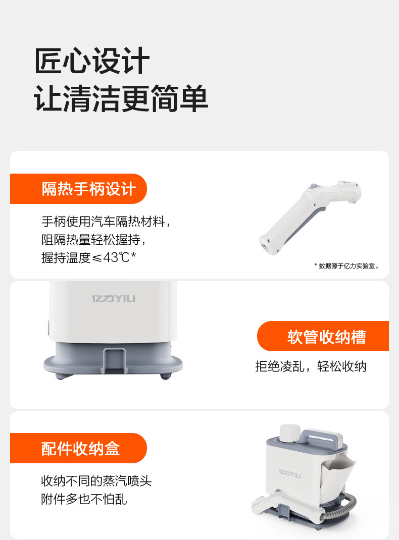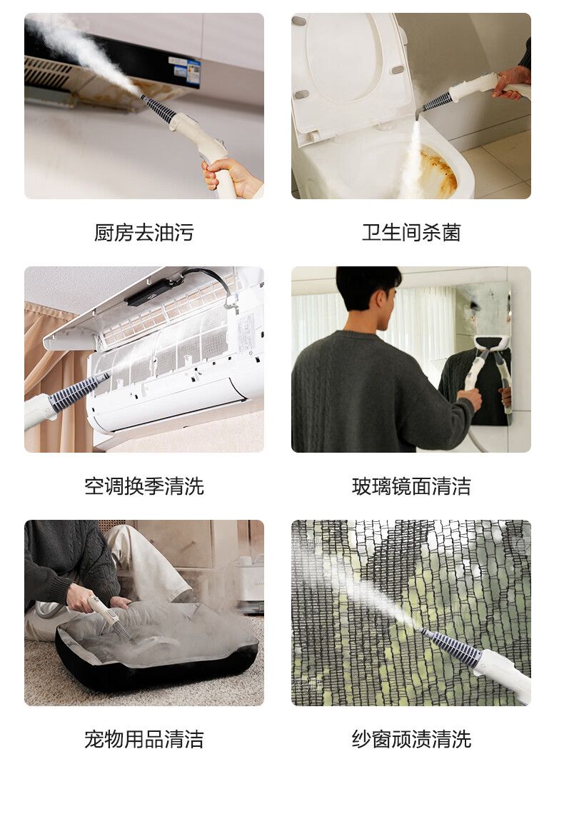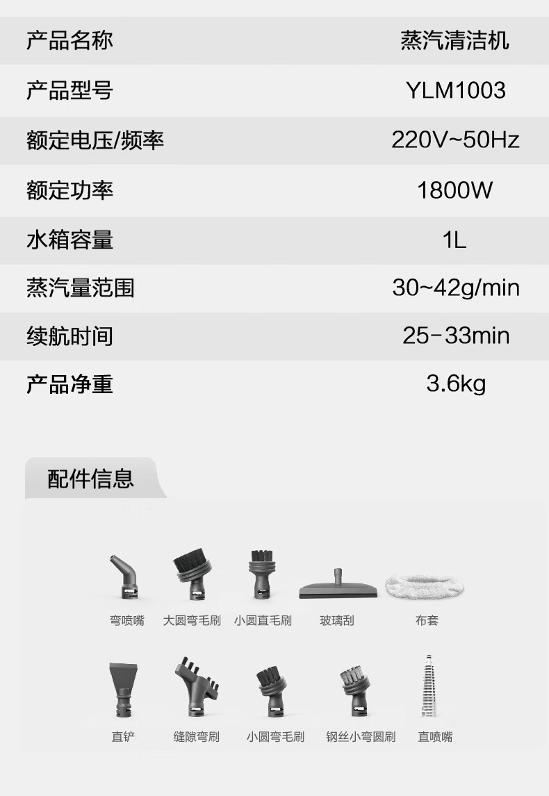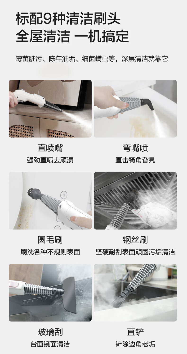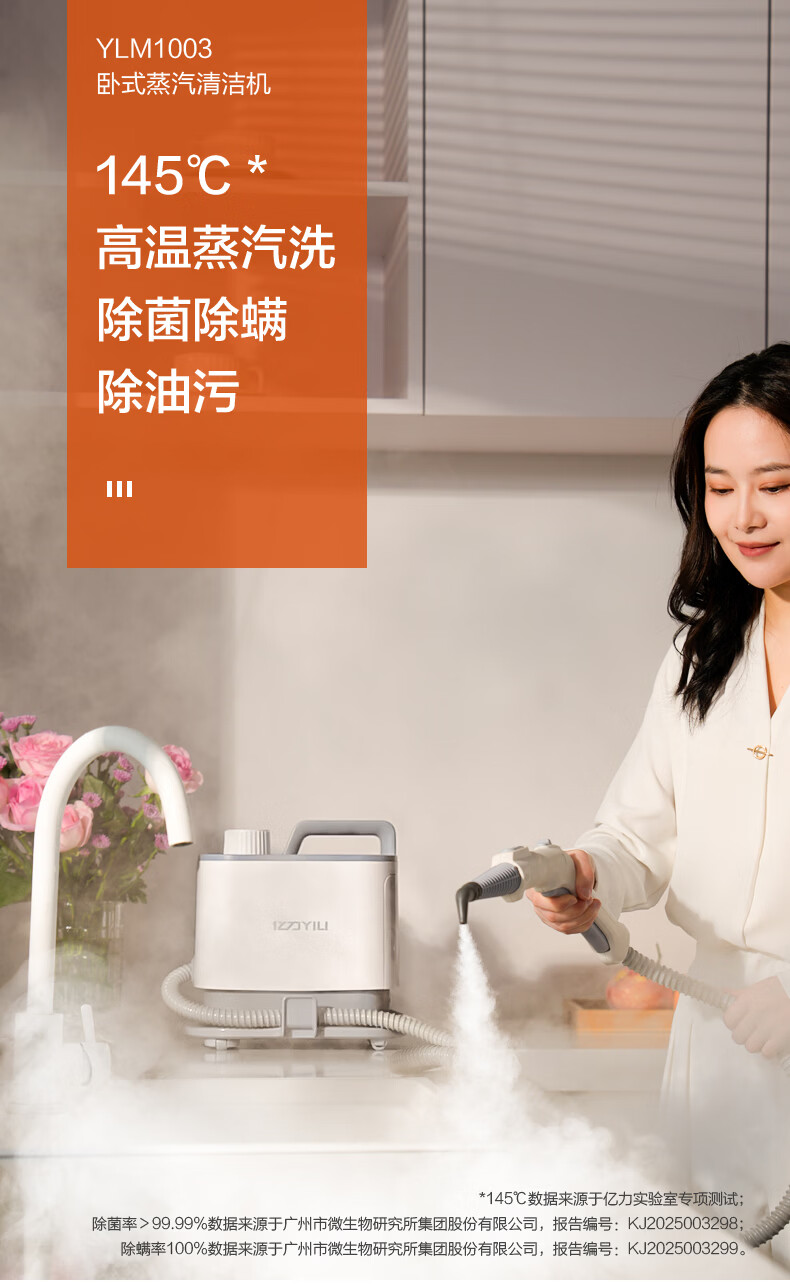 亿力145°高温高压多功能蒸汽清洁机蒸汽拖把拖地消毒机全屋油烟机厨房电器空调地毯家政清洁神器-1003 白色