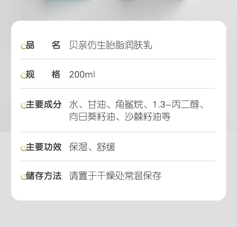 贝亲(Pigeon)婴儿仿生胎脂润肤乳200ml IA310
