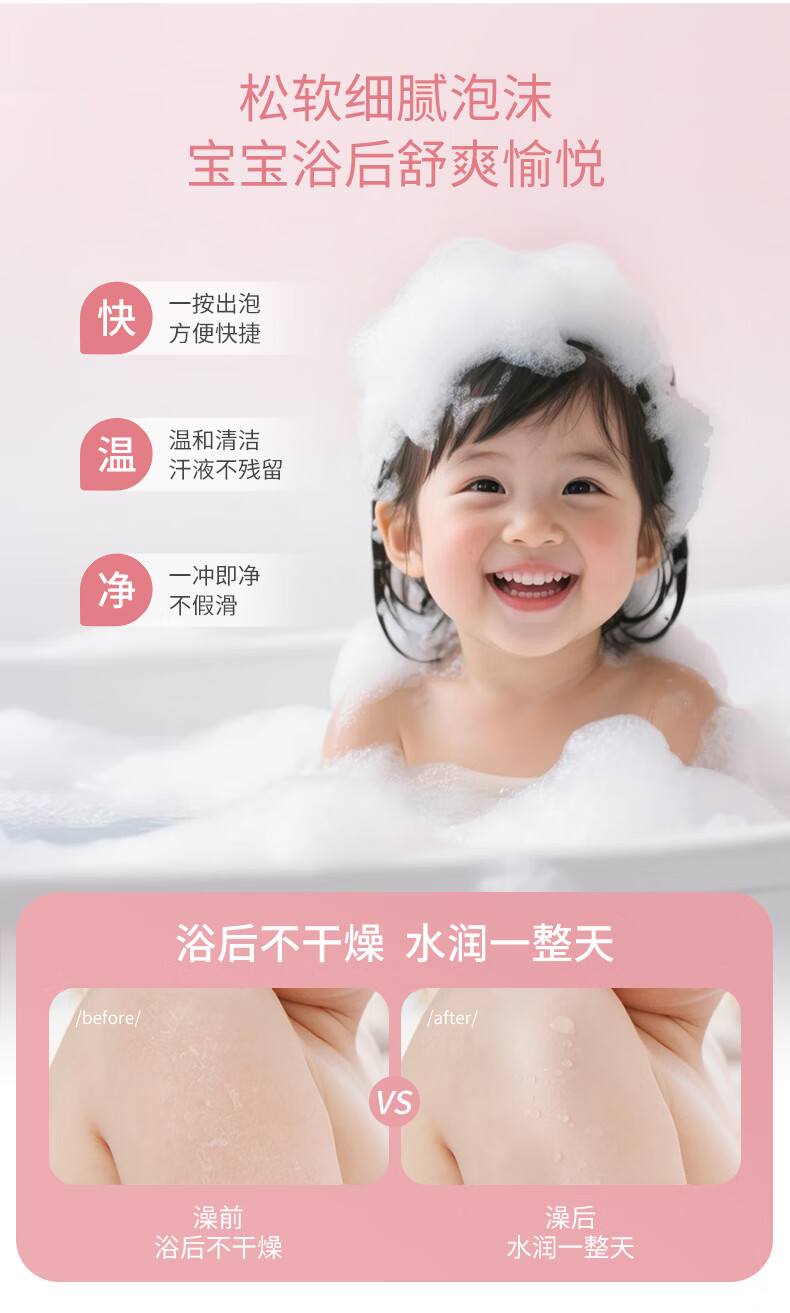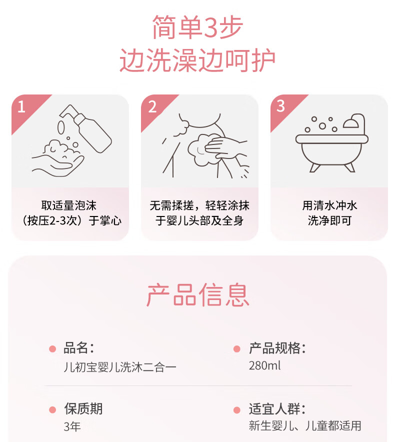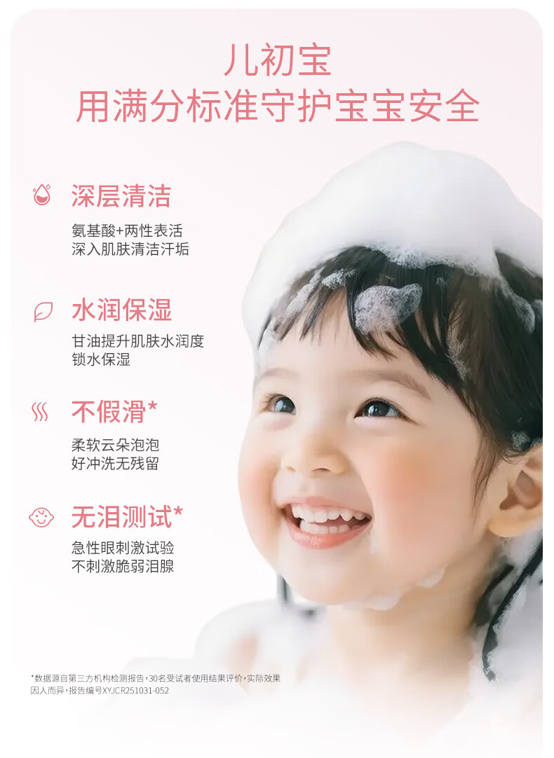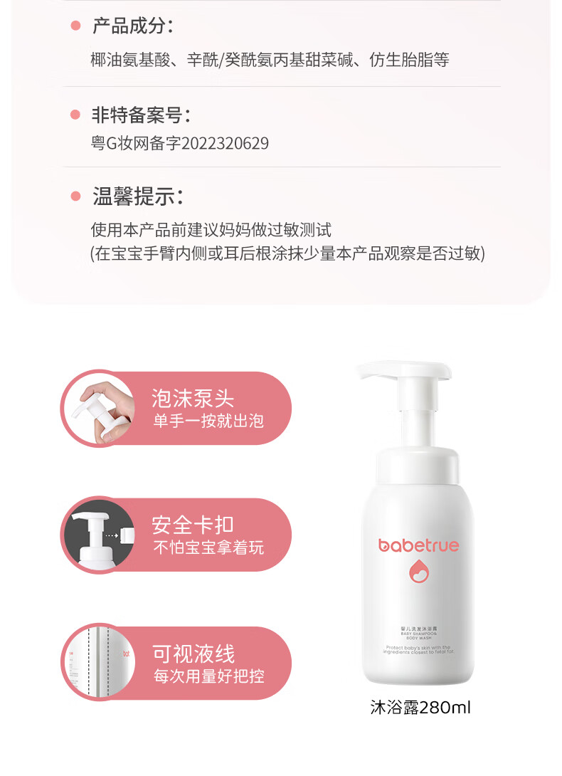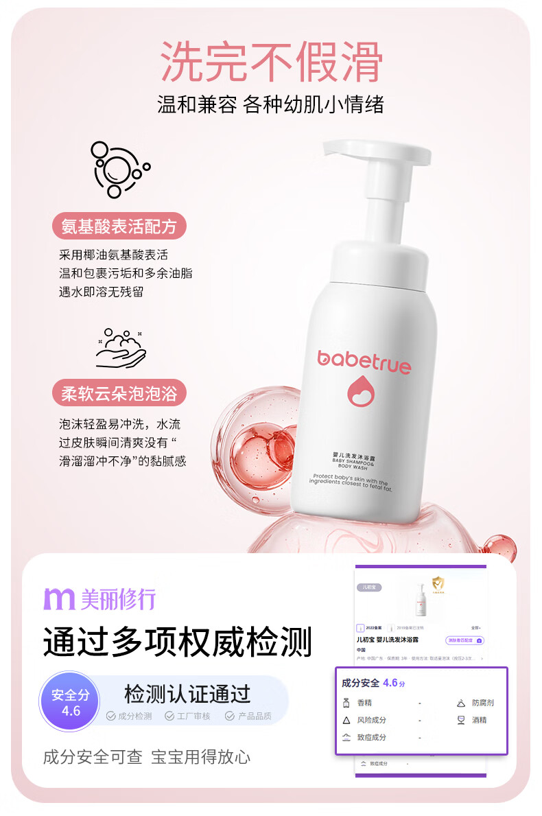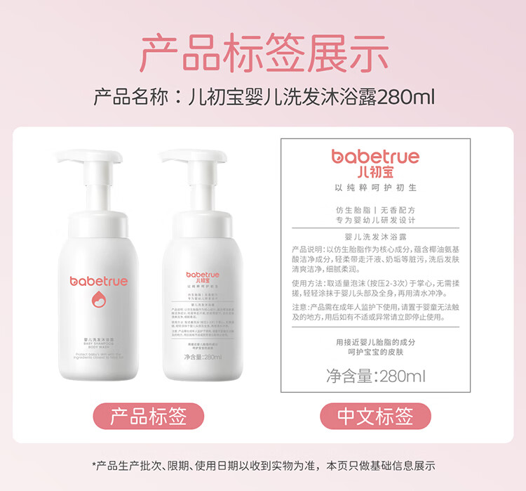 儿初宝(babetrue)婴儿洗发水沐浴露二合一儿童泡泡浴宝宝新生儿洗护温和无泪280ml