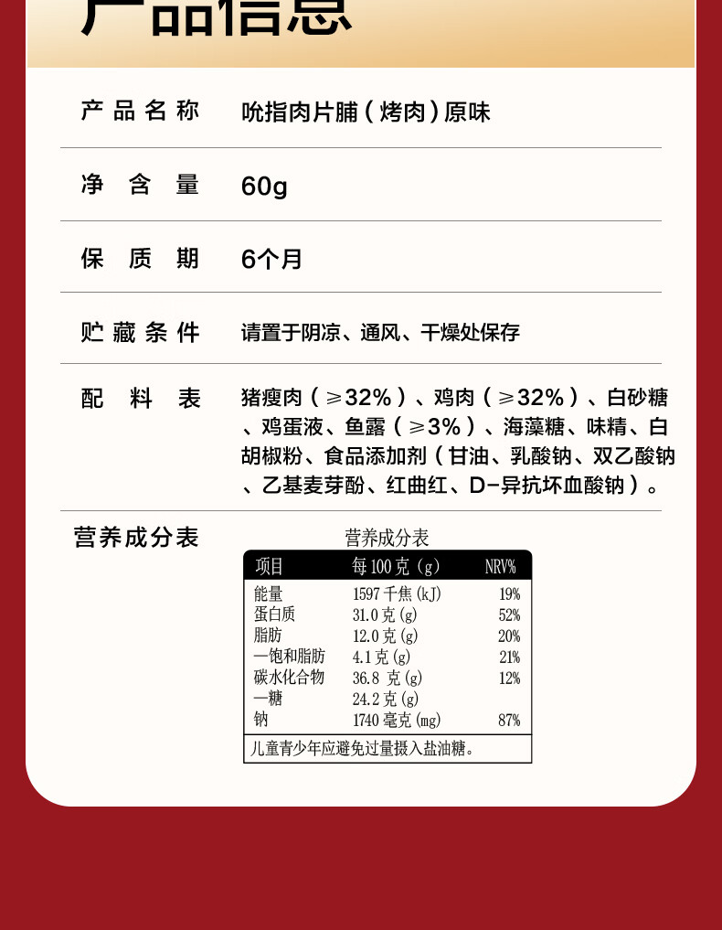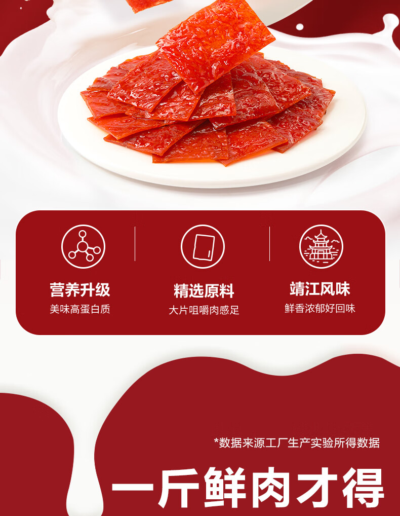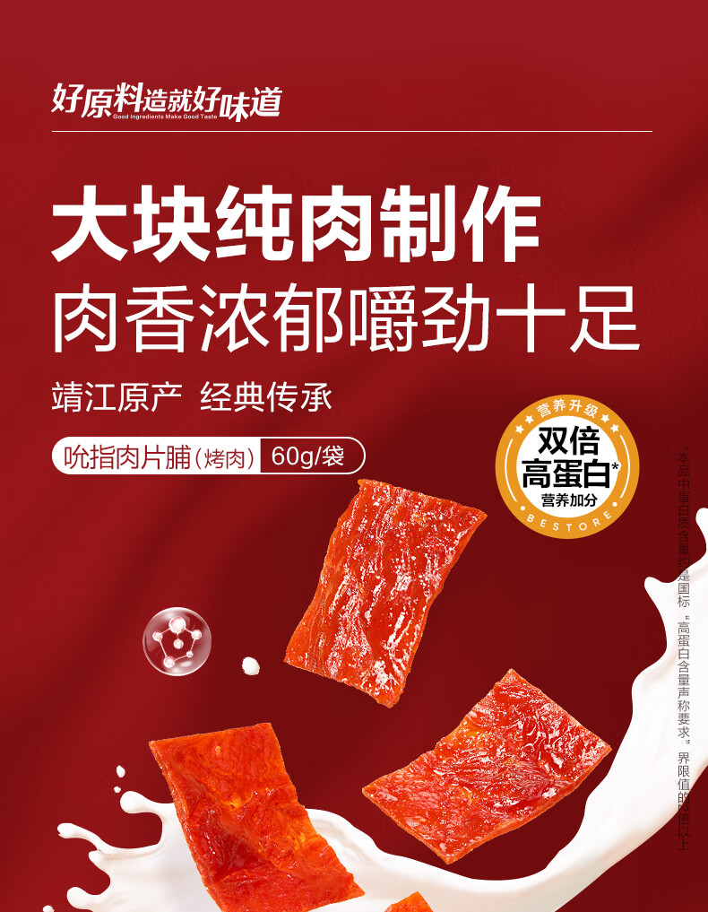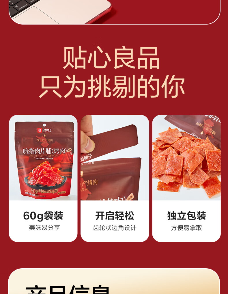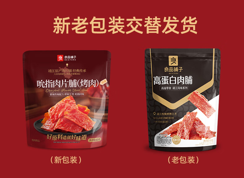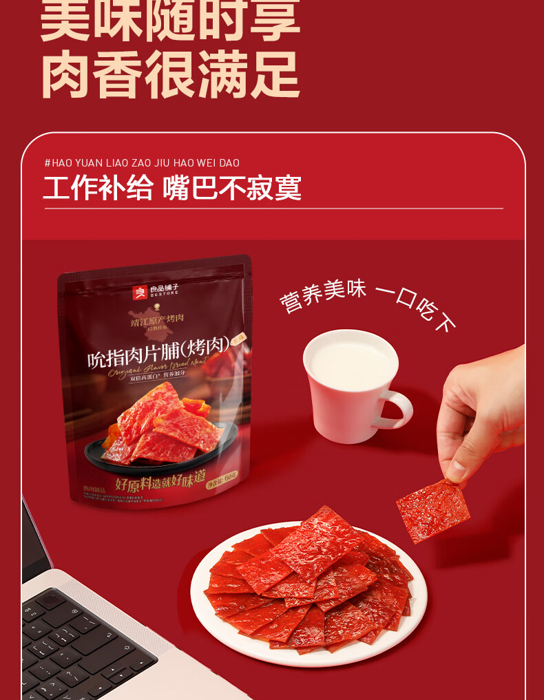 良品铺子高蛋白肉脯/吮指肉片脯烤肉原味60g靖江风味肉干肉脯休闲零食随机
