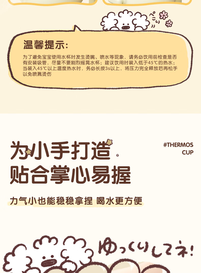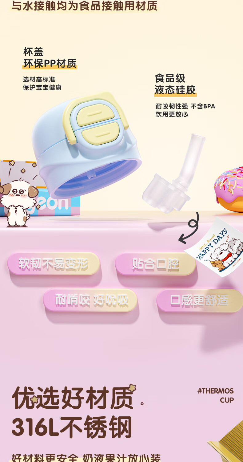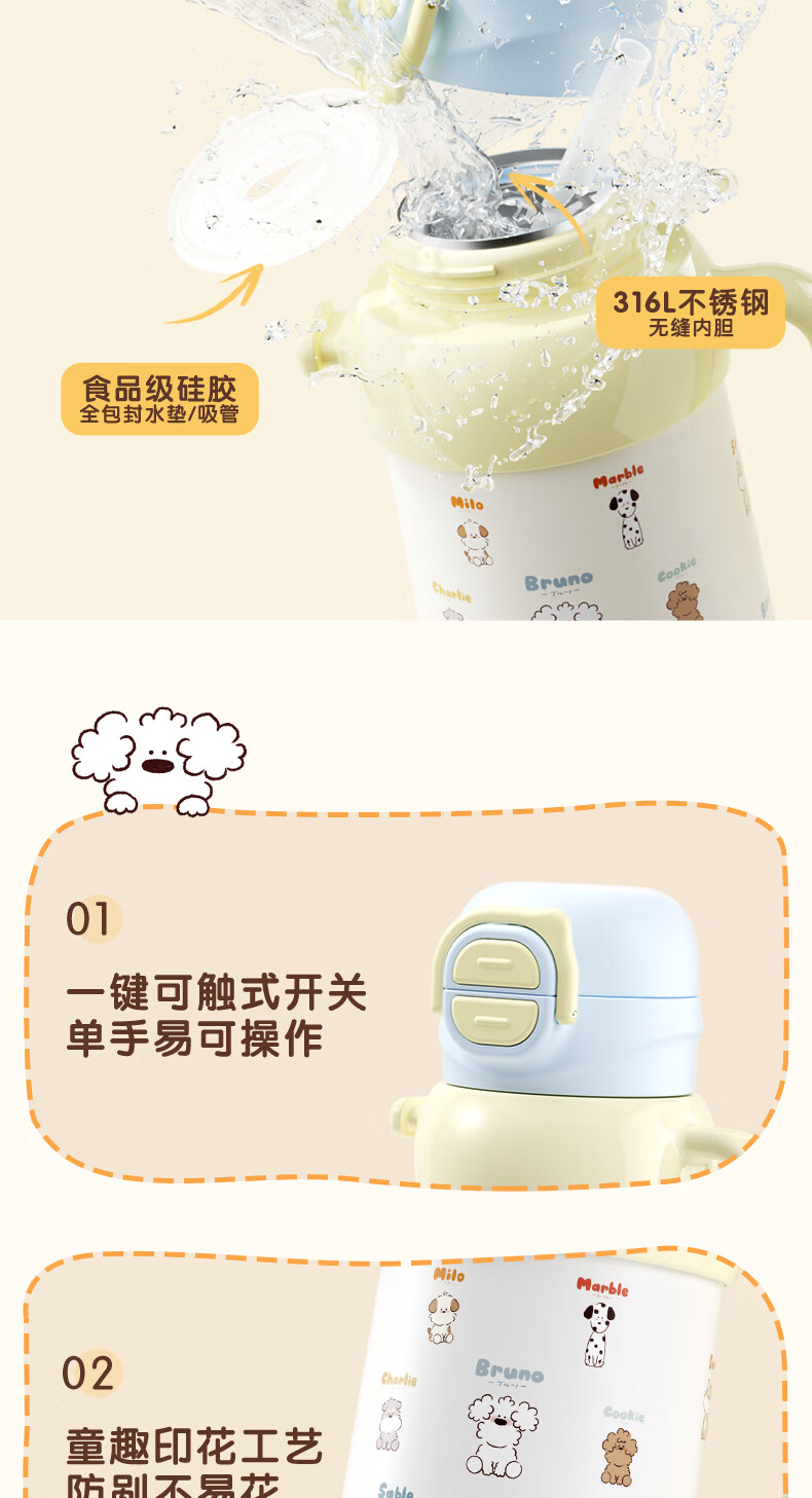 贝亲保温杯儿童水杯316不锈钢外出杯单手柄双饮杯450ML(粉色暖暖小狗)