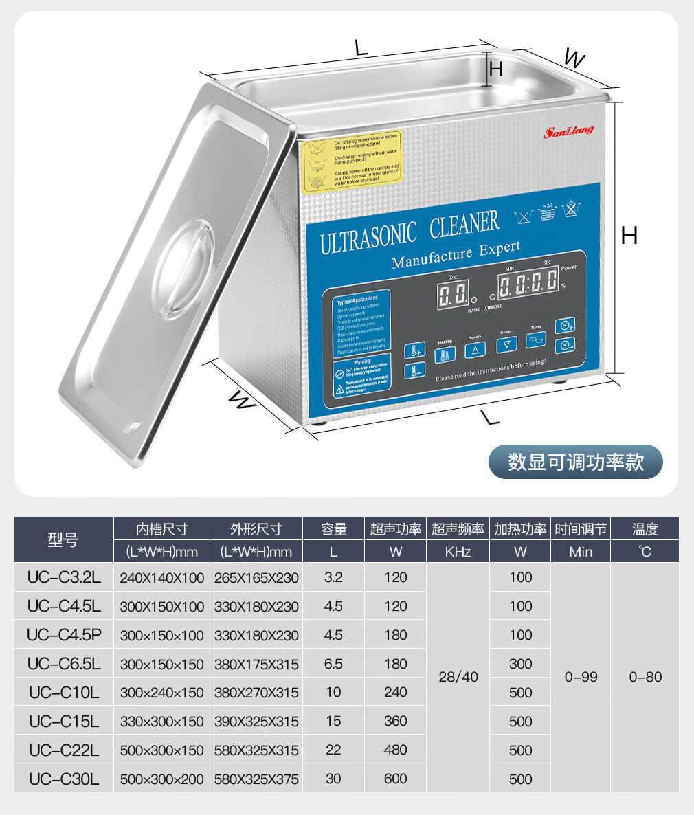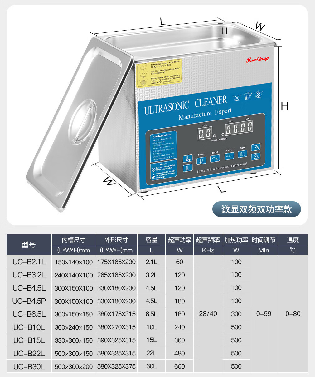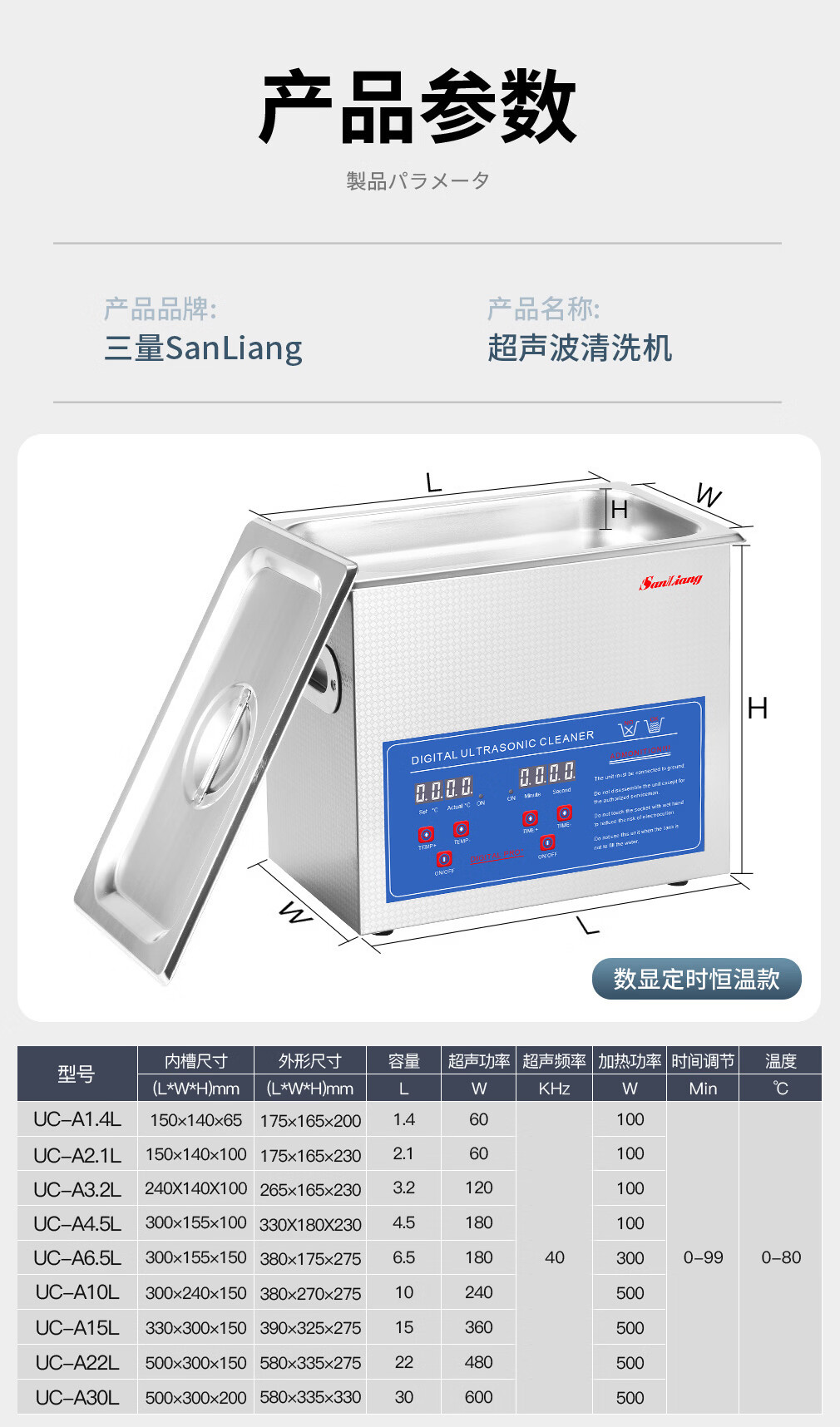 三量(sanliang)三量超声波工业清洗机工业五金零件除油除锈清理机器清洗仪器 数显定时恒温 UC-A1.4L 无规格