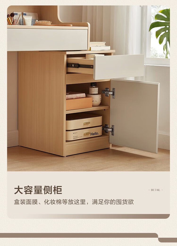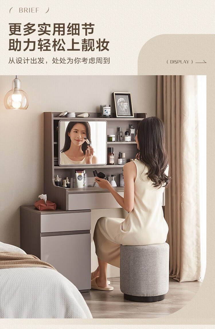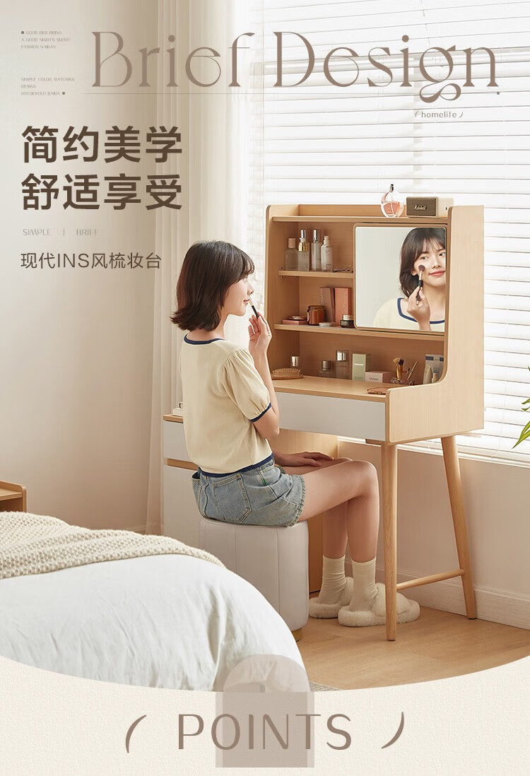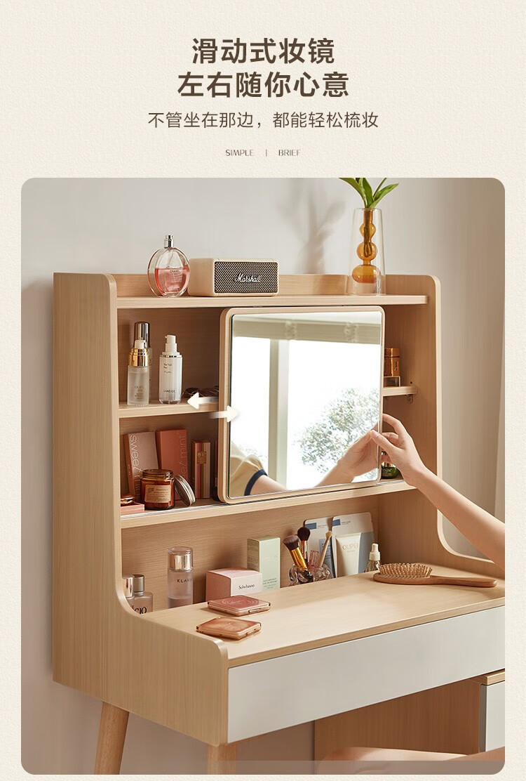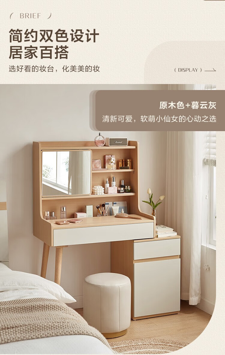 LINSY KIDS现代简约斗柜一体梳妆台小户型网红ins可伸缩化妆桌子 【原木色+暮云灰】梳妆台