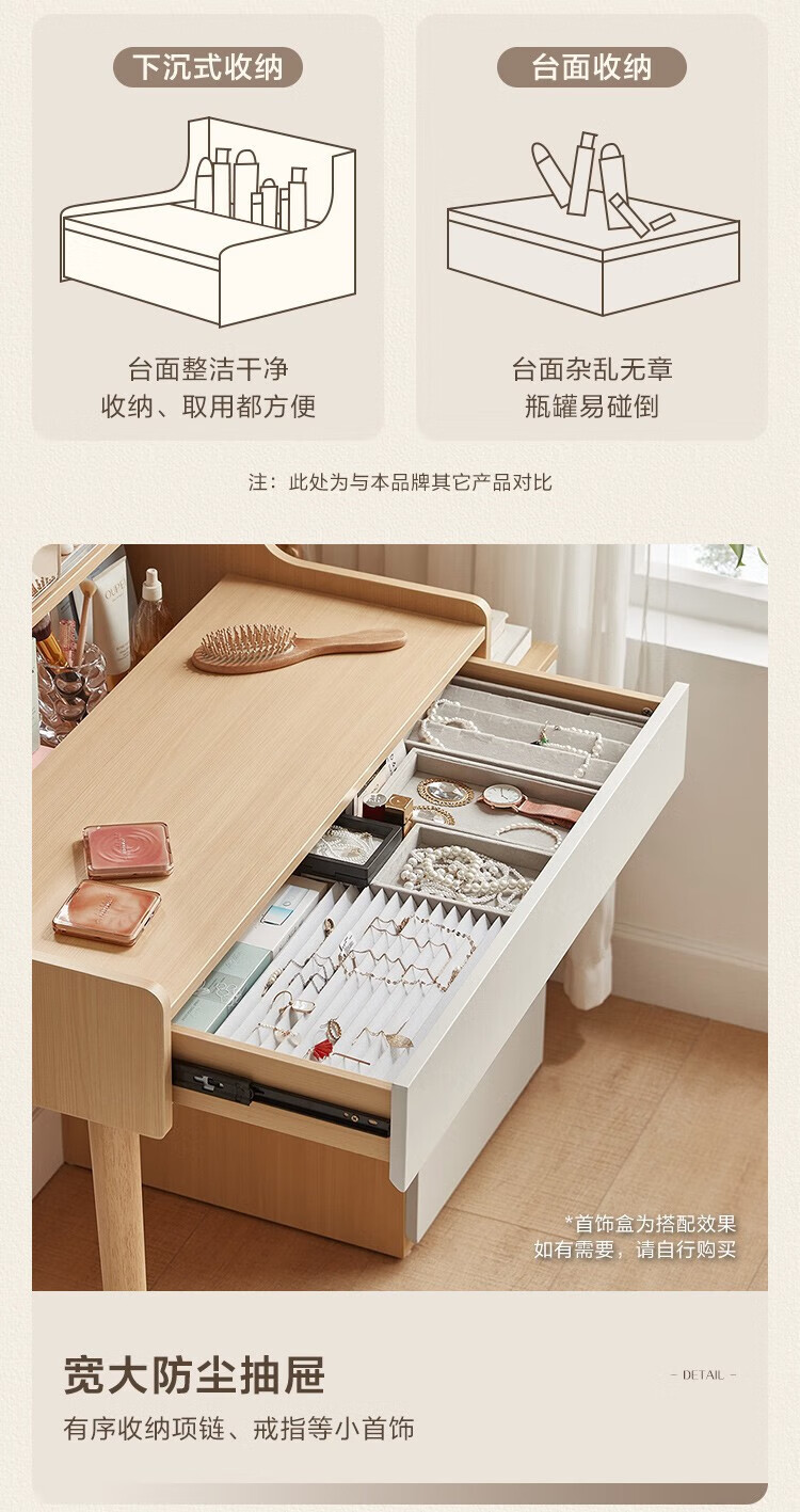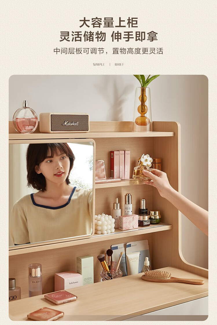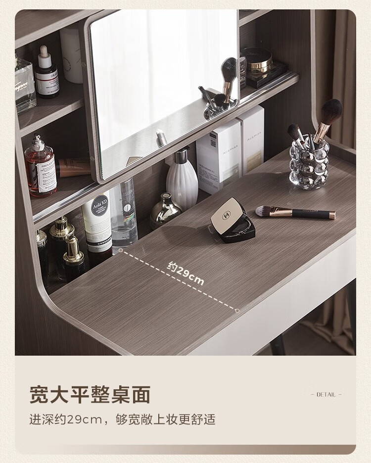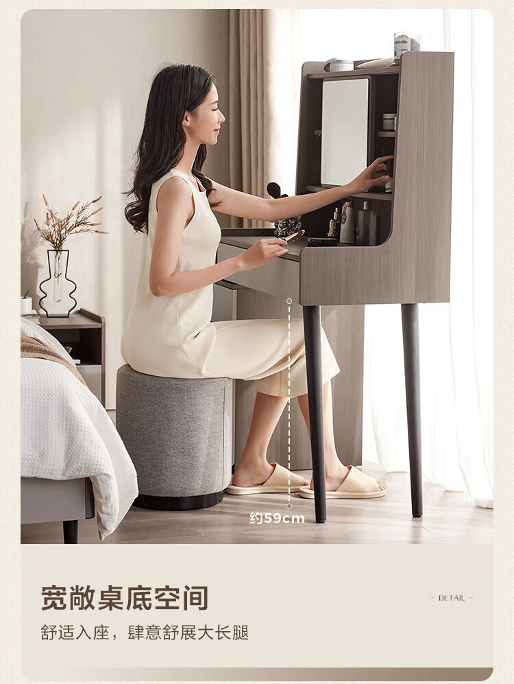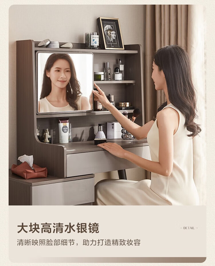 LINSY KIDS现代简约斗柜一体梳妆台小户型网红ins可伸缩化妆桌子 【原木色+暮云灰】梳妆台
