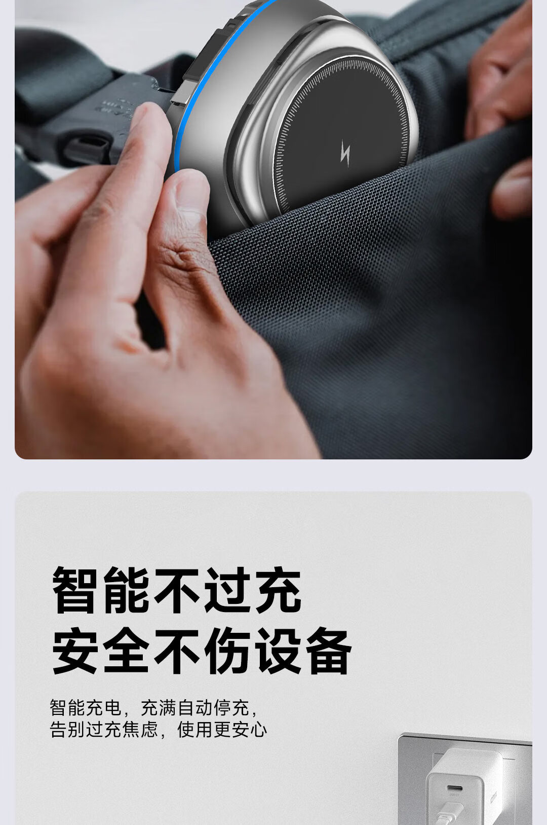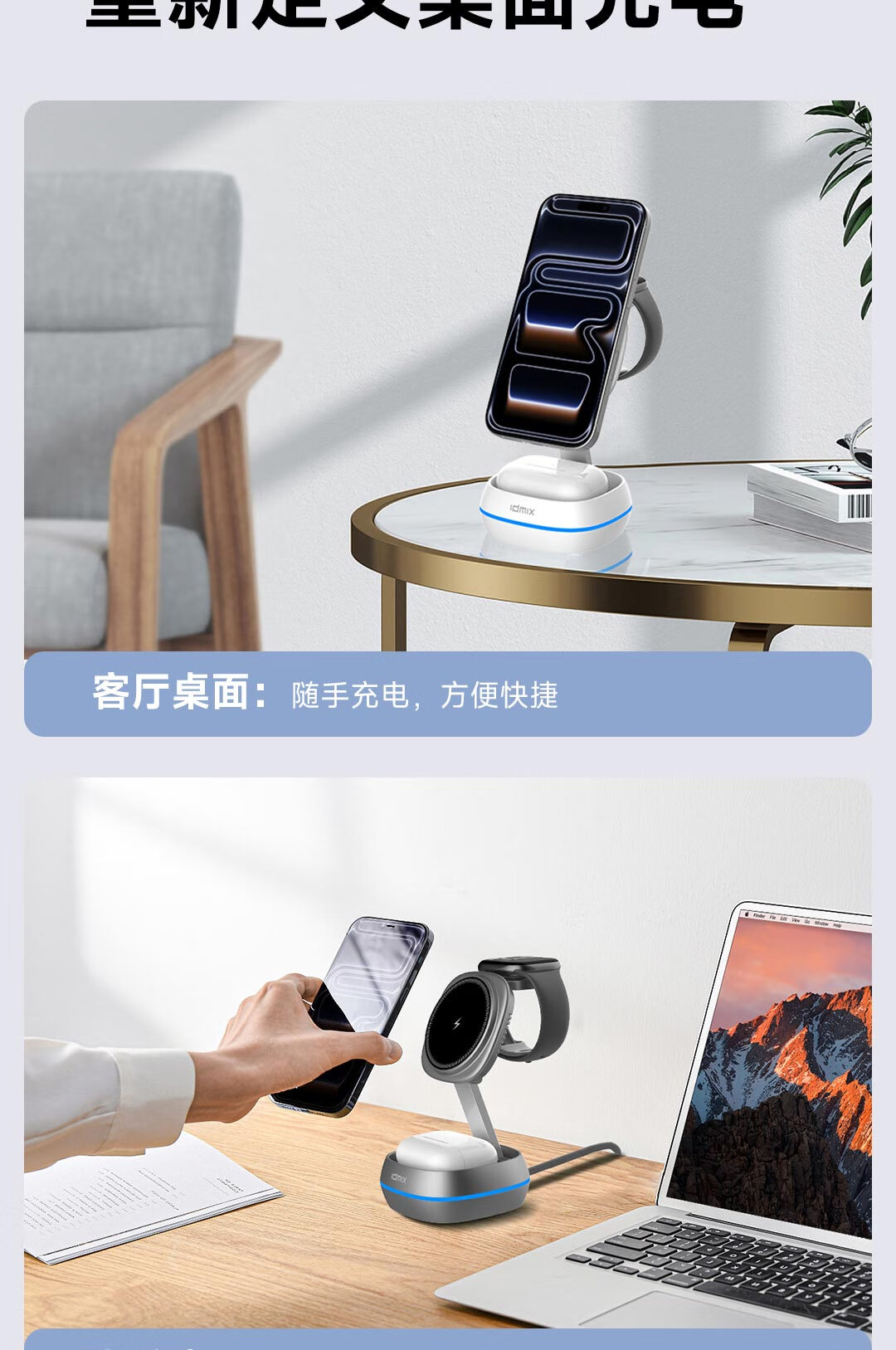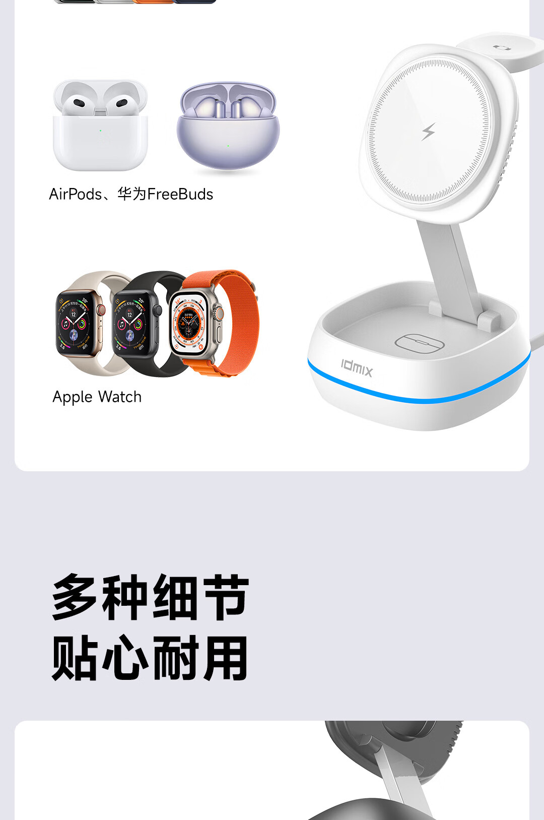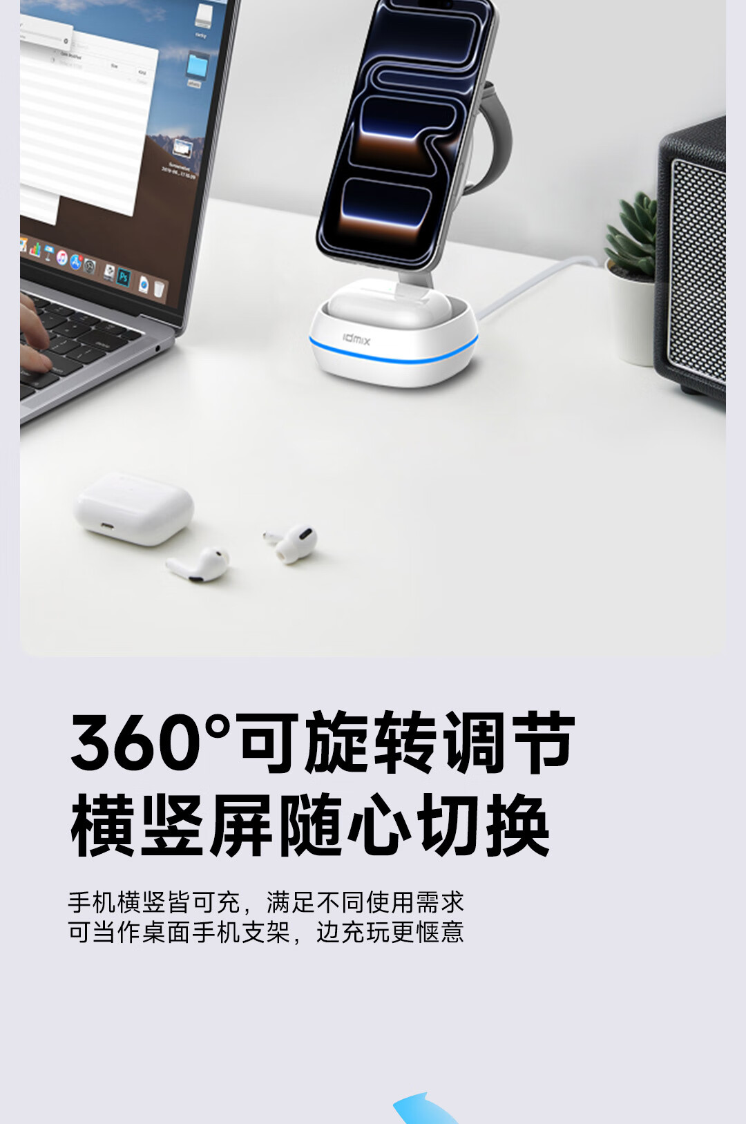 IDMIX三合一无线充电器磁吸带支架适用iPhone17/16/15Pro手机 【白色】自带伸缩线15W无线磁吸充电器