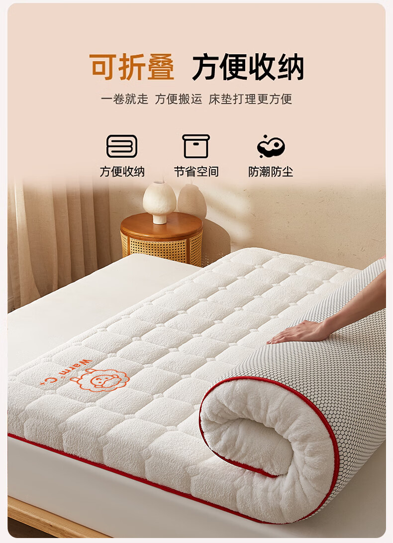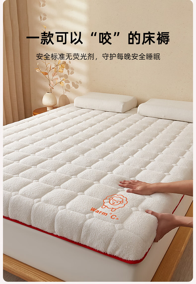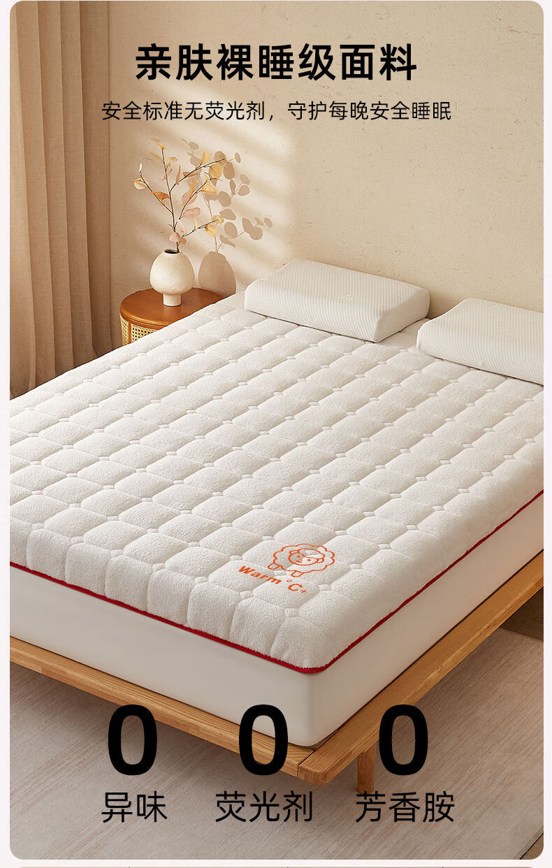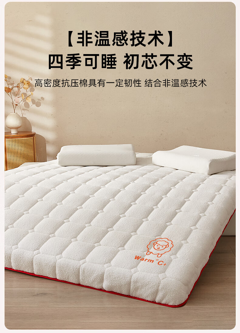 猫人(MiiOW)羊羔绒床垫家用软垫卧室床褥垫子冬季加厚保暖牛奶绒宿舍学生褥子 白色印花-厚约6cm【加厚羊羔绒】 80x190cm【超暖整夜12H】