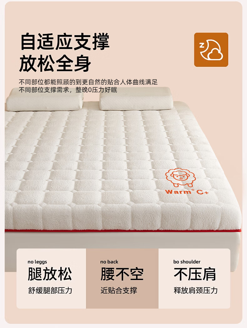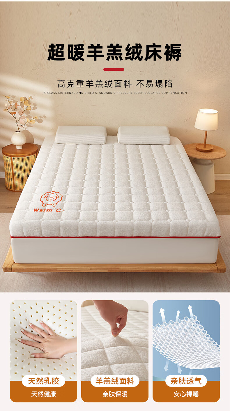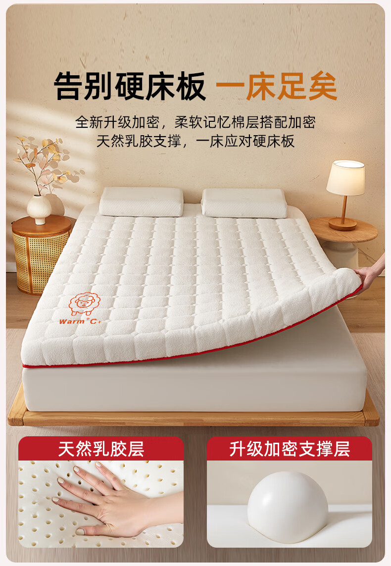 猫人(MiiOW)羊羔绒床垫家用软垫卧室床褥垫子冬季加厚保暖牛奶绒宿舍学生褥子 白色印花-厚约6cm【加厚羊羔绒】 80x190cm【超暖整夜12H】