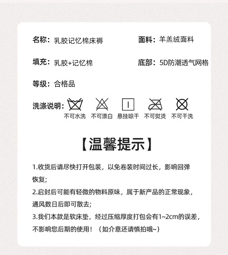 猫人(MiiOW)乳胶记忆棉床垫遮盖物软垫家用卧室学生宿舍单人海绵垫床褥子 卡其-厚约6cm【亲肤透气】 80*190cm【现货急发】