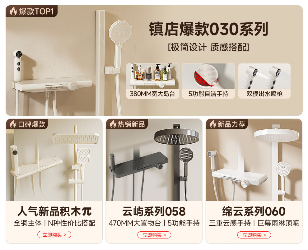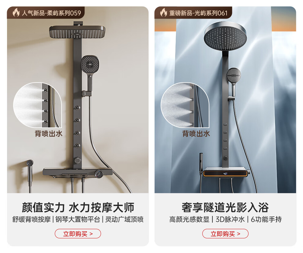 浪鲸(SSWW)卫浴淋浴花洒套装浴室冷热增压背喷按摩智能花洒全套一体2025新款 光屿系列-枪灰【背喷冷热五功能】061A