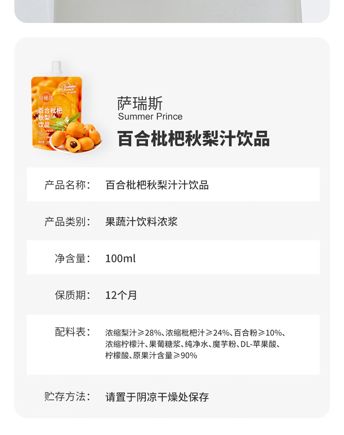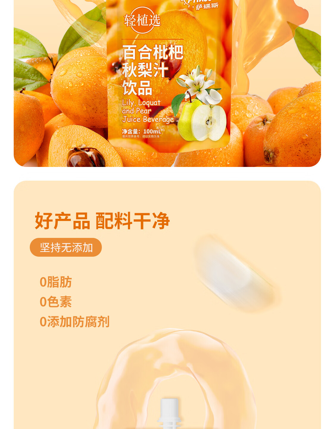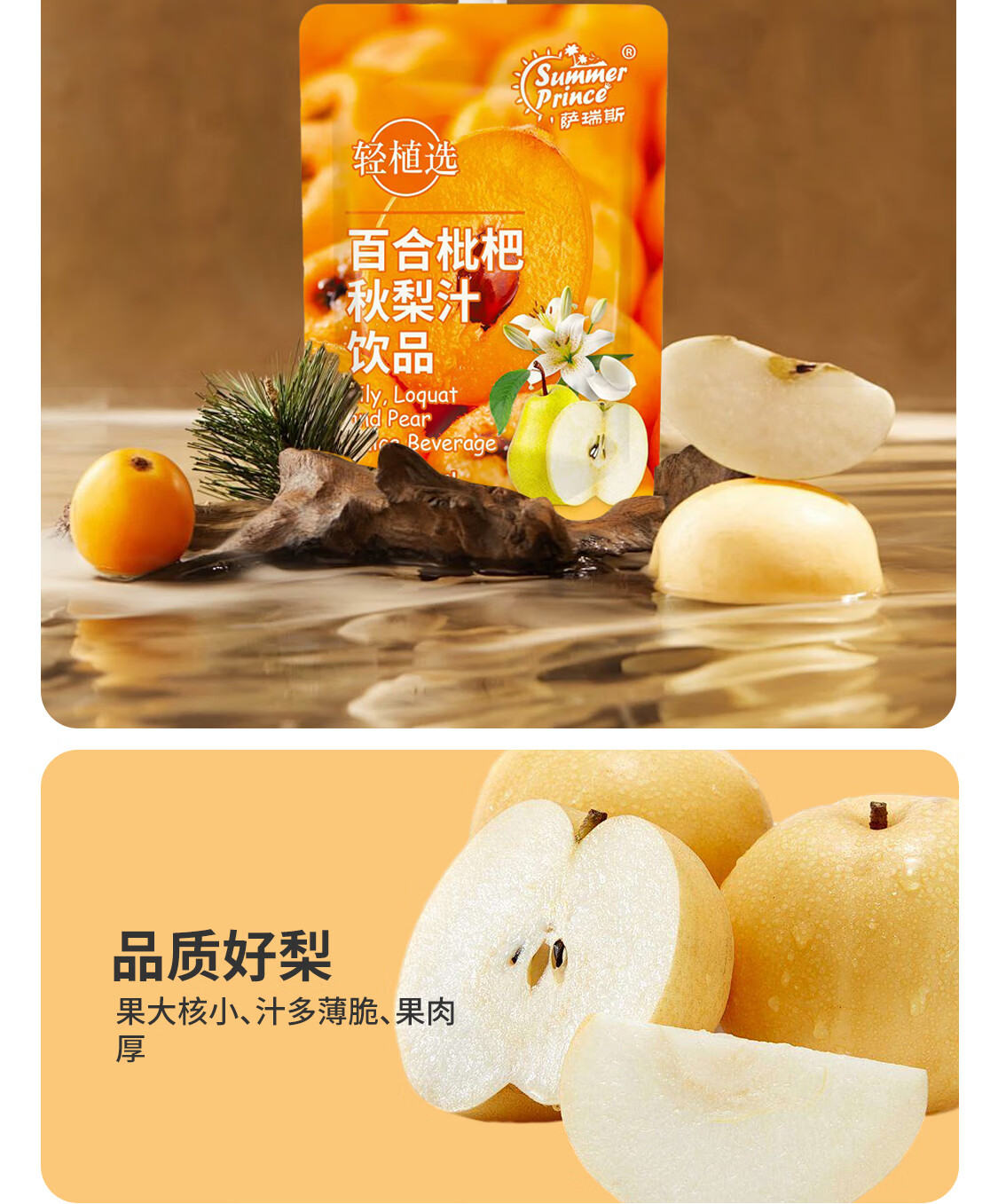 萨瑞斯 秋梨枇杷百合果蔬饮料100ml *3袋 清润甘甜儿童果汁零食便携