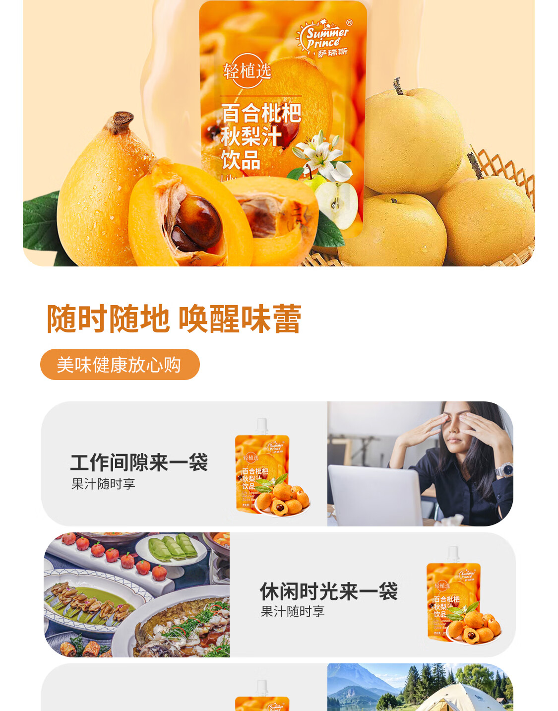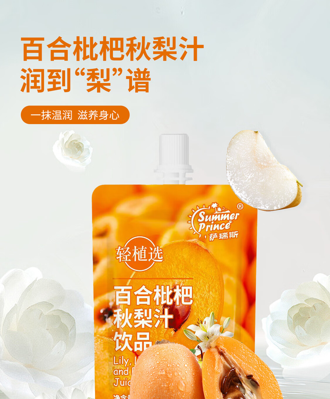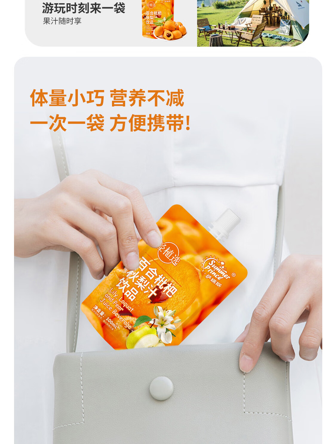 萨瑞斯 秋梨枇杷百合果蔬饮料100ml *3袋 清润甘甜儿童果汁零食便携
