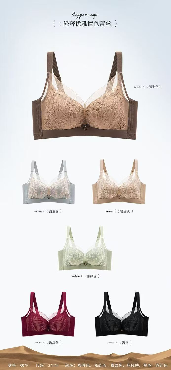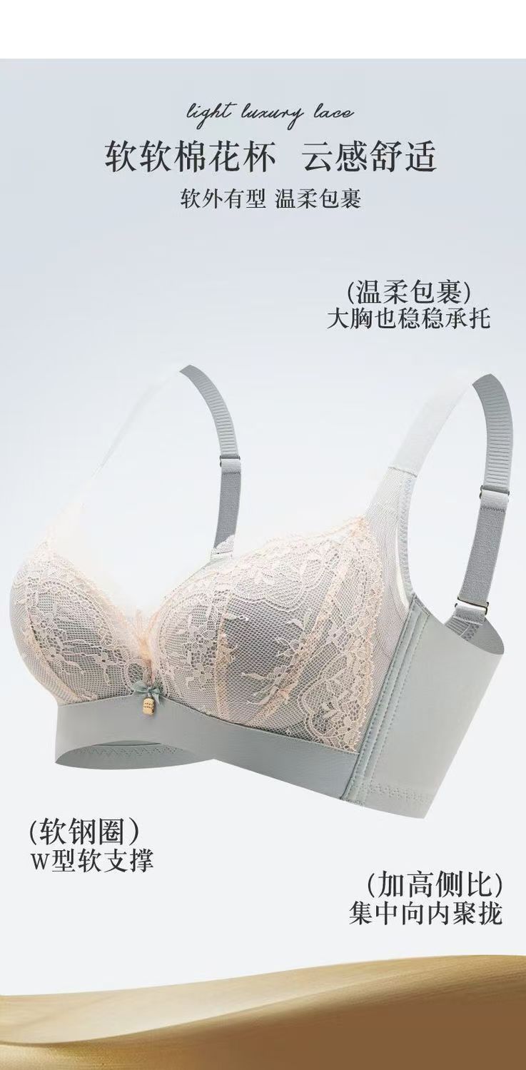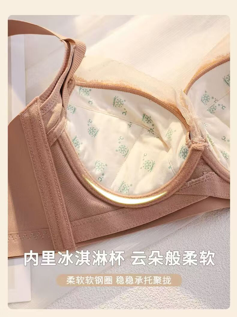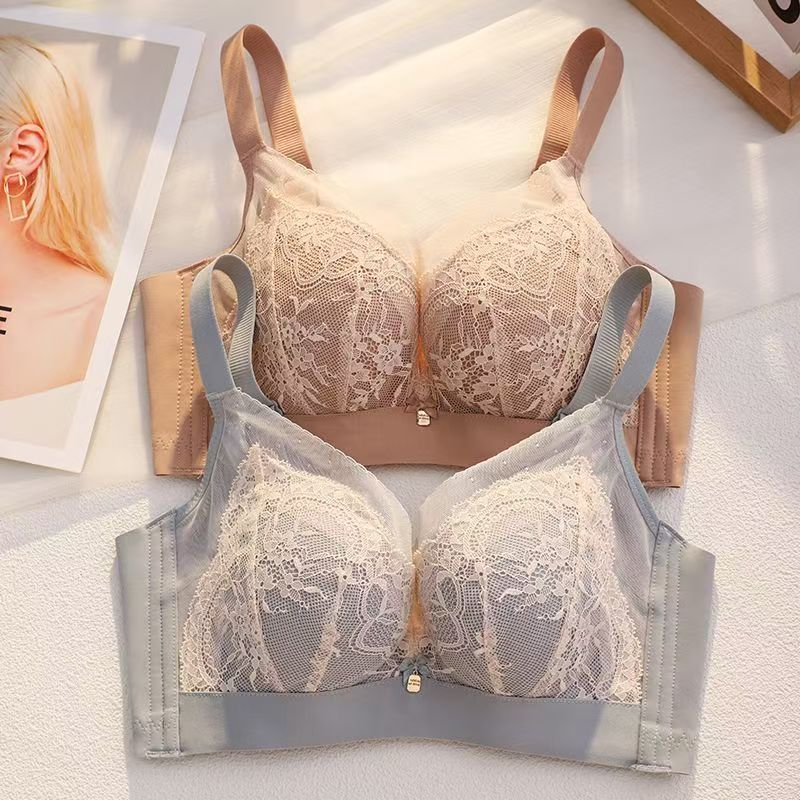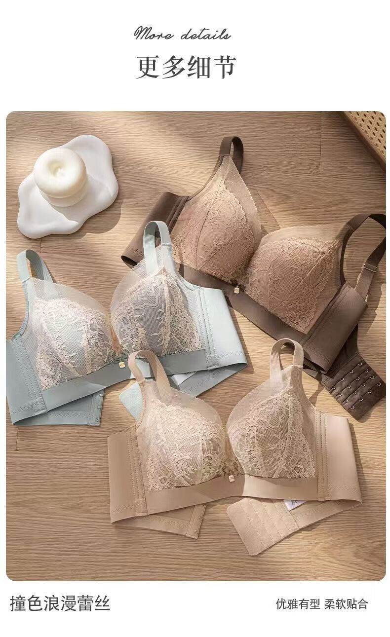 性感蕾丝内衣女大胸显小薄款收副乳防下垂调整型软钢圈上托文胸罩 深棕色 (咖啡棕) 90B