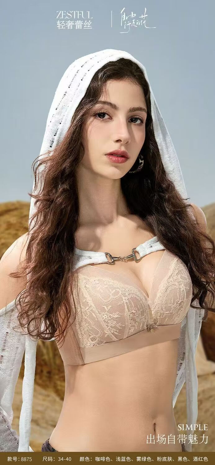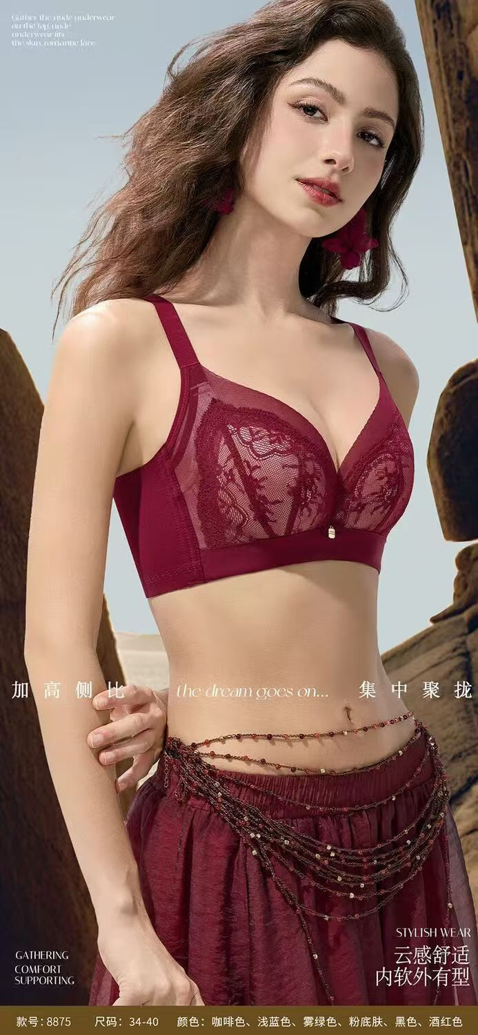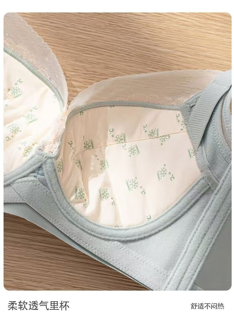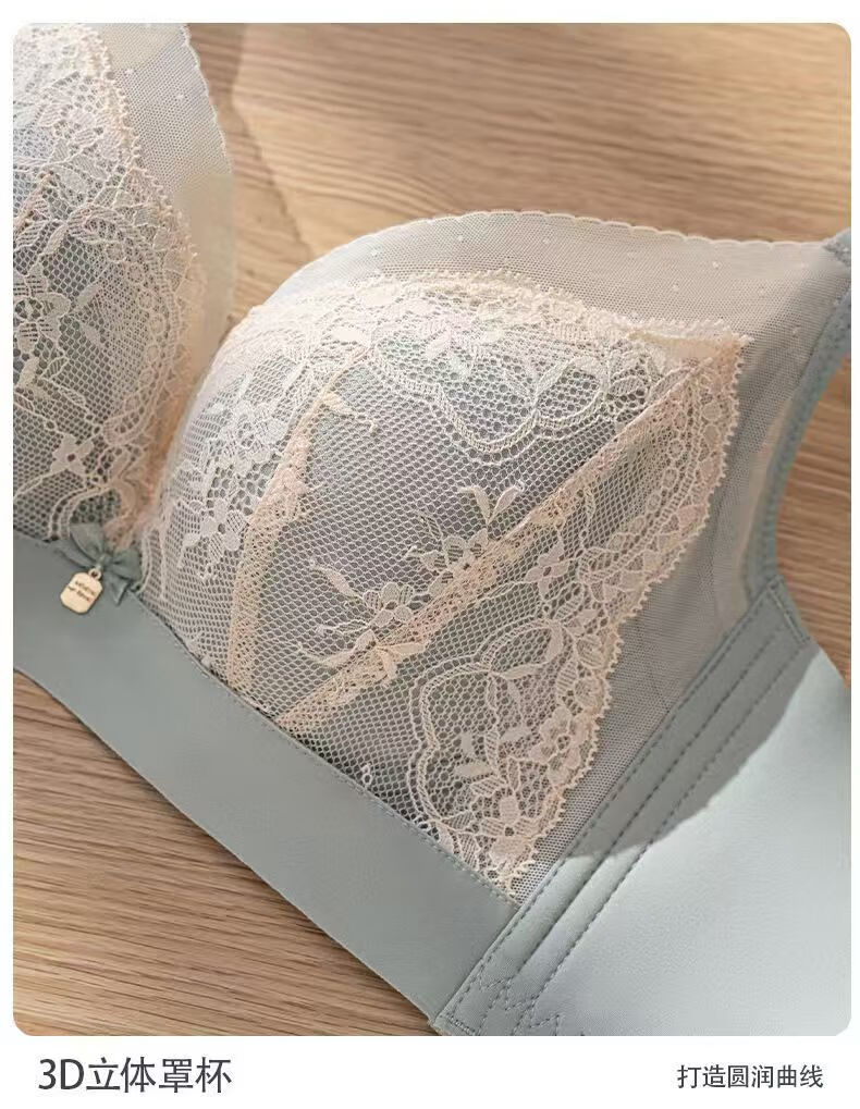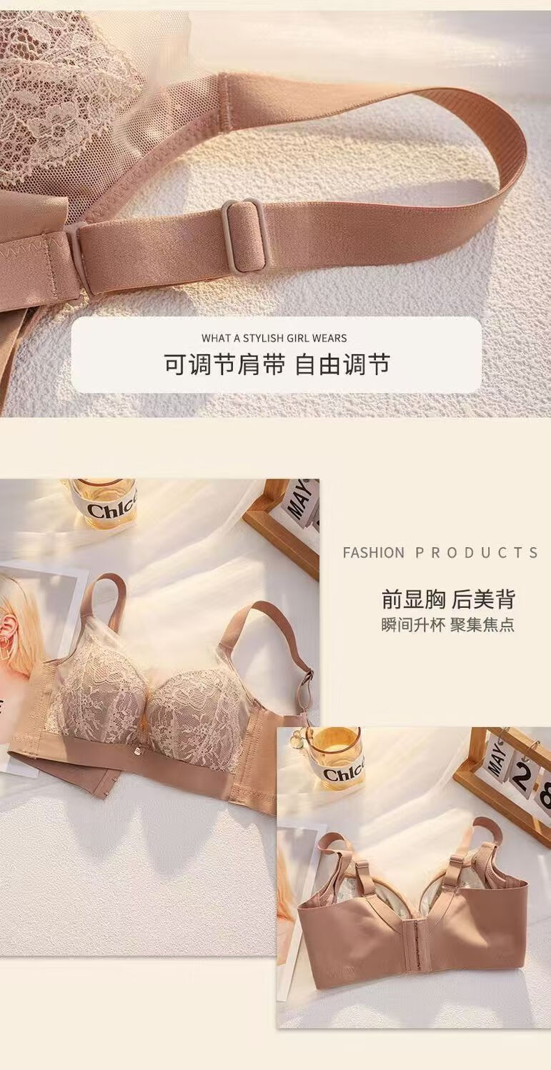 性感蕾丝内衣女大胸显小薄款收副乳防下垂调整型软钢圈上托文胸罩 深棕色 (咖啡棕) 90B