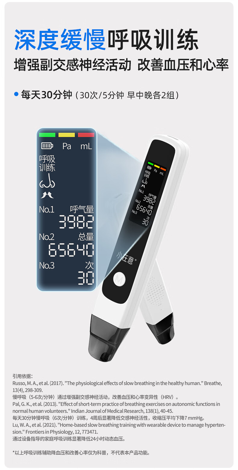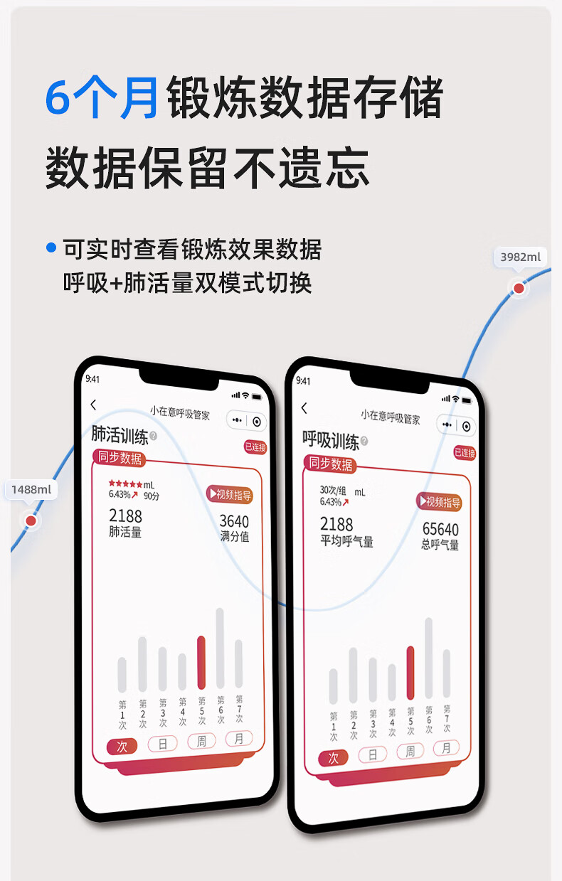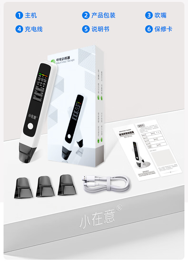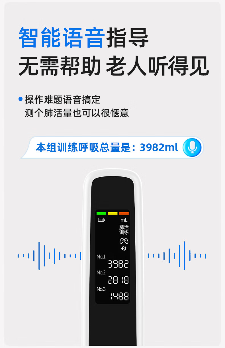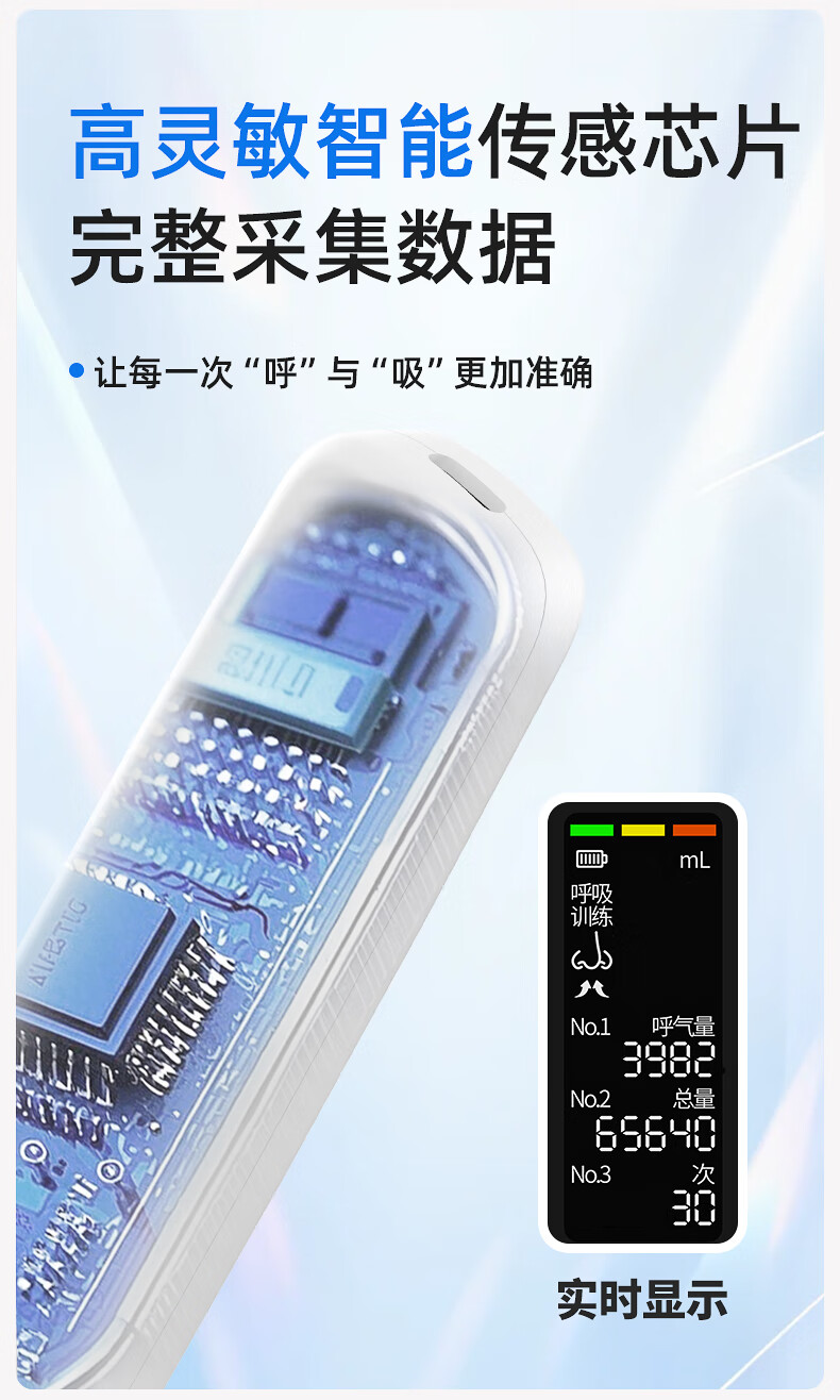 小在意成人肺活量呼吸训练器智能肺功能慢阻肺学生腹式锻炼肺活量测试仪 升级语音指导款+收纳袋【赠3个吹嘴+陪练小程序】