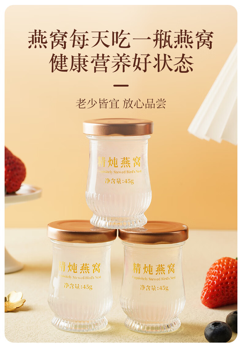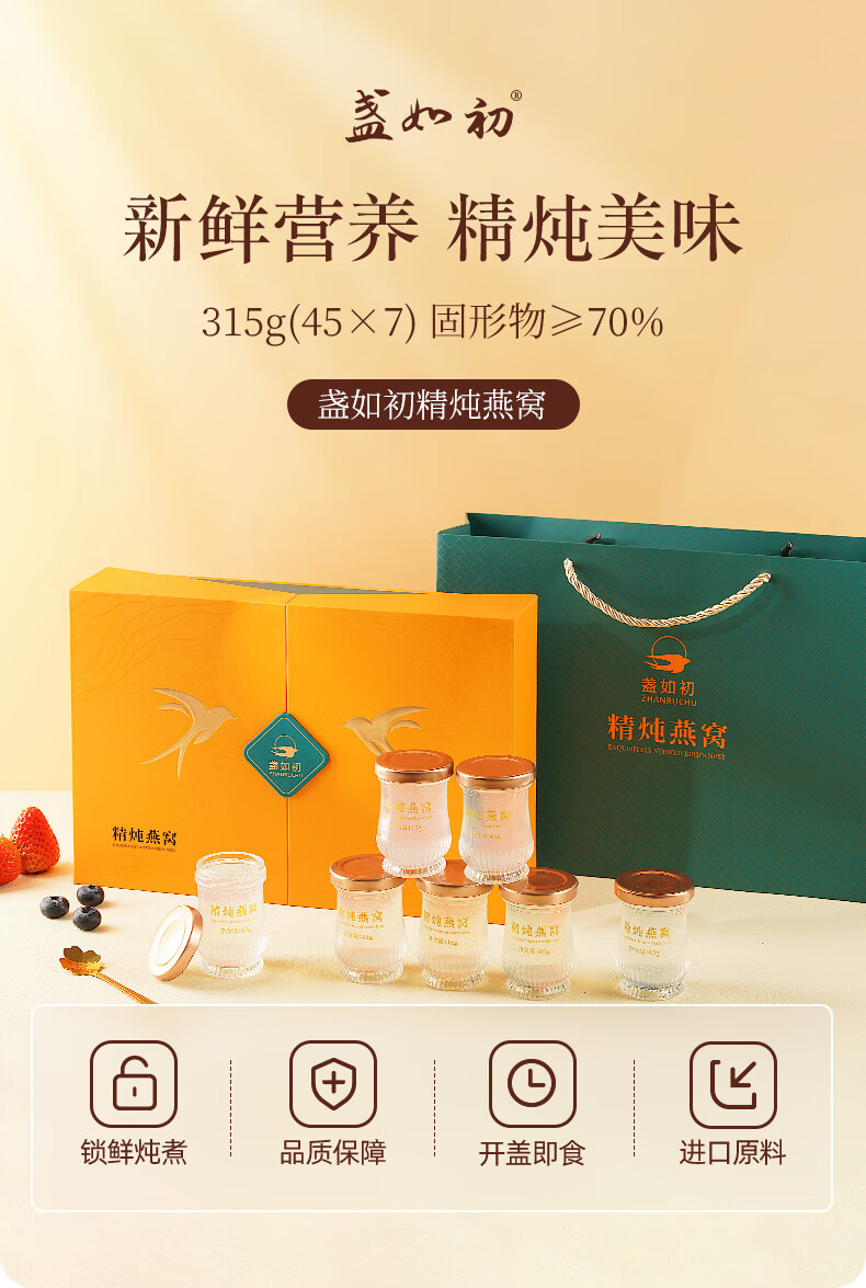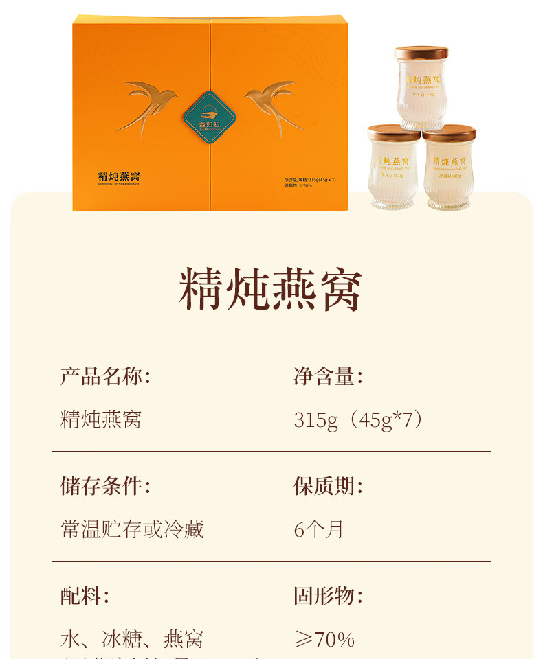 盏如初【年货送礼】精炖燕窝滋补7瓶高端礼盒冰糖款孕妇滋补即食燕窝 精炖燕窝45g*7瓶 45g*7瓶 /高档礼盒