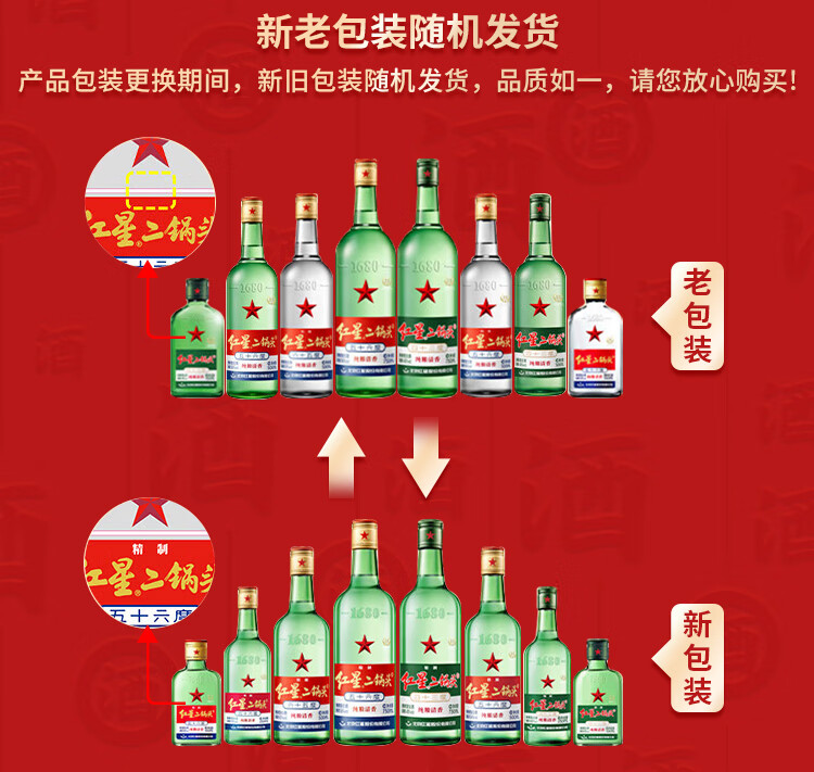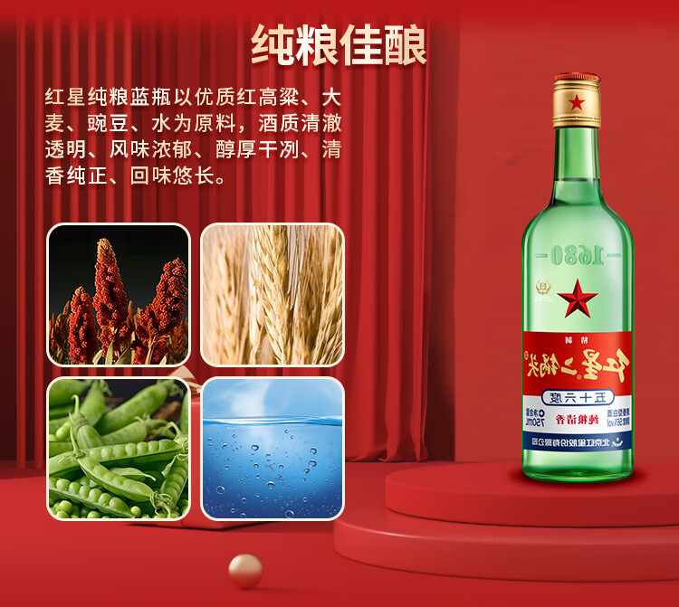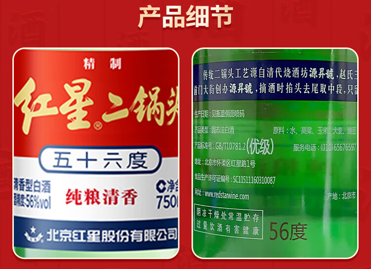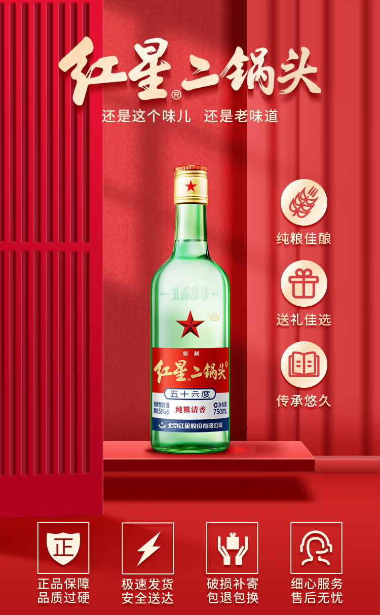 红星二锅头大二 清香型白酒 56度750ml整箱装 口粮酒 56度 750mL 6瓶 (原箱)