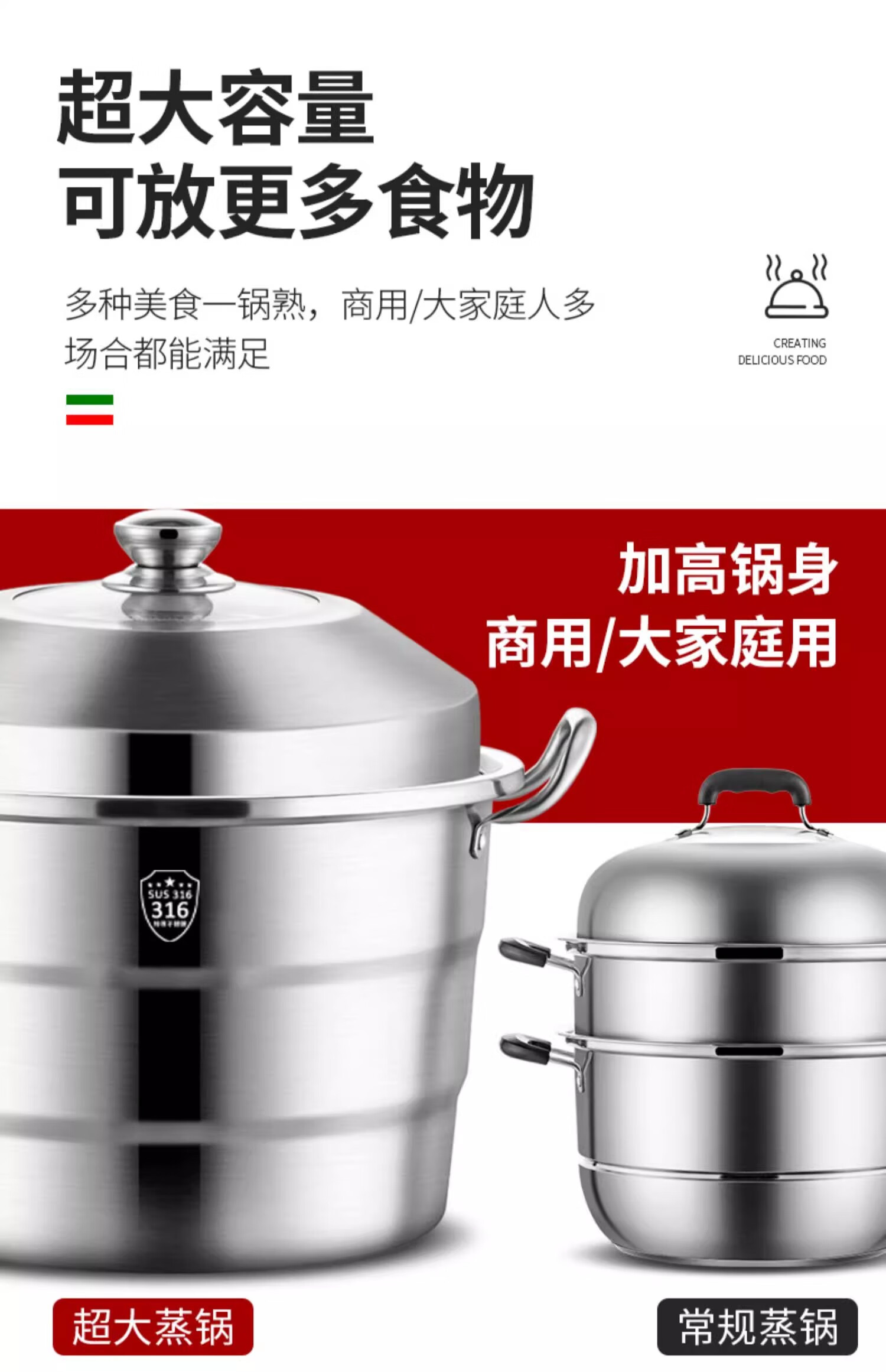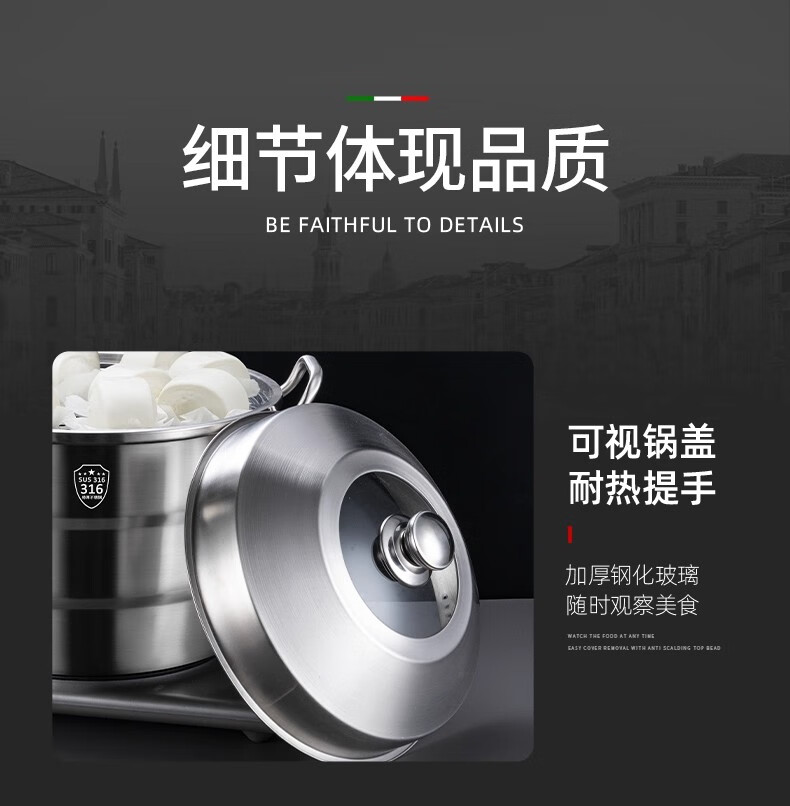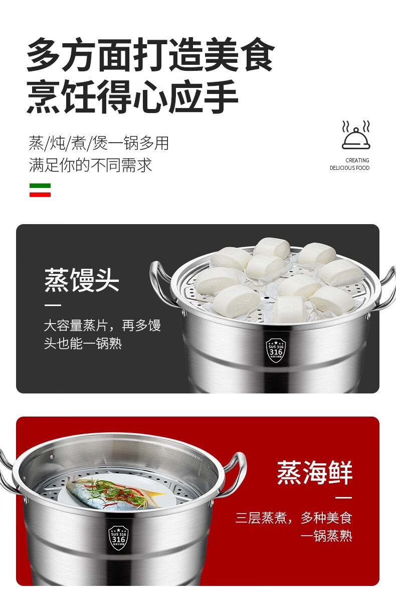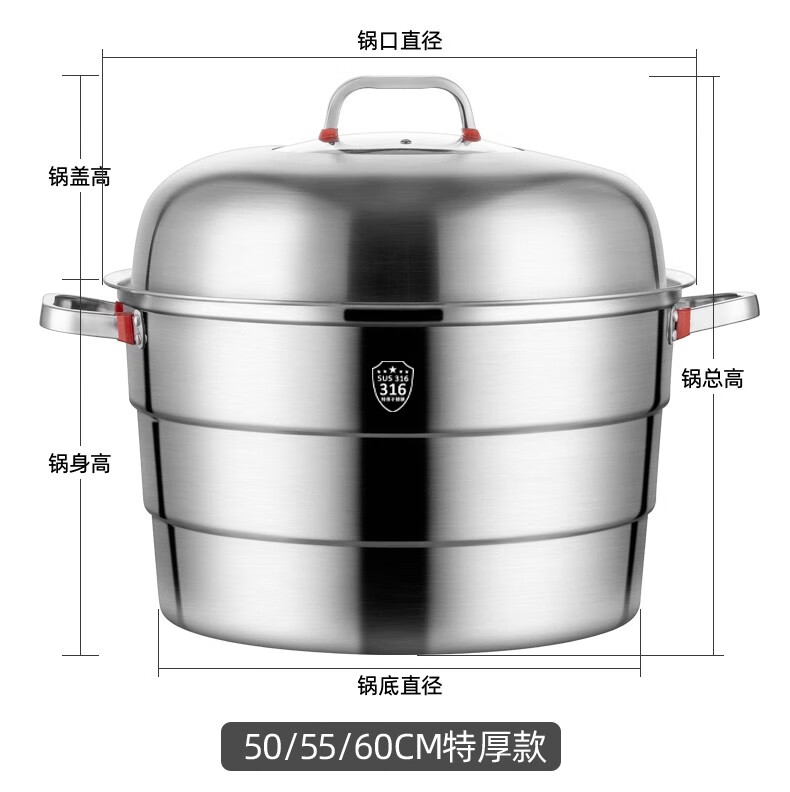 GNNDXX德国316L不锈钢大号加厚食品级不锈钢蒸锅家用加厚蒸笼汤锅蒸包子 金尊款-巨无霸大蒸锅三层 60cm