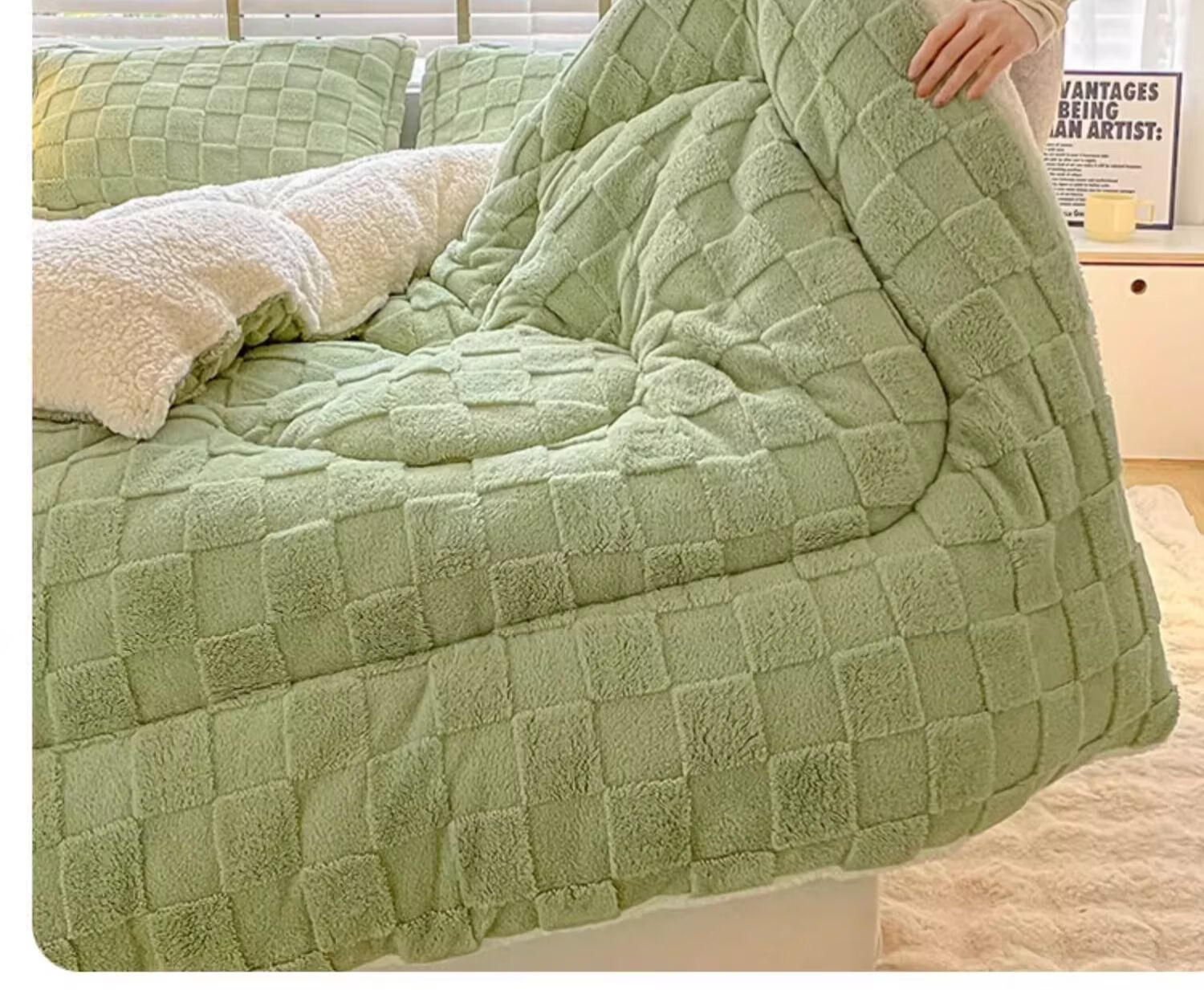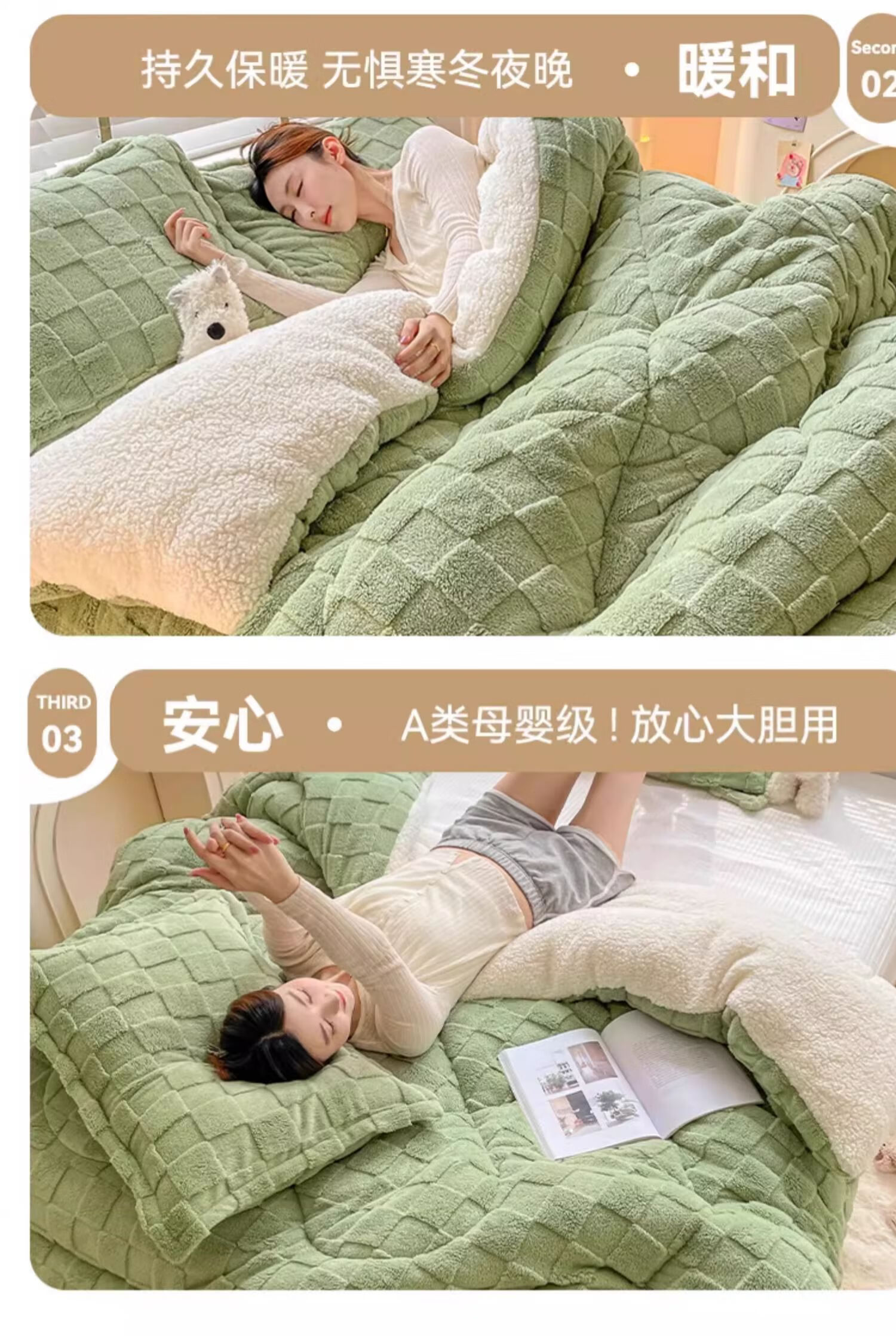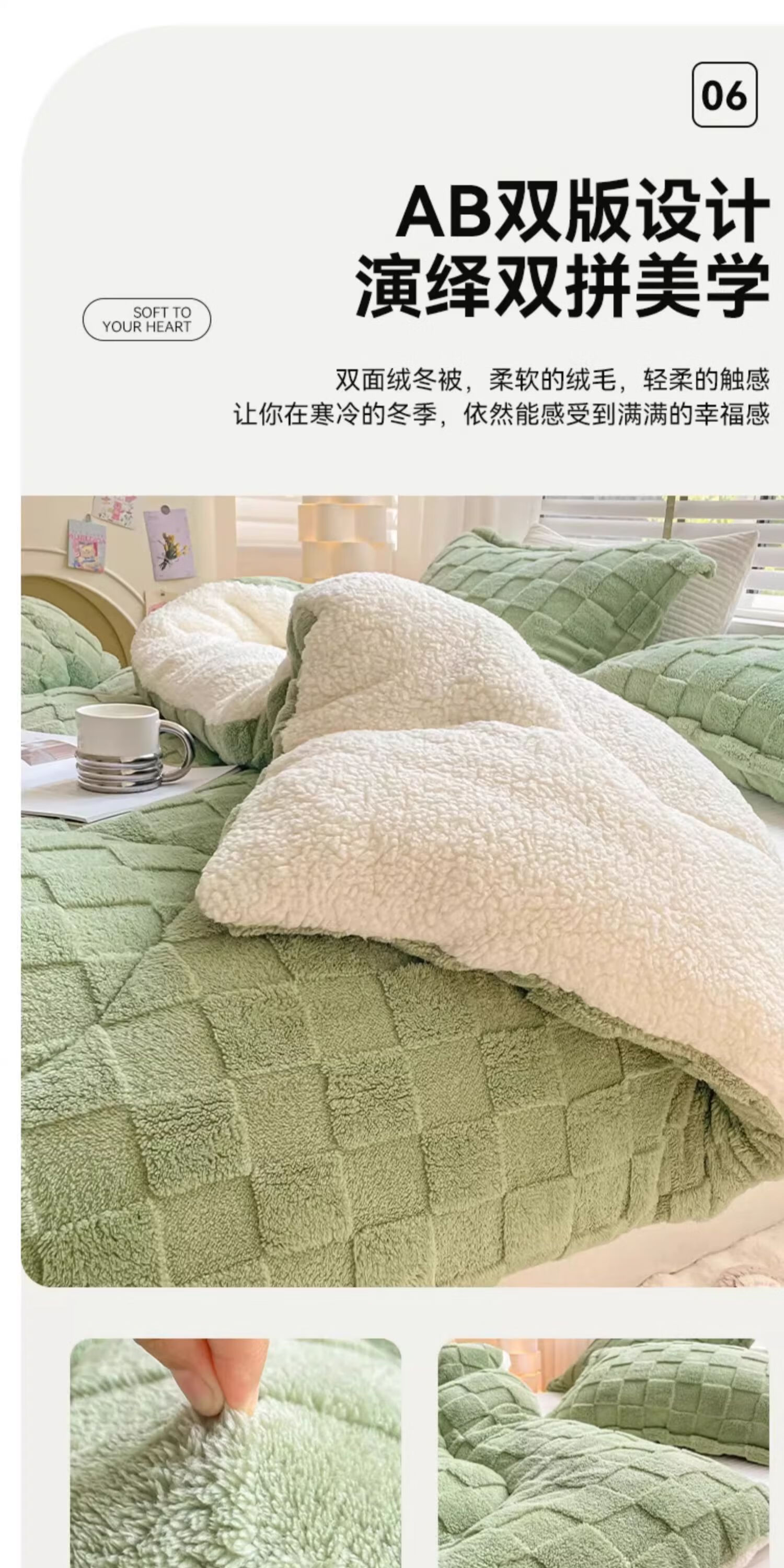 VJE冬季水晶绒床上四件套2025新款加厚珊瑚绒秋冬牛奶绒三件套被套 水晶绒-浅灰+深灰 三件套1.2m 床单款 -被套150*200cm