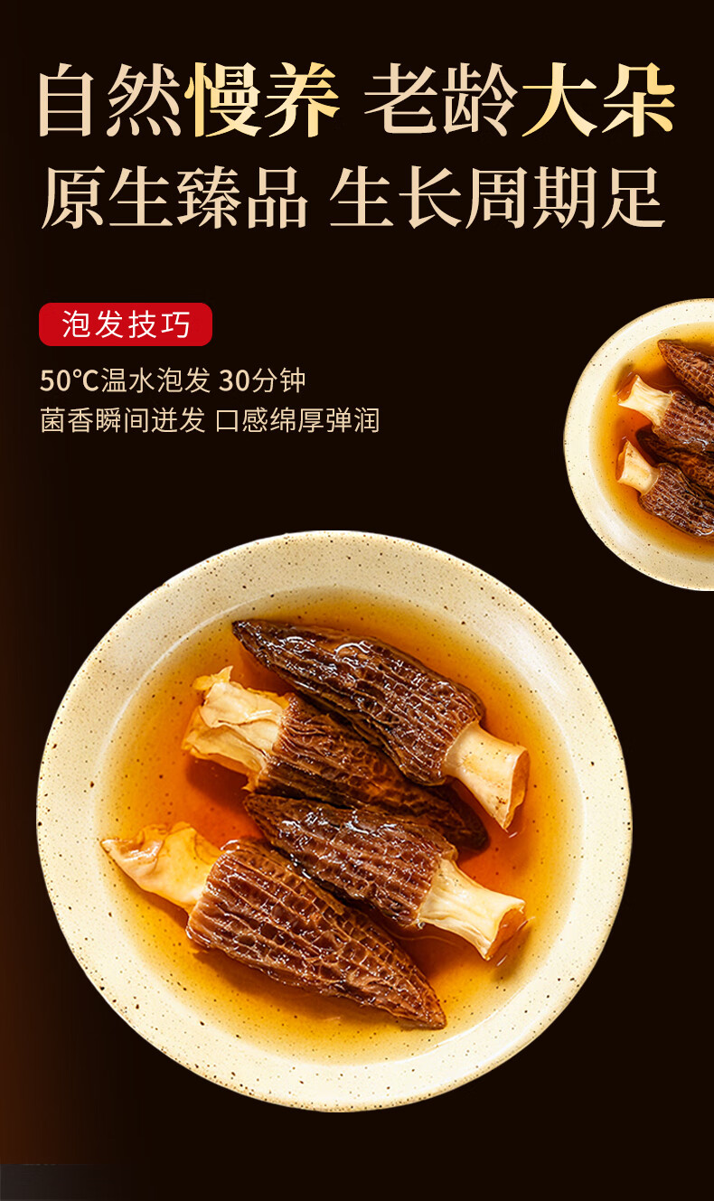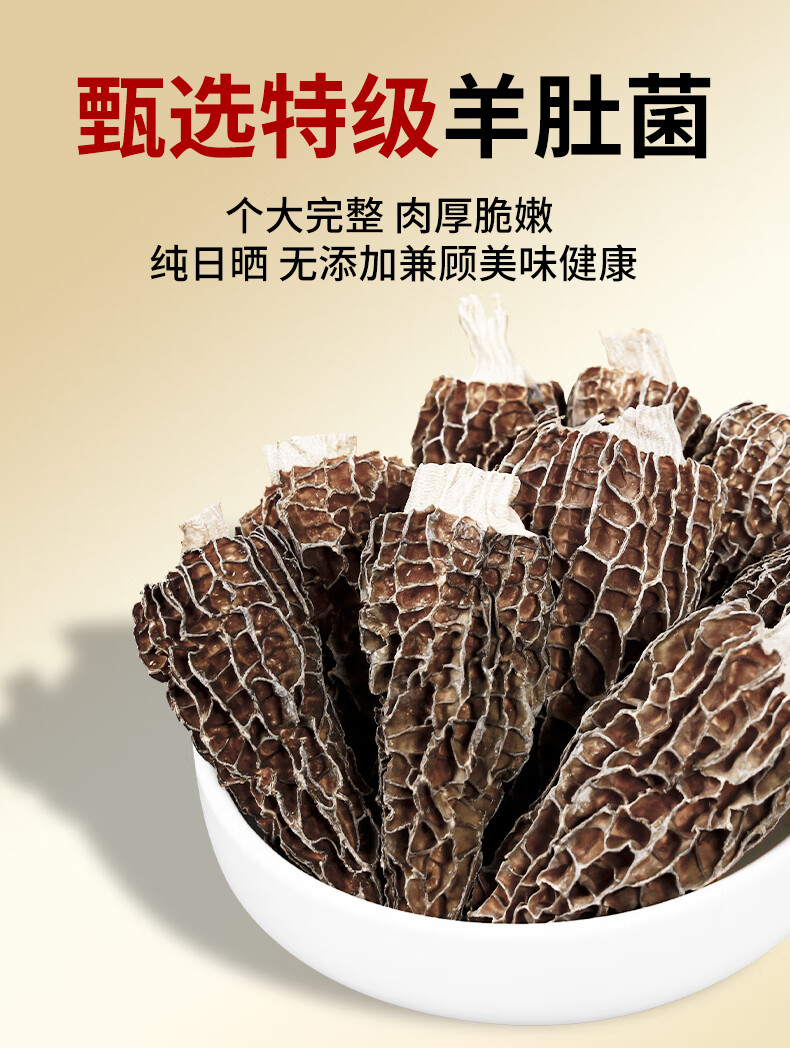 岁滋堂云南山珍特产羊肚菌头茬精品野生菌菇煲汤南北干货25g无硫熏4-8cm