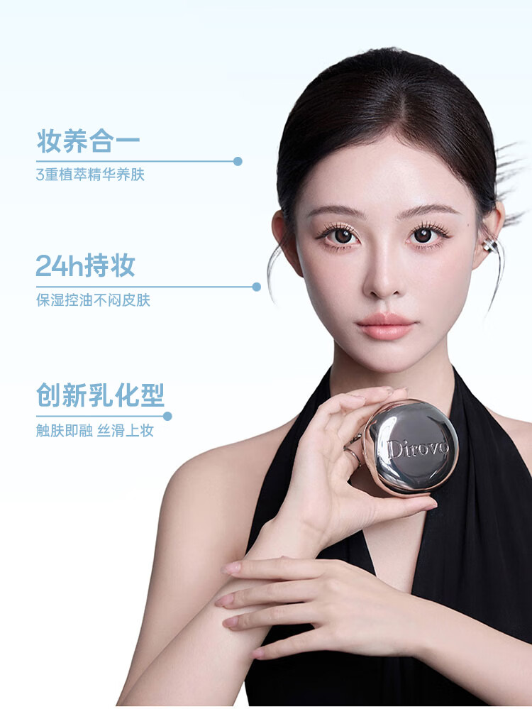蒂洛薇(DIROVO)【任嘉伦同款】粉膏遮瑕控油持妆久保湿粉底液气垫象牙色新年礼物