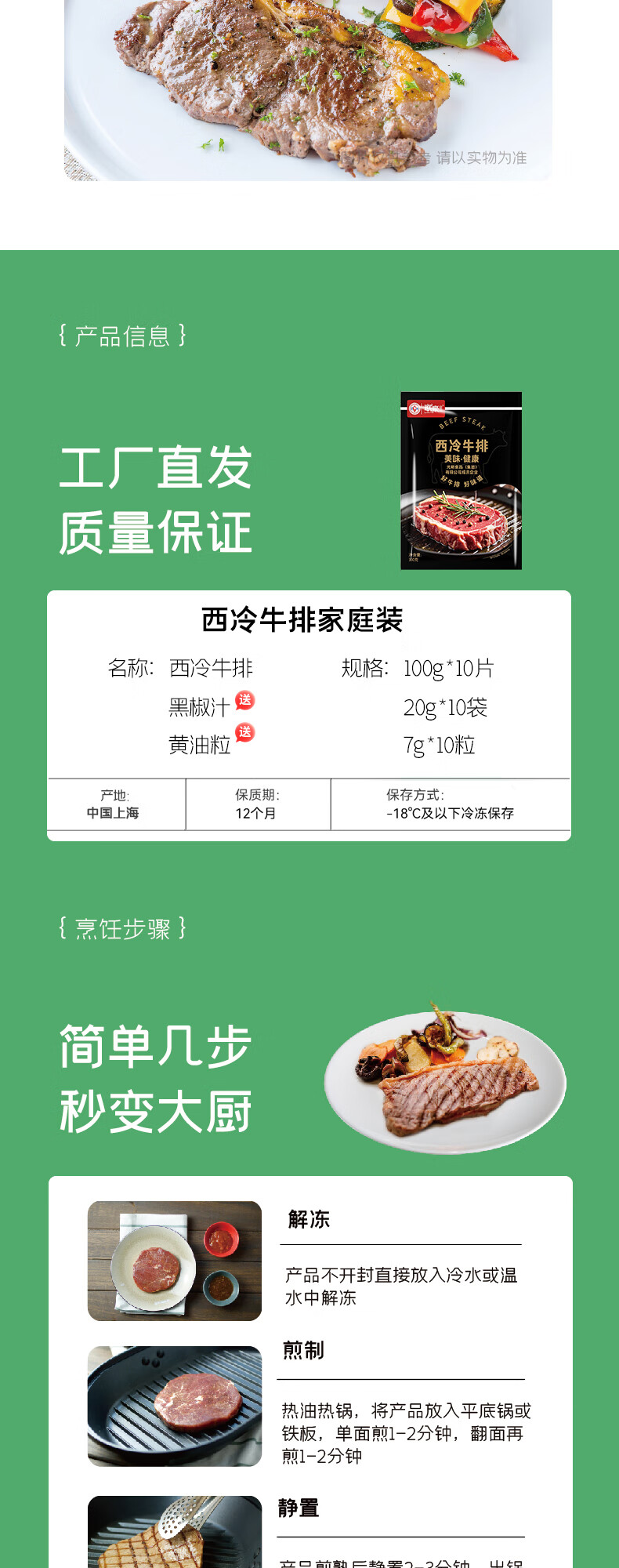 联豪食品 整切西冷牛排净重100g*10 烧烤食材冷冻牛扒牛肉生鲜源头直发