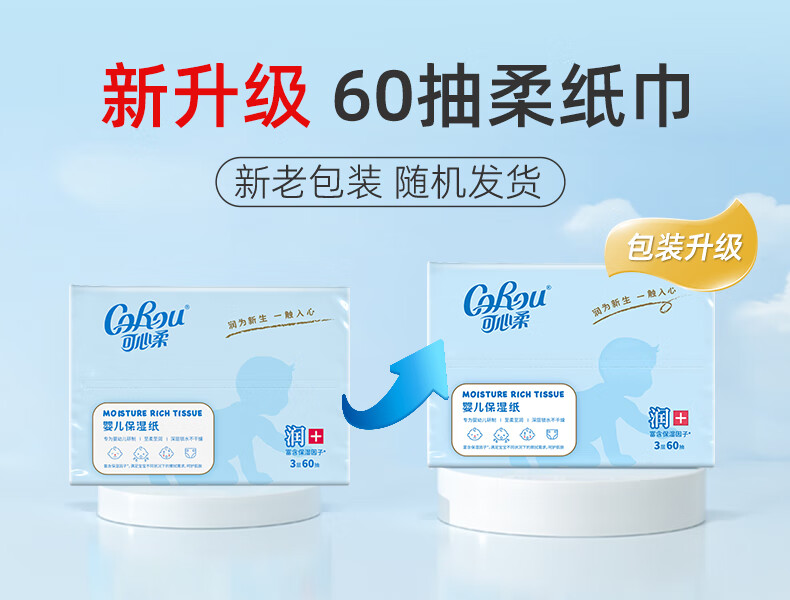 可心柔(COROU)V9婴儿云柔巾3层60抽*40包乳霜纸儿童学生卫生纸餐巾纸