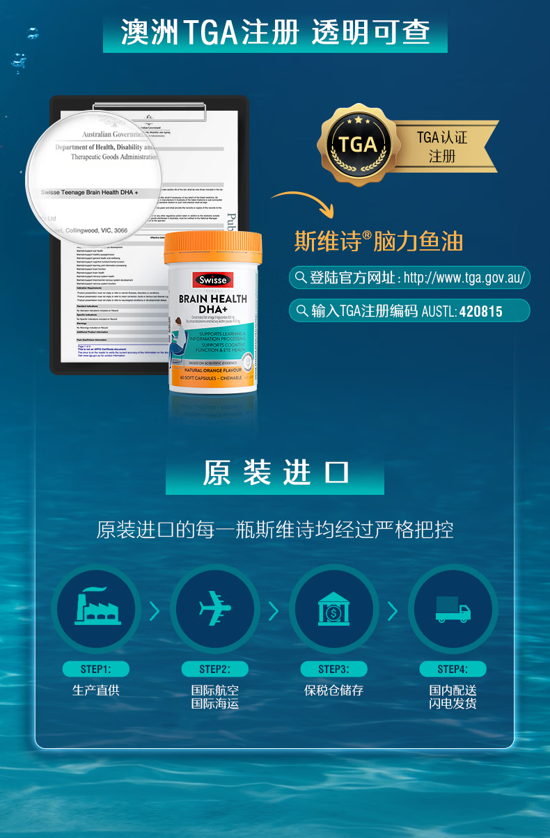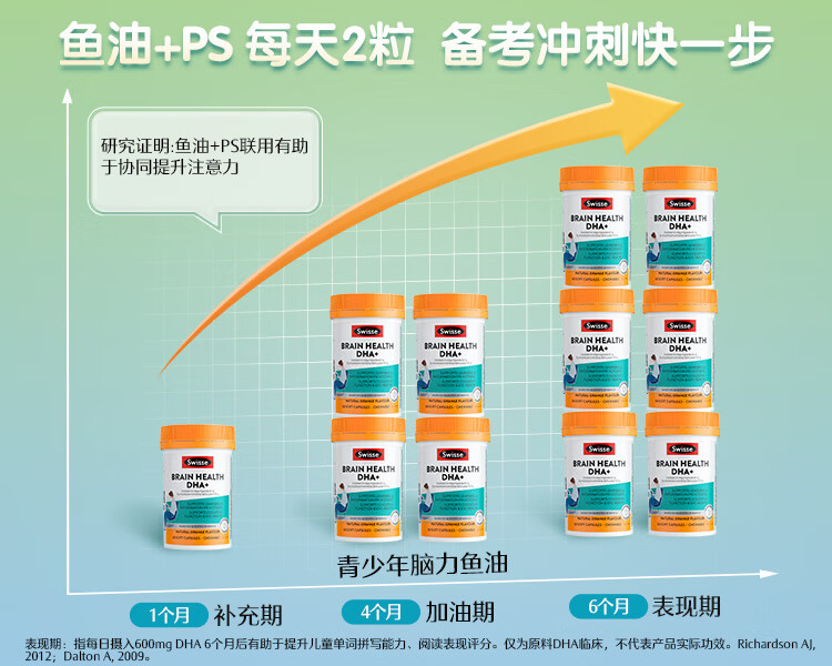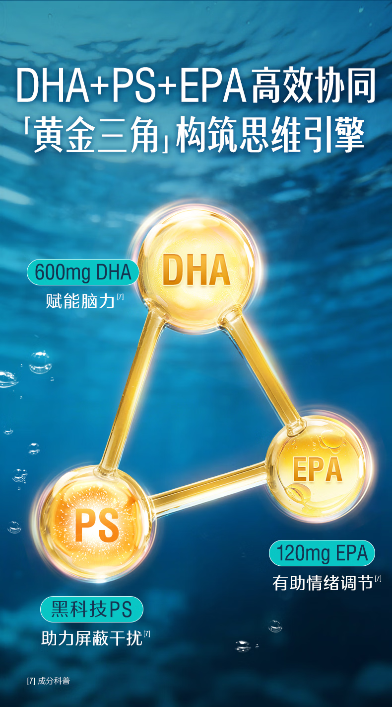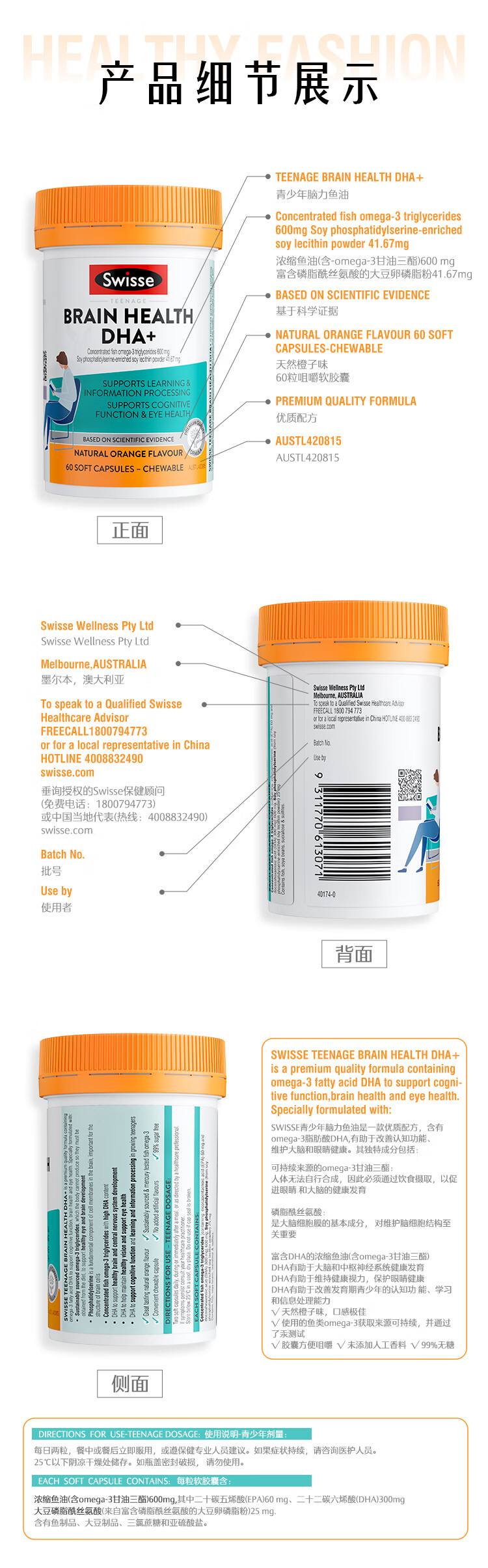 Swisse斯维诗 青少年脑力鱼油rTG型鱼油DHA+EPA护眼补脑学习备考60粒/瓶