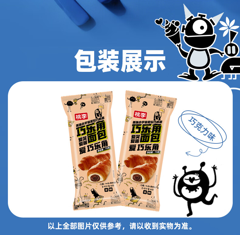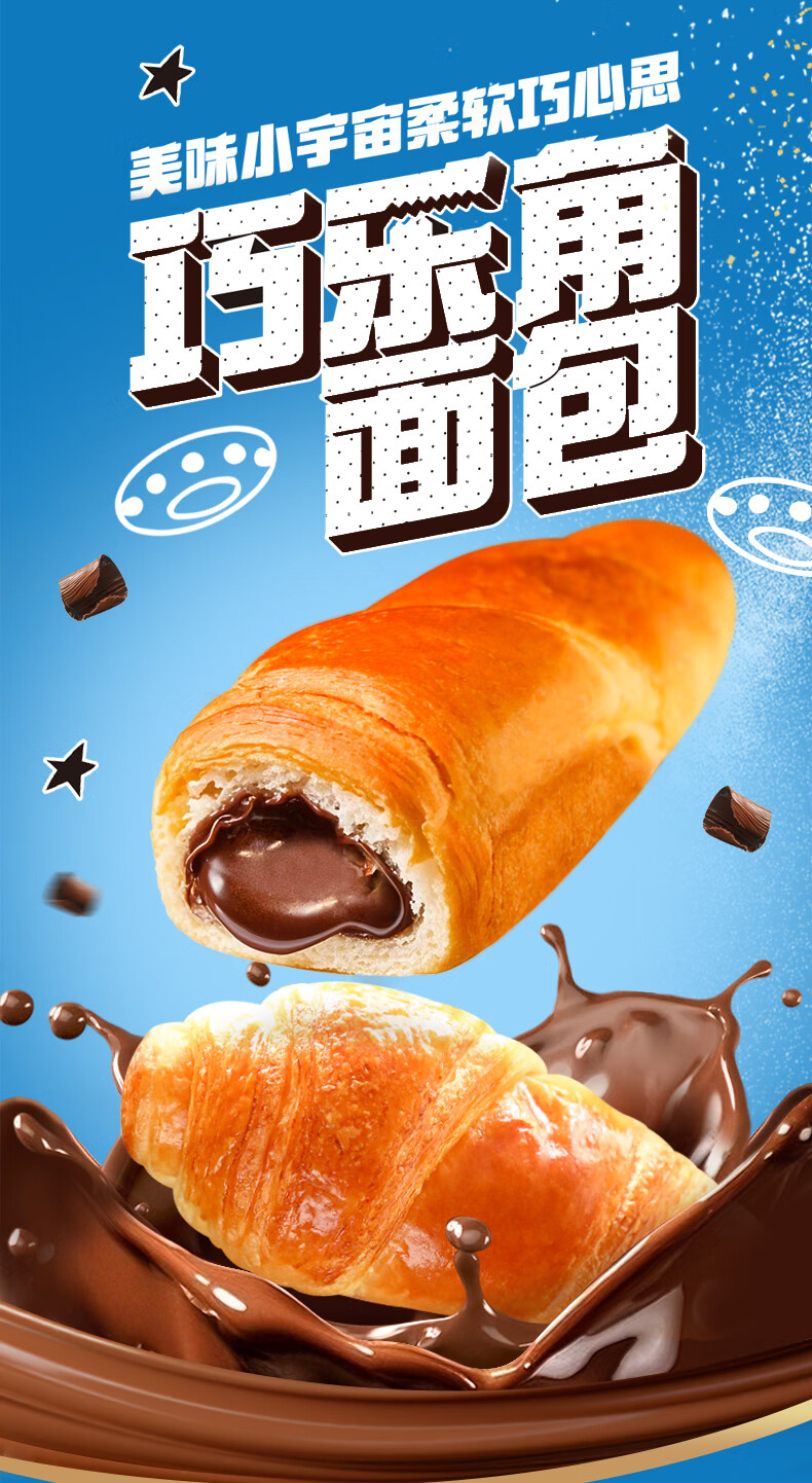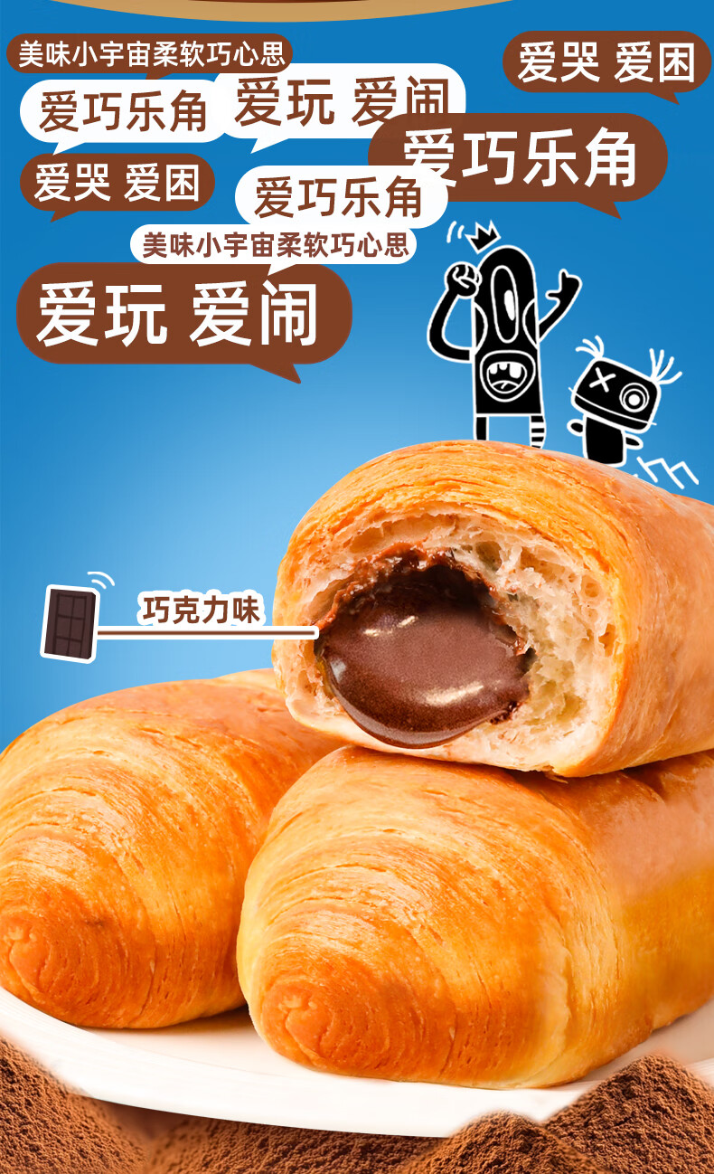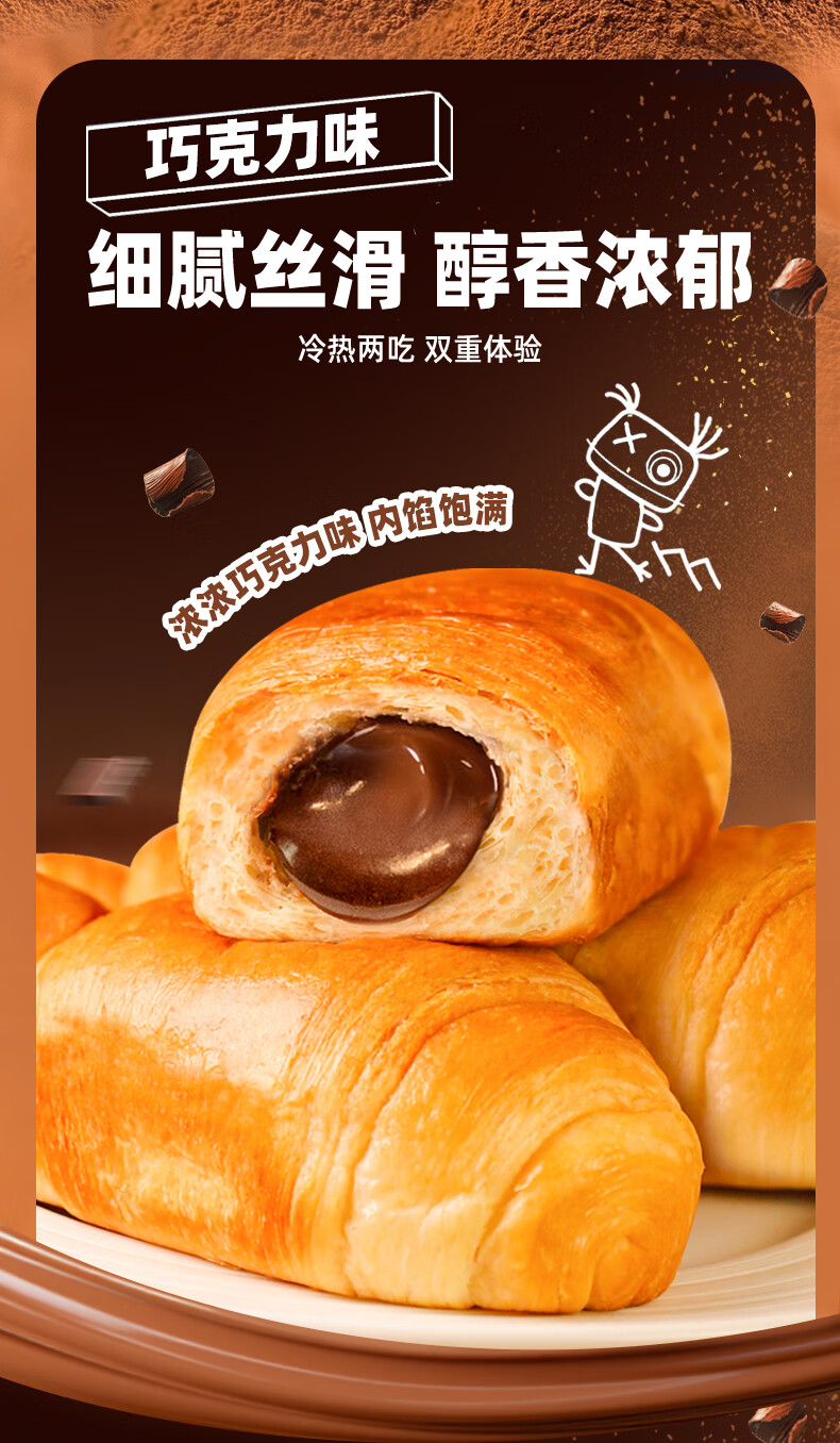 桃李巧乐角面包巧克力600g夹心爆浆可颂牛角包早餐糕点办公室零食整箱