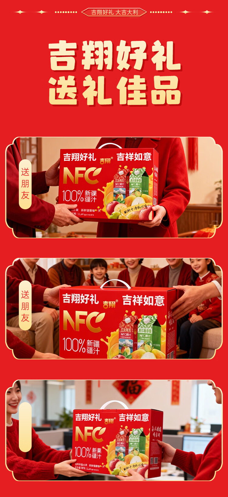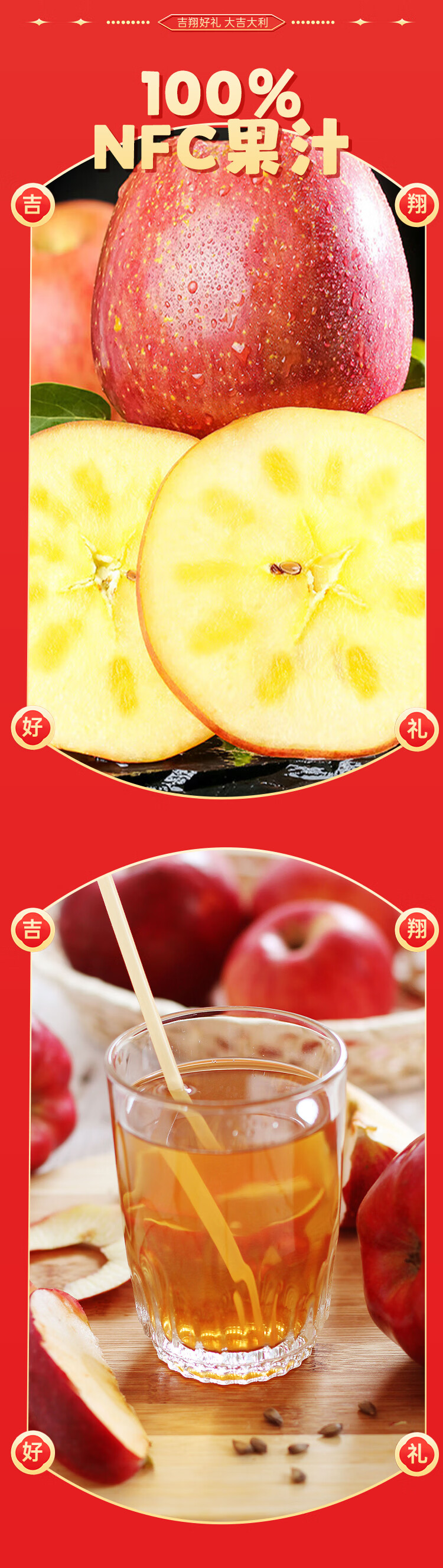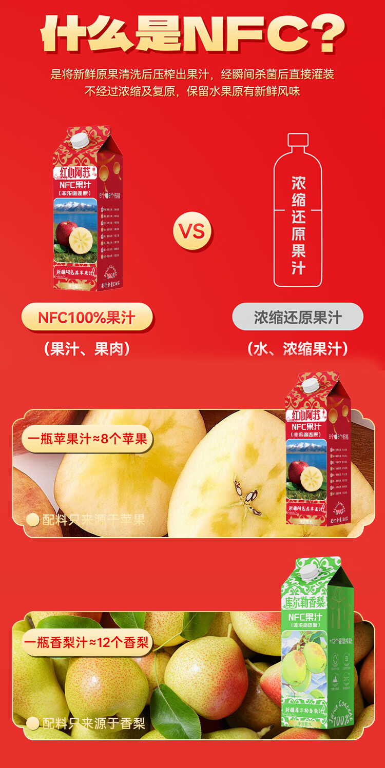 吉翔100%NFC果汁2种口味礼盒装 过年聚会酒宴送礼多口味果汁饮料 库尔勒香梨汁1L*4