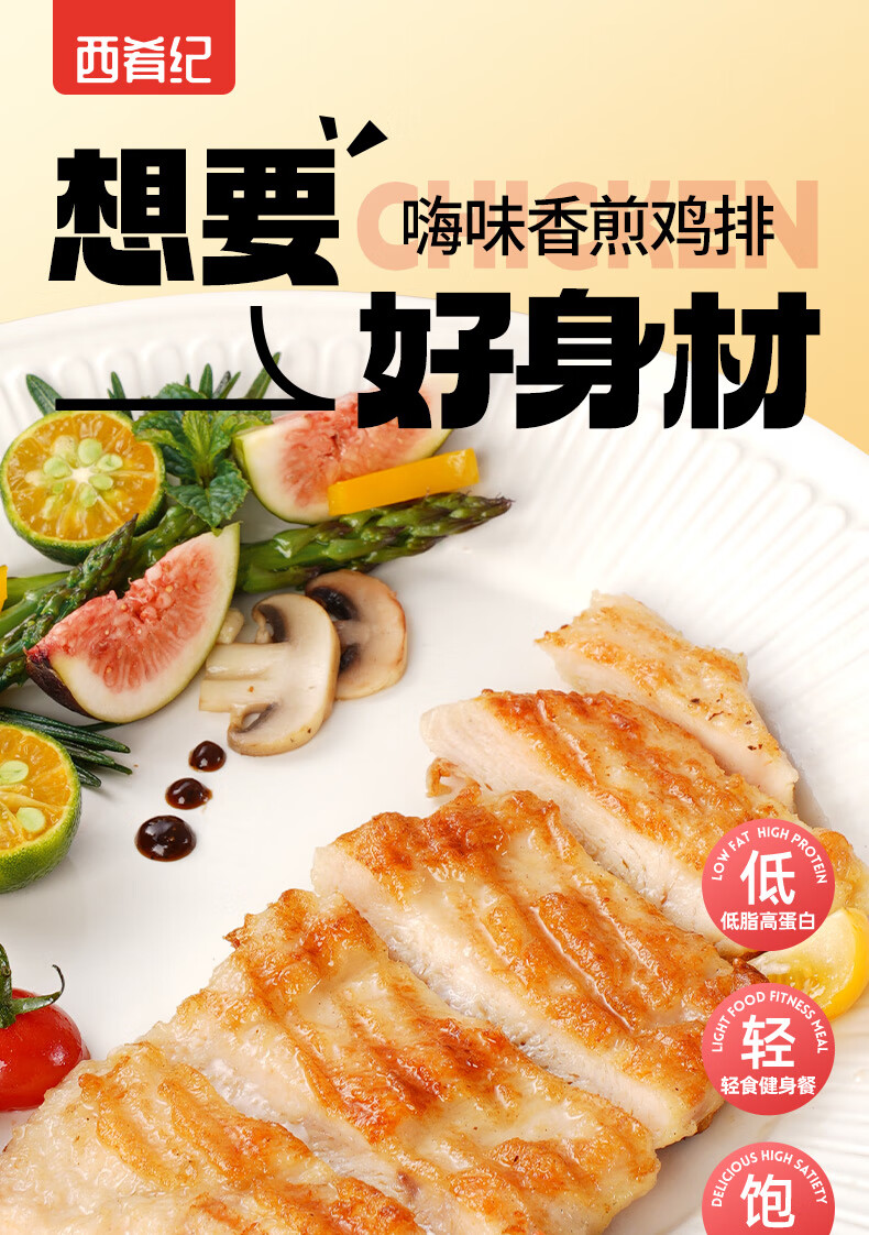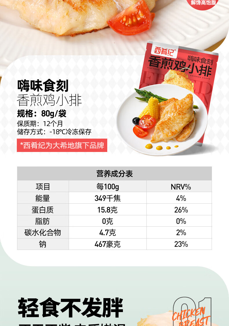 西肴纪鸡排健身鸡胸肉鸡扒冷冻半成品轻食低脂健身代餐鸡排源头直发 香煎小鸡排80g*10袋